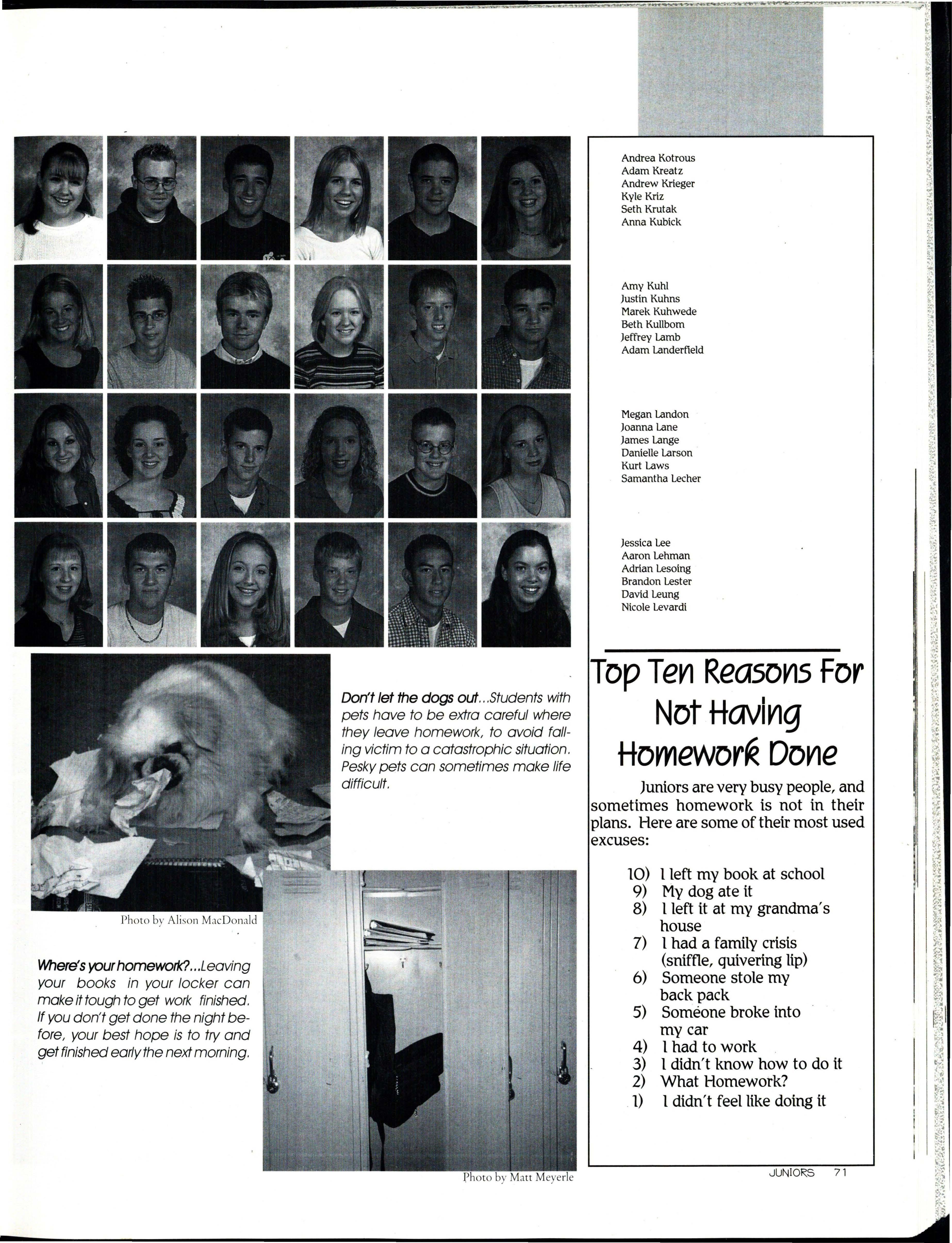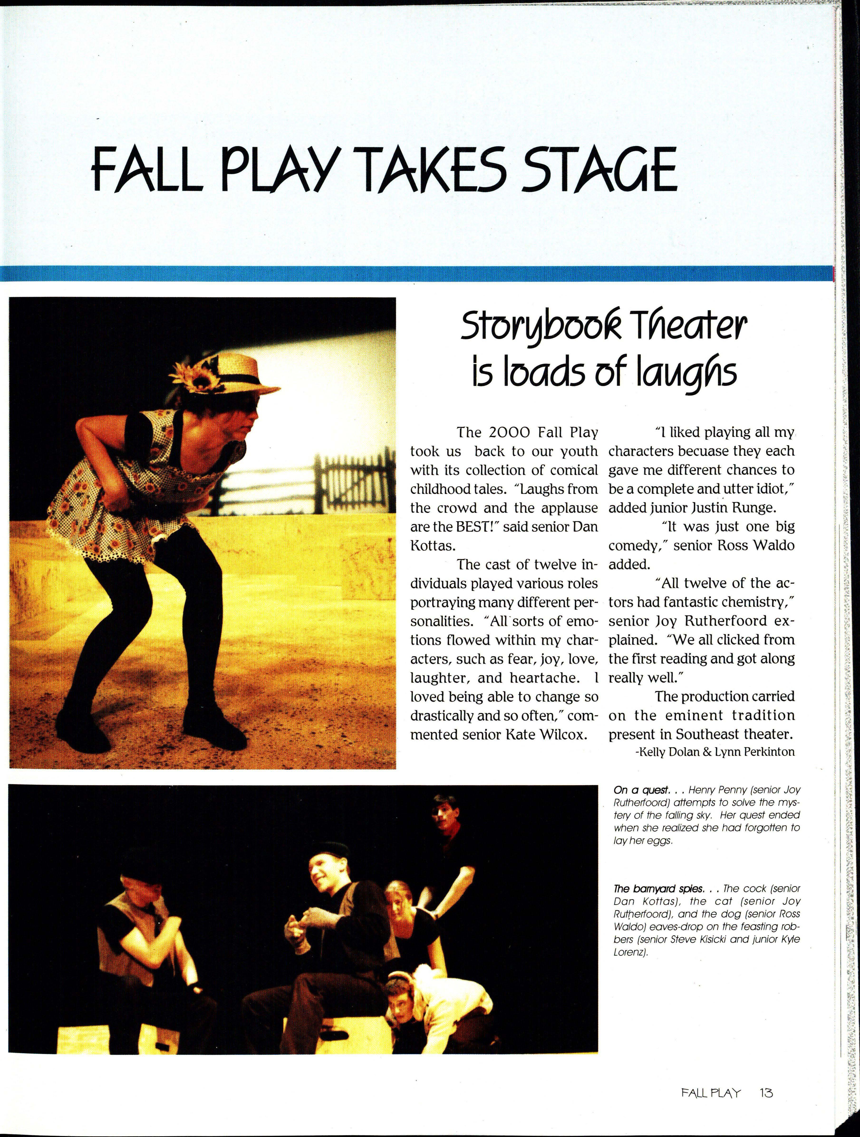 The 2000 Fall Play took us back to our youth with its collection of comical childhood tales. "Laughs from the crowd and the applause are the BEST!" said senior Dan Kottas.