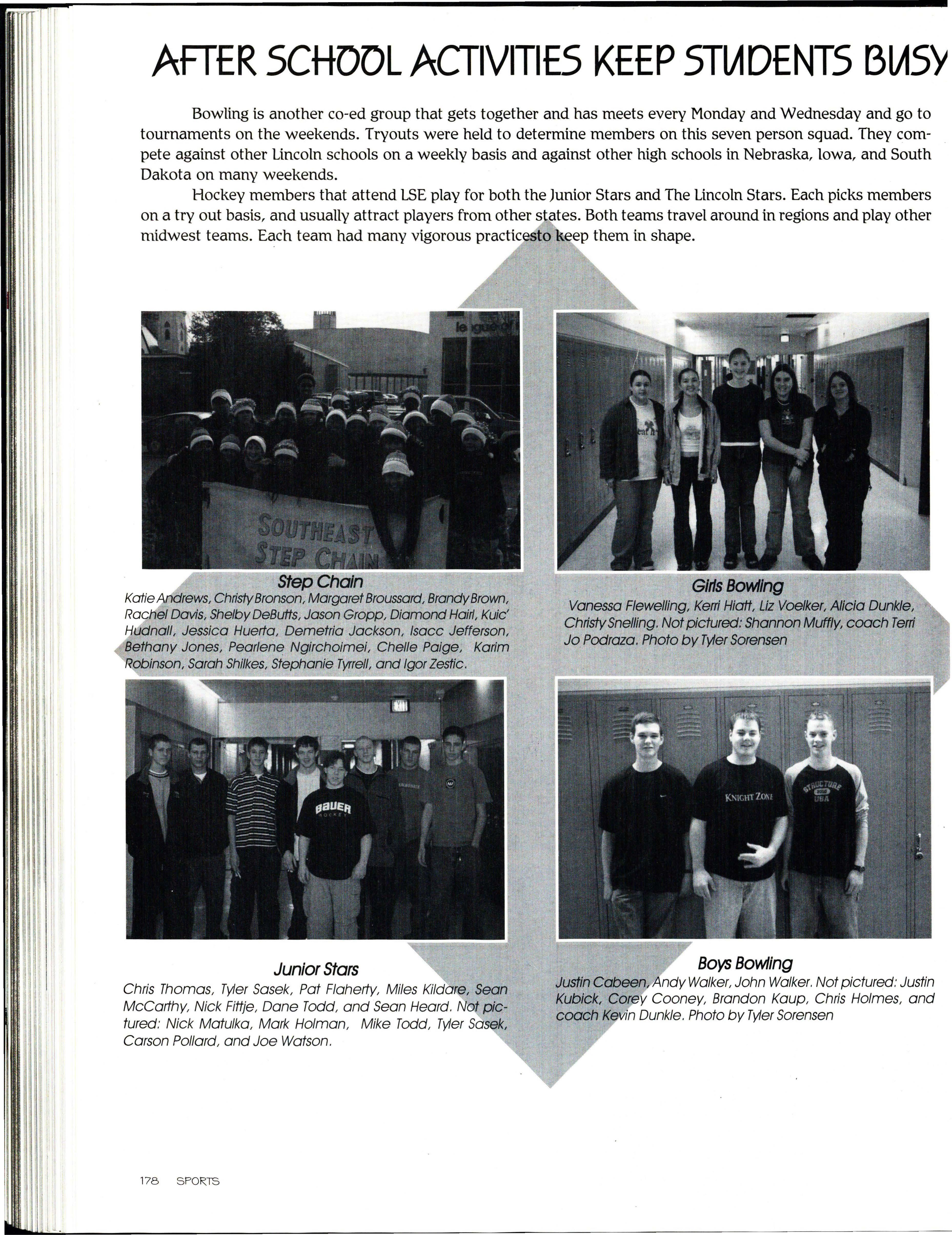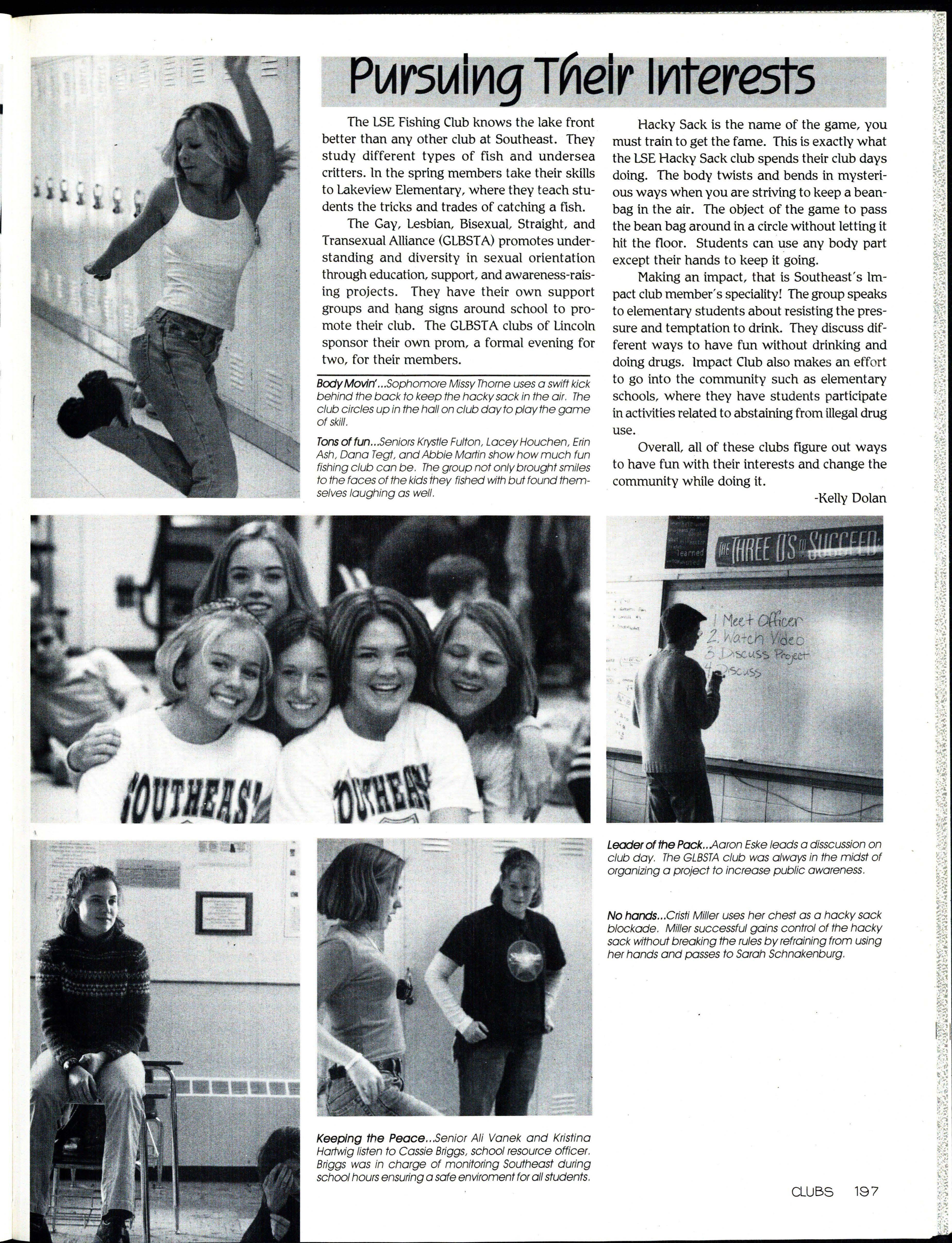 Students involvement in activities and attending events outside of Southeast's walls ls not uncommon. Ranging from club meetings, intramural sports, performing in choir competitions, or band competitions, students kept busy by doing what they enjoyed. Senior Rachel Pejsar said, "Having fun in high school ls very important to me so l have memories to look back on; and many of my memories are from activities and sports events l attended with my friends."