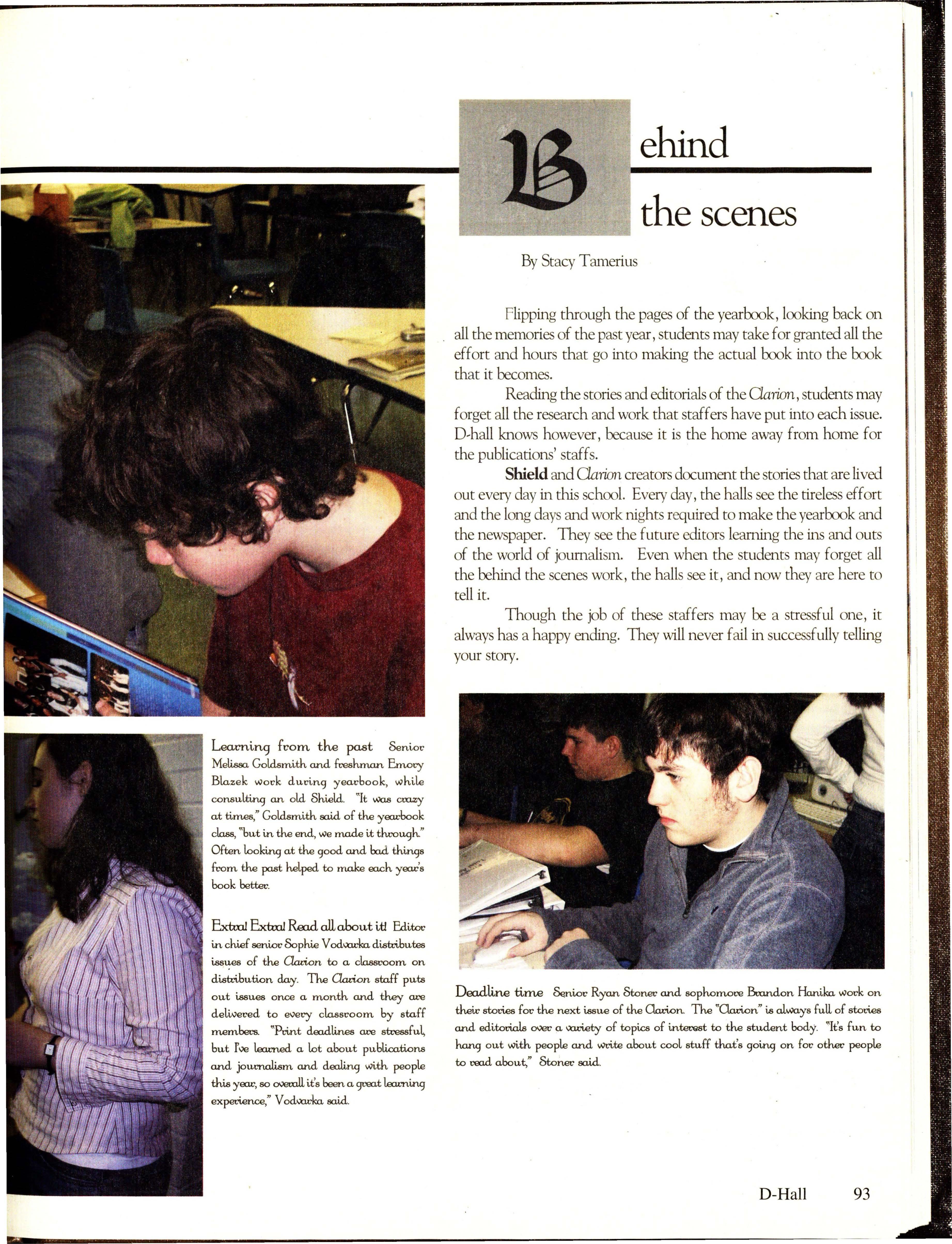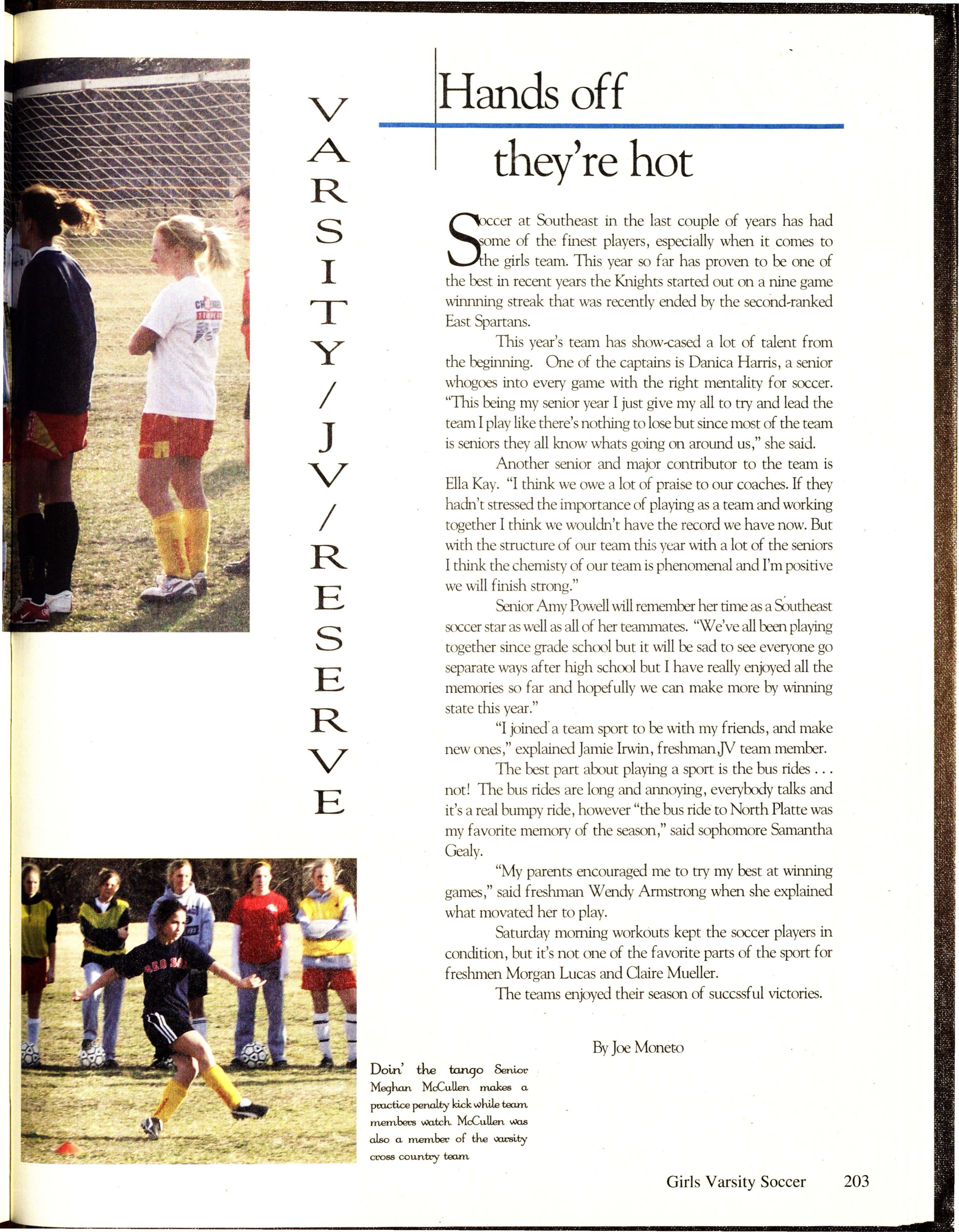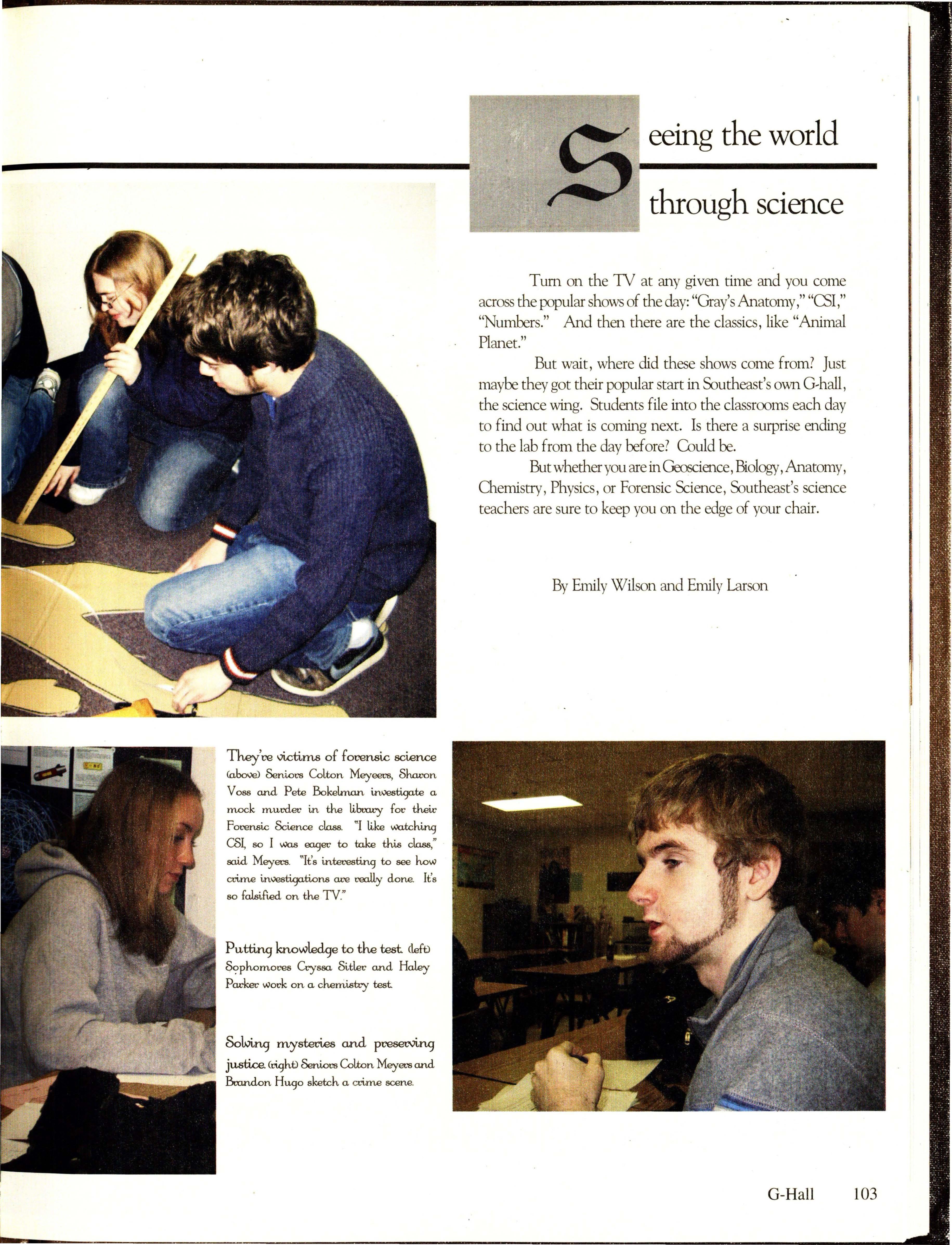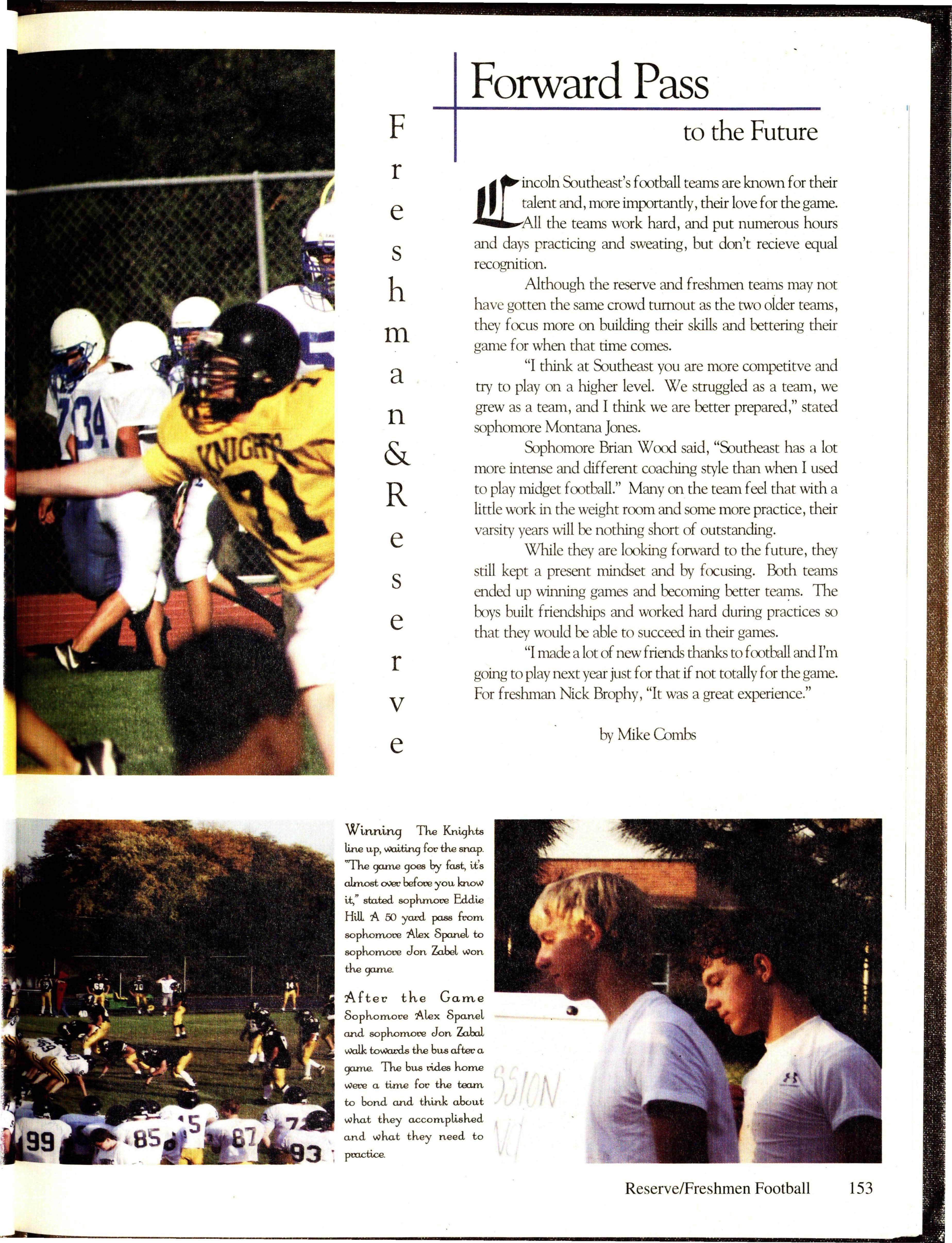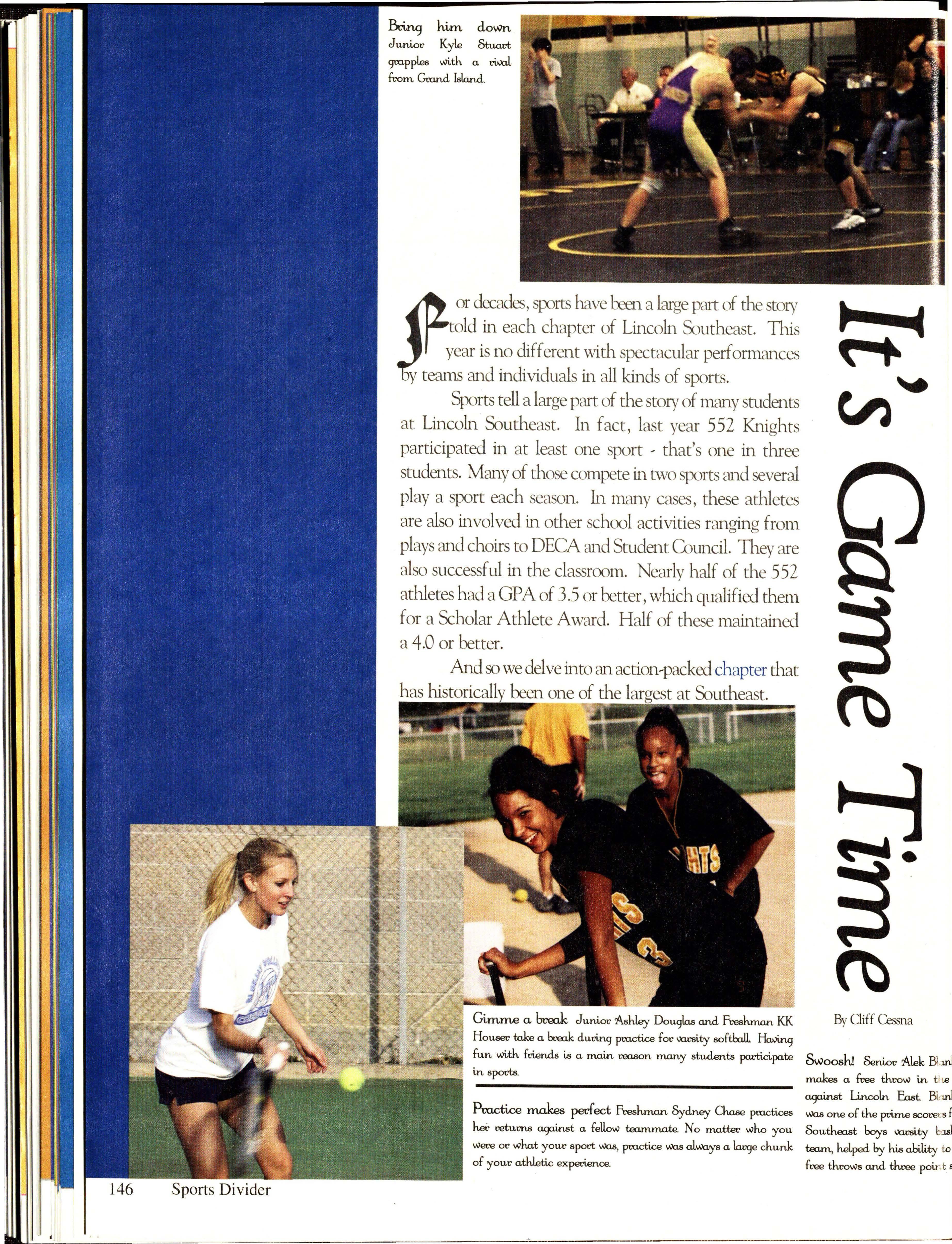 e halls have spoken to us loudly and clearly of what it means to be a Knight, sharing the moments most memorable of the past year. As students at Southeast we can be proud of the memories we take with us and the legends we leave behind. The friendships we have formed within the walls of our school and the knowledge we have gained while we are high school students, though unique to each separate character of the overall tale, is something not to be forgotten. But Southeast's story is not yet finished, it is waiting to be continued by the future generations of Knights. All those who come after us are anxious to continue the tradition of excellence and create their own installments . Our story has always been one focused around years of tradition, decades of excellence, and dedication to service. This year has been no different.