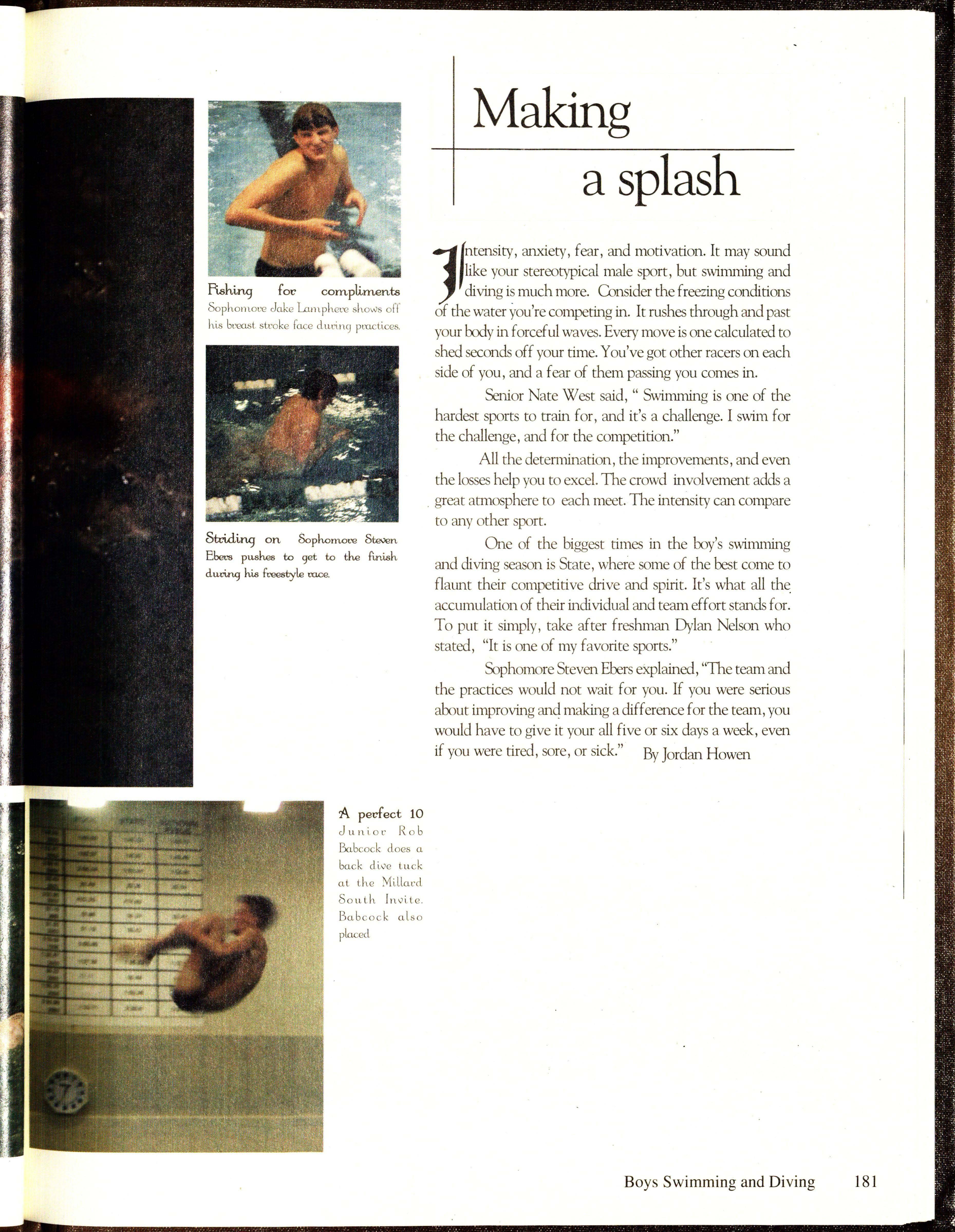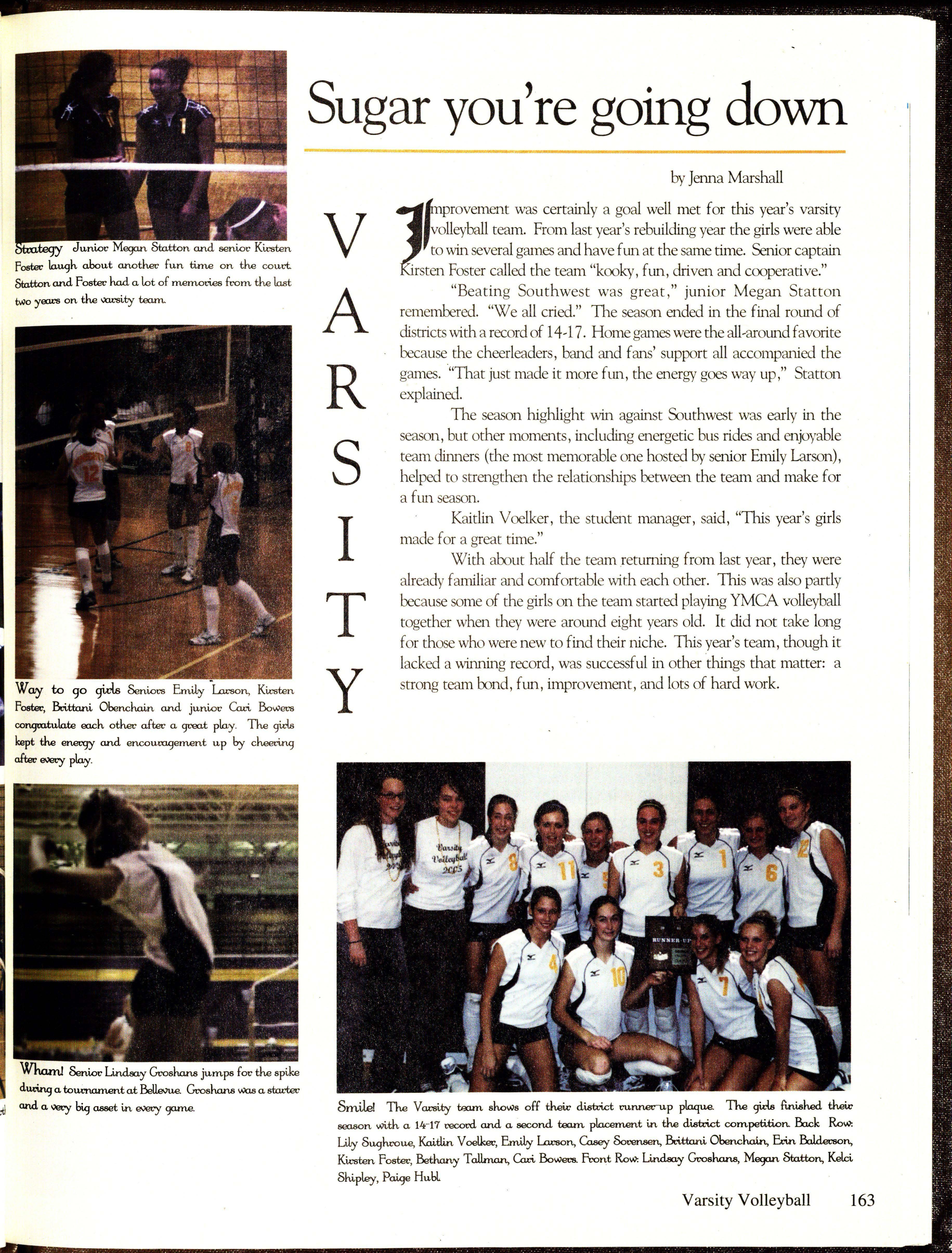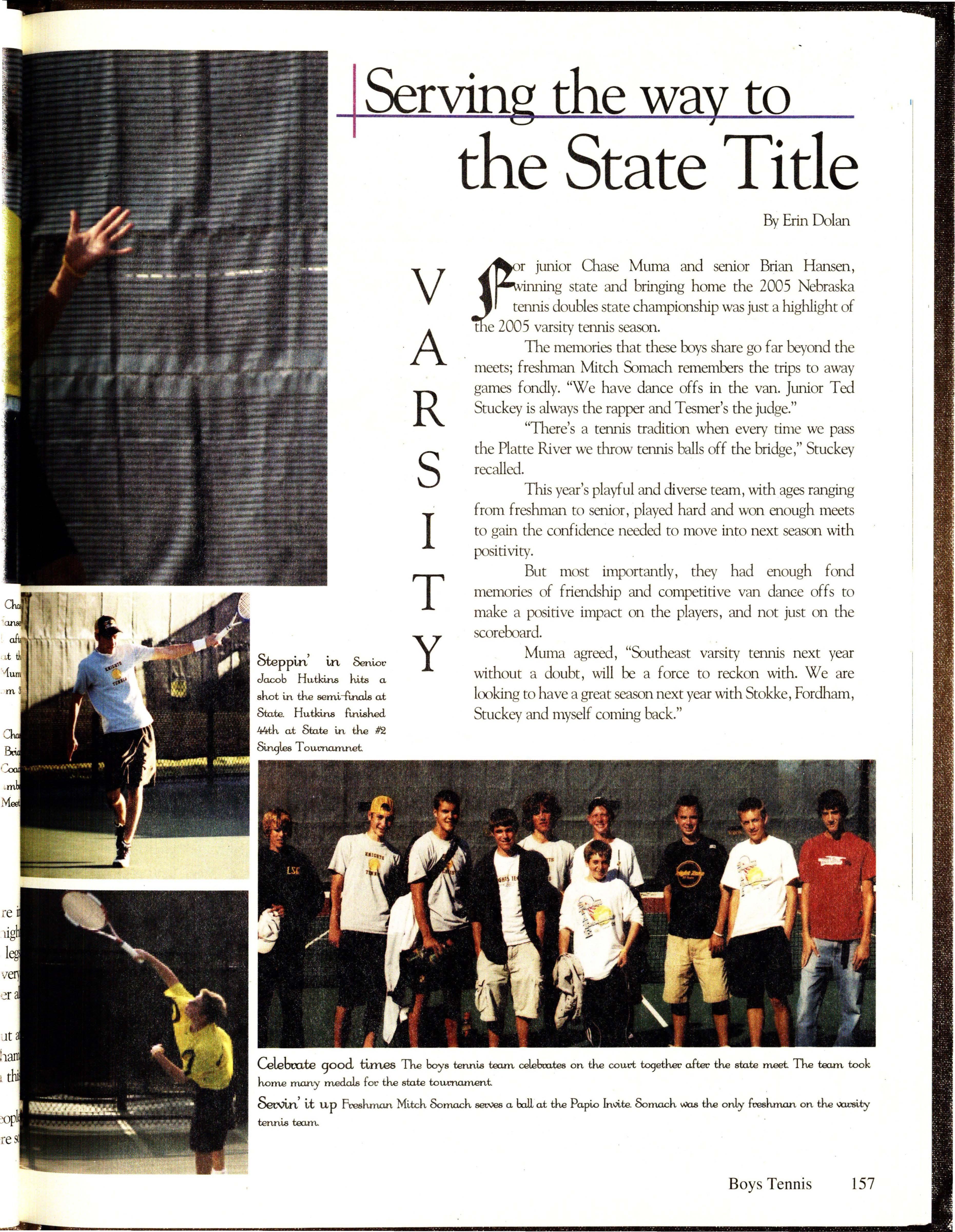 In athletics, Brian Hansen was # 1 Doubles State Champi (m in tennis this year with junior Chase Muma and #2 Doubles Str ce Champion last year along with Class of 200 5 graduate Tim Berg('.f Matt Hill led the way for the boys varsity basketball team ar d signed to play for the University of Texas. Additionally, neaily every sport had a senior qualify for the state tournament.