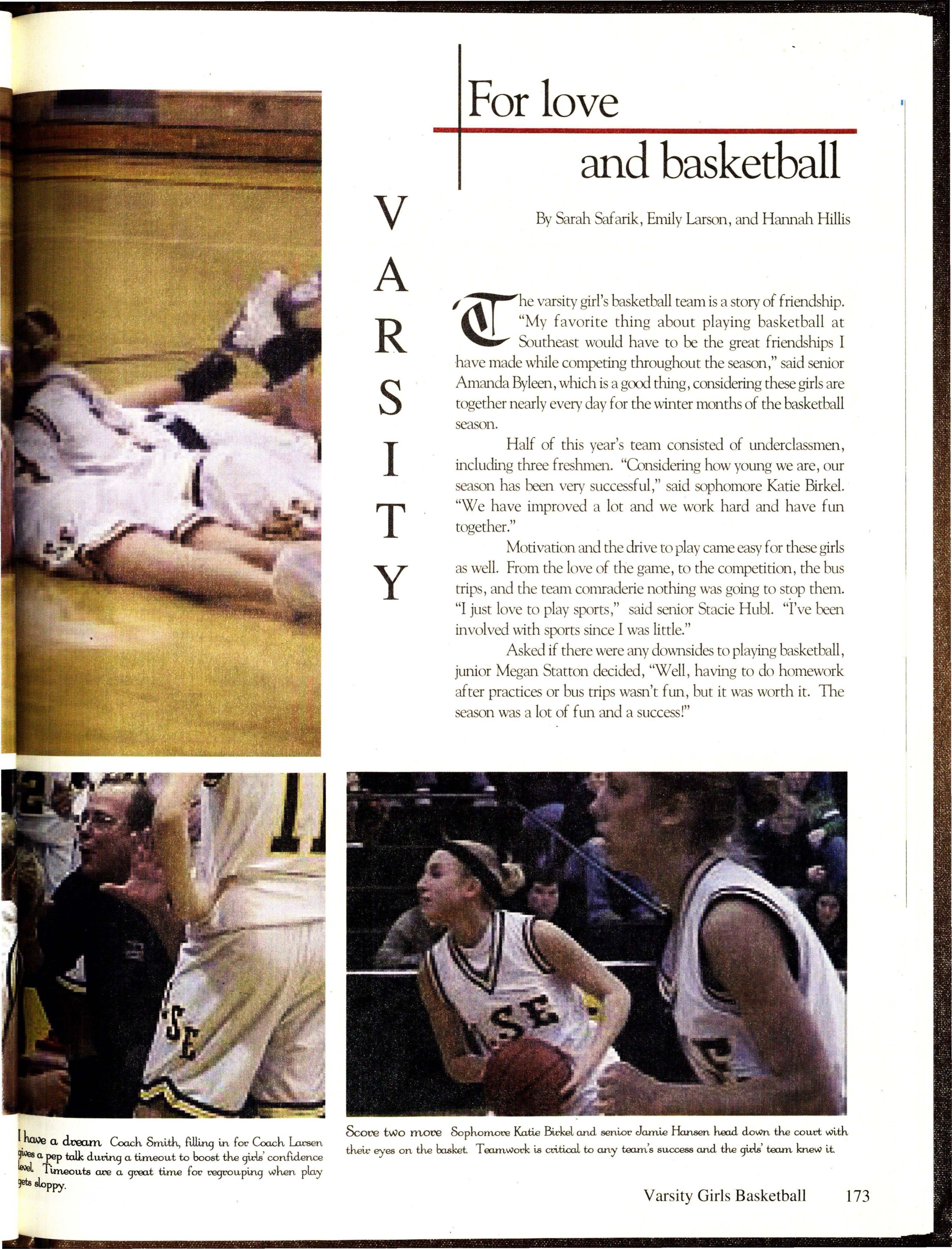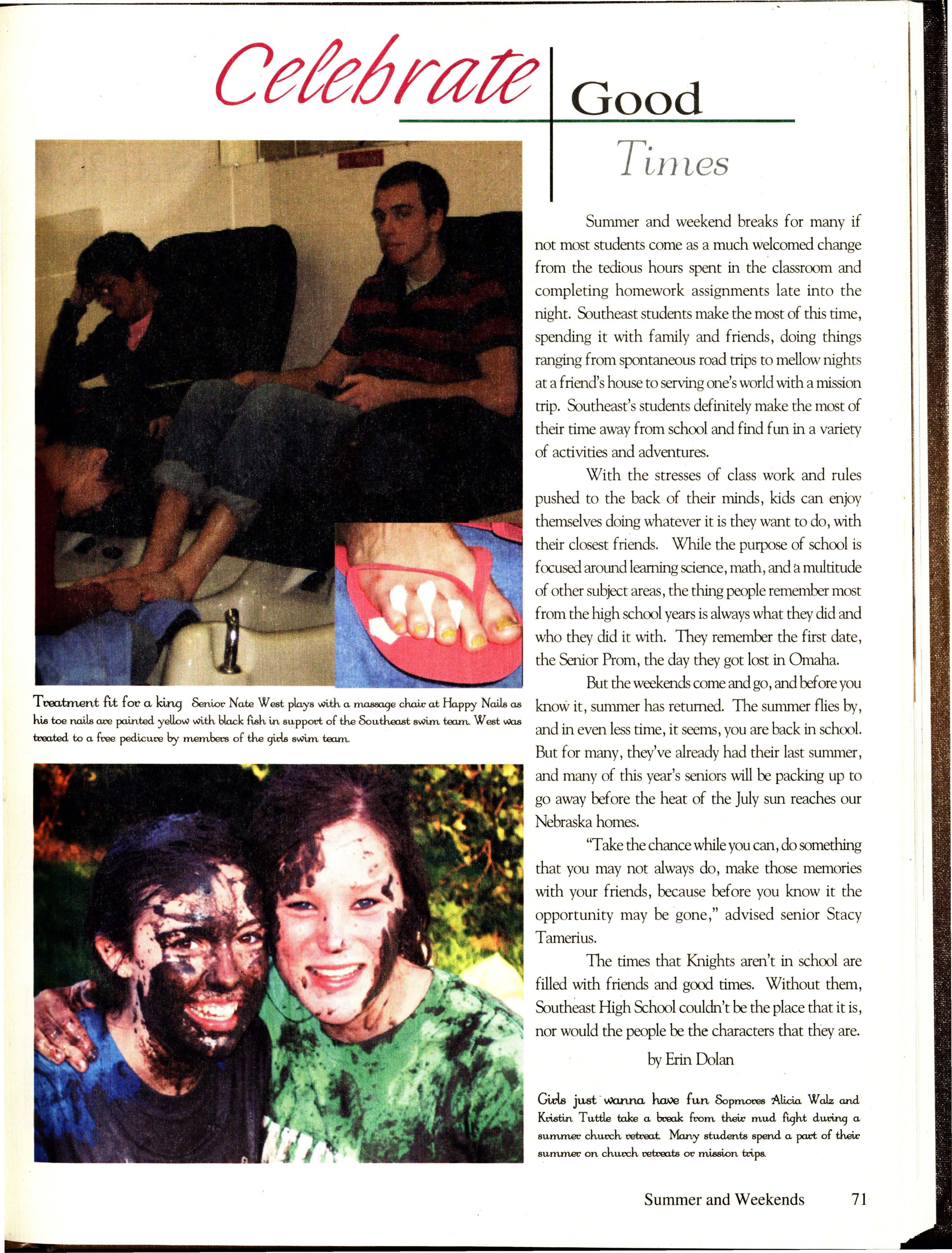 Without friends and these fun times m ost students wou l, l find themsel ves lost, or least of all just very bored. Friends are ther : for the good times but are still there when you need them the m o s-:Even after we graduate and leave the security of Southeast and o beloved high school friends , embarking upon new journeys, we wi .l always have the memories of thes e great friends.