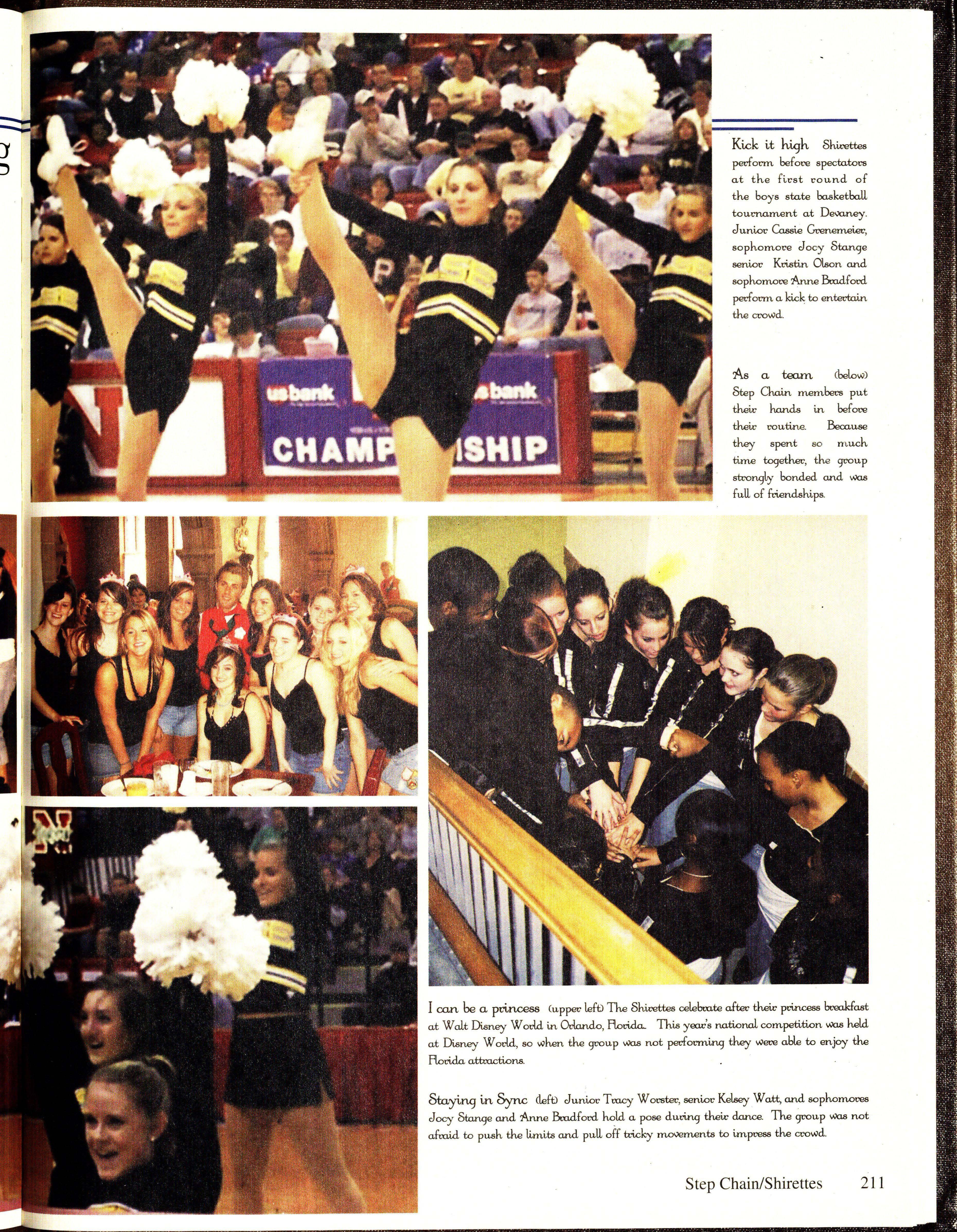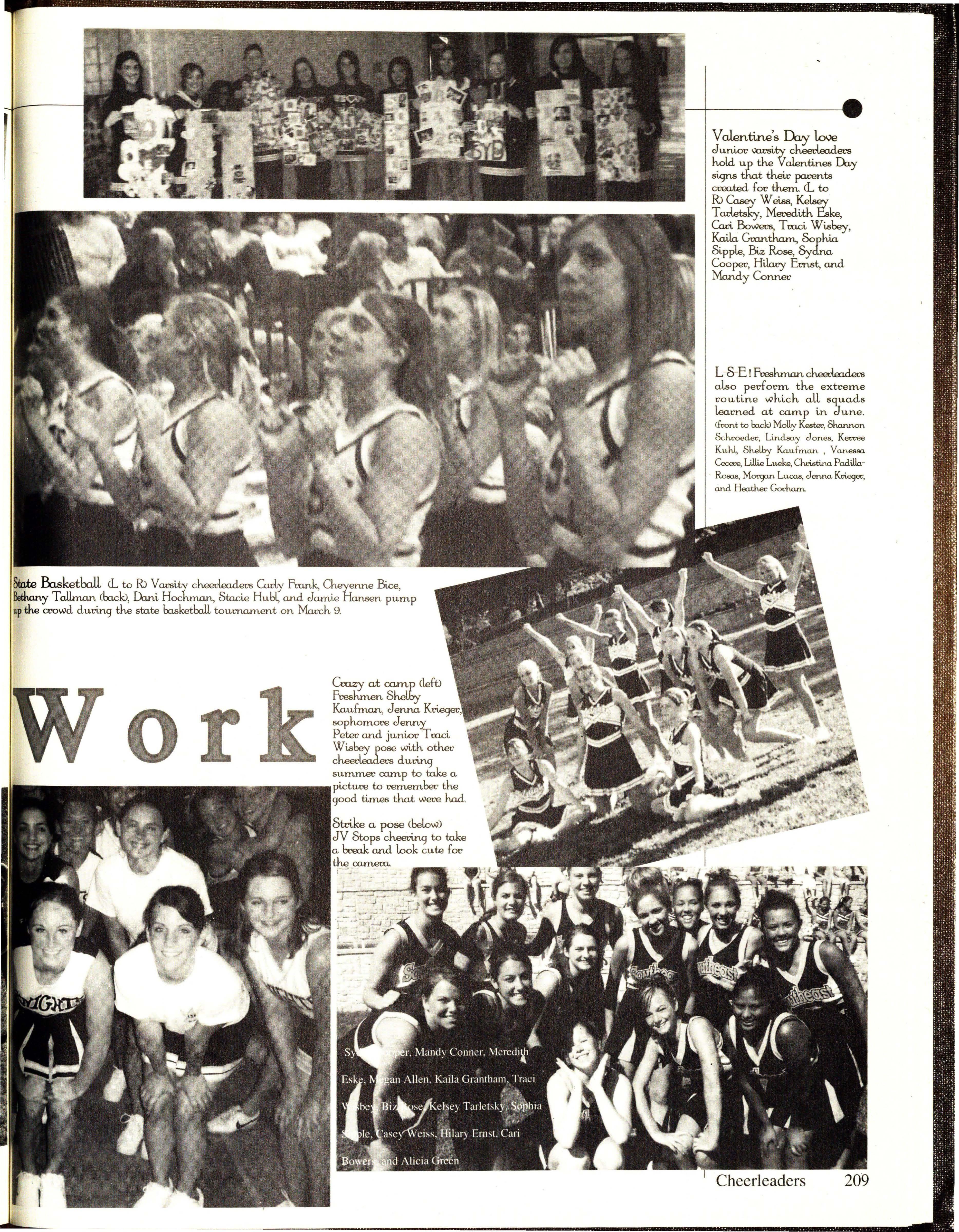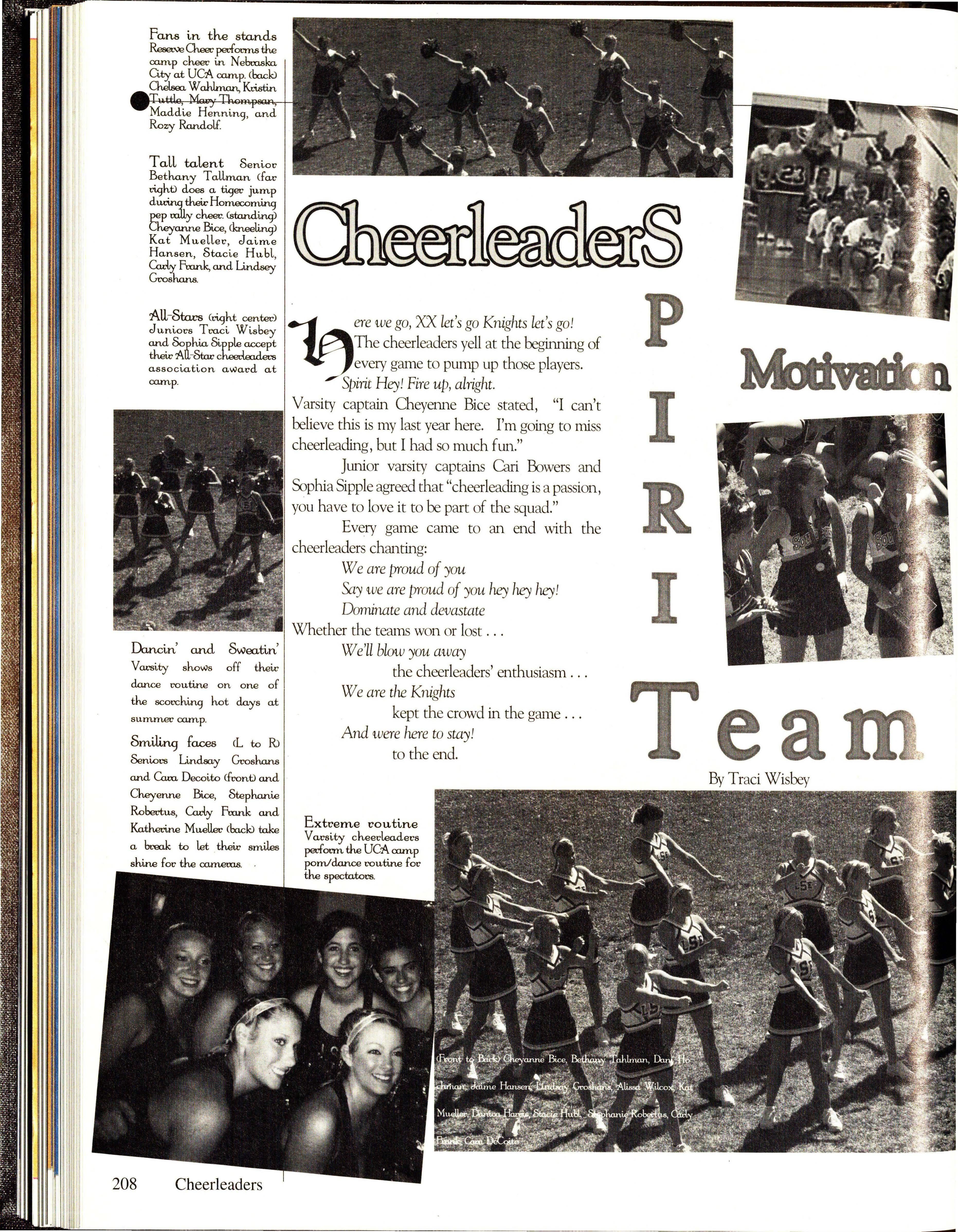 Cheerleading and other school activities helped provide 1emorable mentor s Cheyenne Bice looked to her cheerleading JOnsor, Crystal Folden,Lapin, for a positive example. She also )()ked to her friends and co--captain Alissa Wilcox for support.