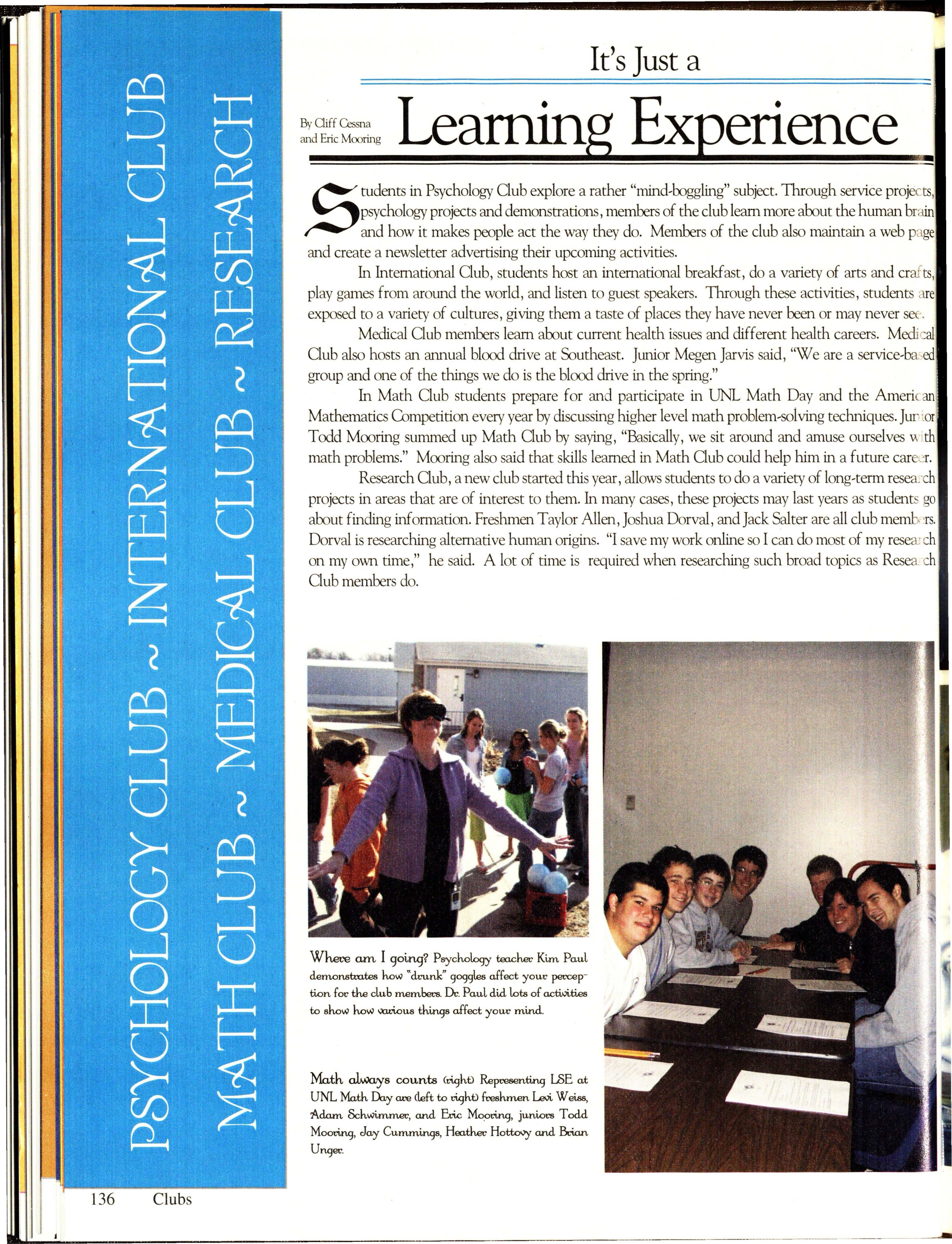 On May Day, tears may start to show in the eyes of some train at full speed. This is the year you graduate; this is the year seniors. They know that in a month some of the people they see your life changes the most ,, going from a life you have known every day in the halls will never be seen again. A best friend will be for thirteen years to something entirely new, whether it is college, moving halfway across the country or halfway around the world as finding a career, or just exploring the world. But as the lyrics in they go their own way. Still others will stay here. Reunions may bring a song by Semisonic go, "Every new beginning comes from some us back to Lincoln, but the thing that will tie us all back together will o ther beginning's end." be the memories :we keep, the ones we made at Lincoln 5:}utheast.