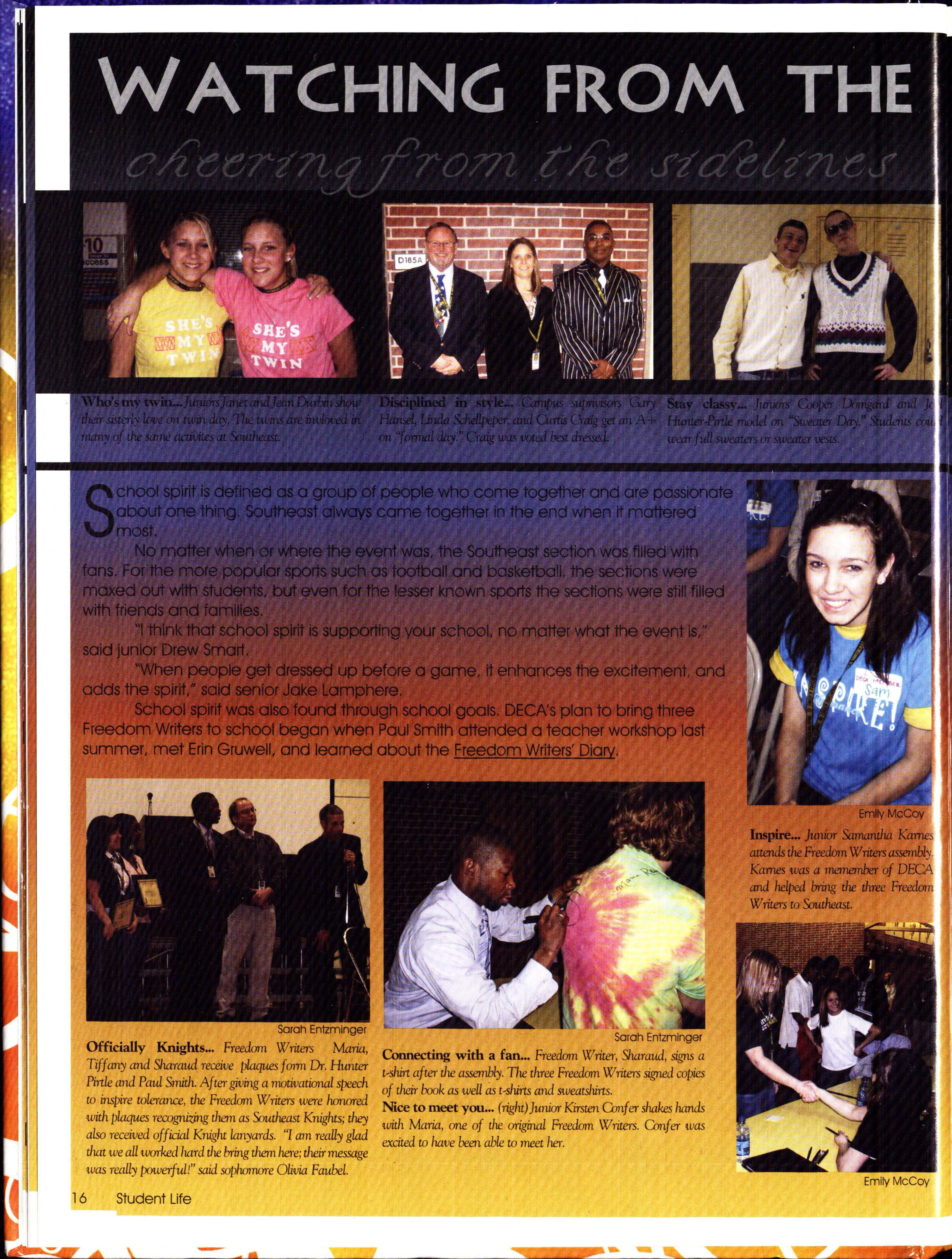 Inspire... Juwor Samantha Karnes' attends the Freedom Writers assembly Karnes was a memember of DECA and helped bring the three Freedom Writers to Smttheast.