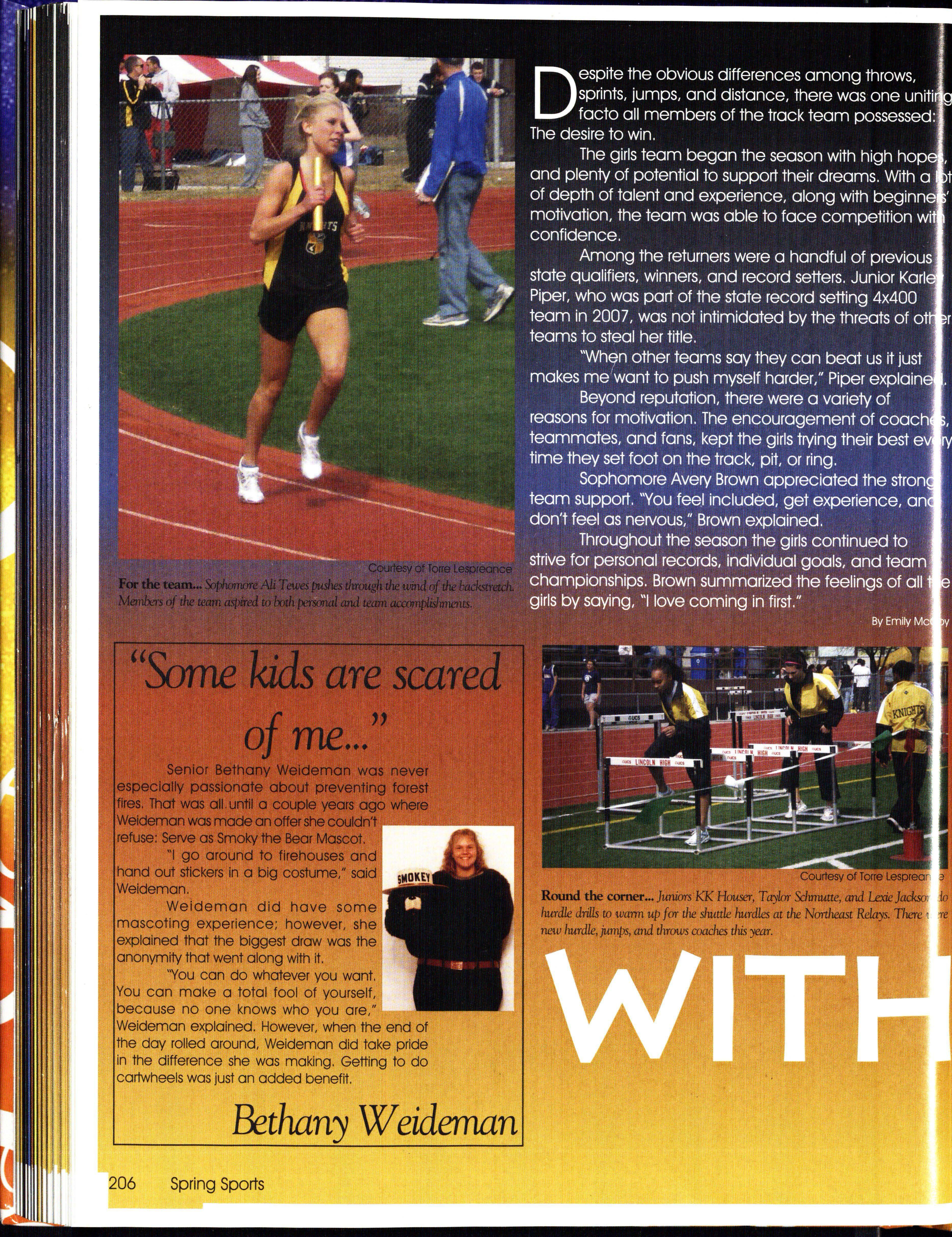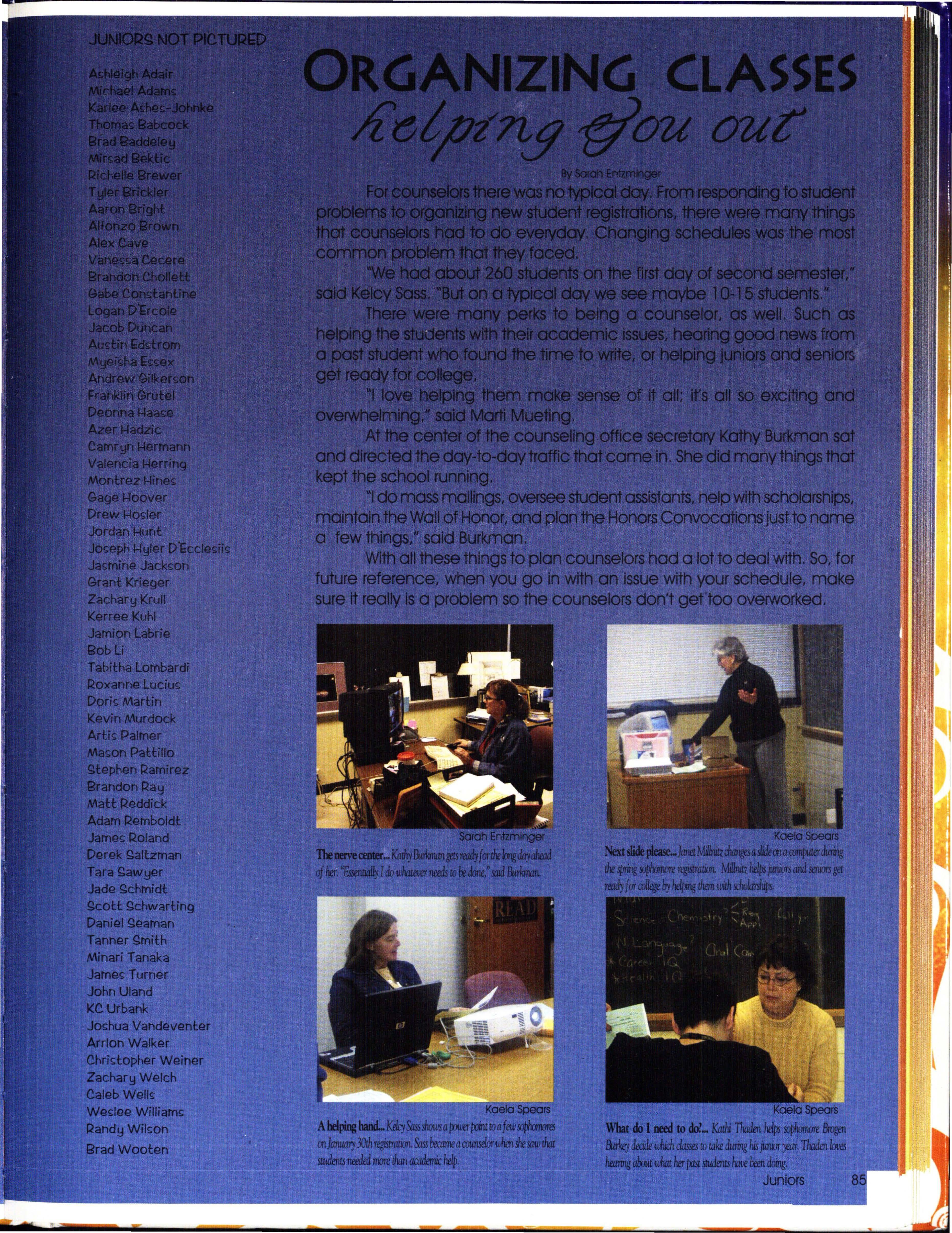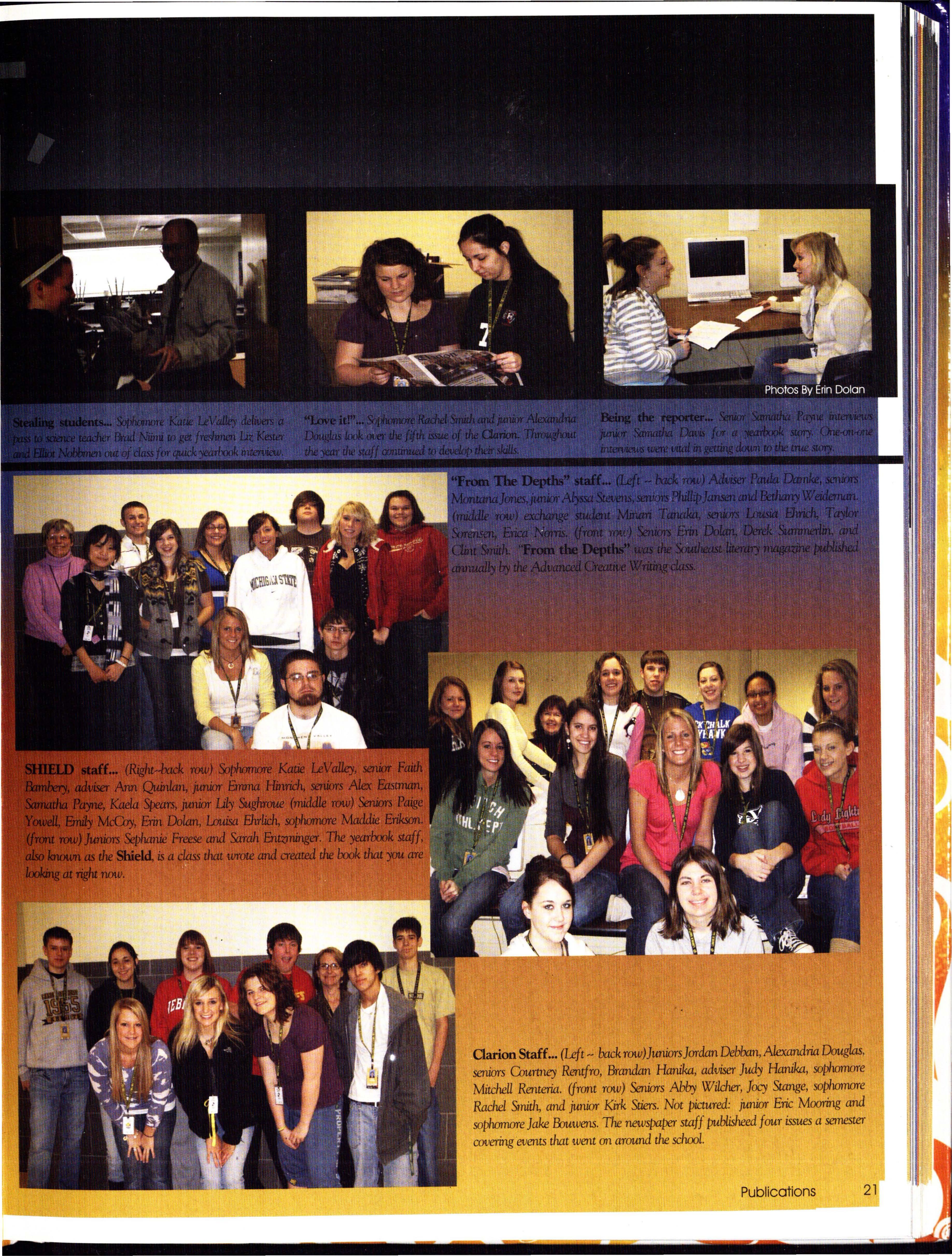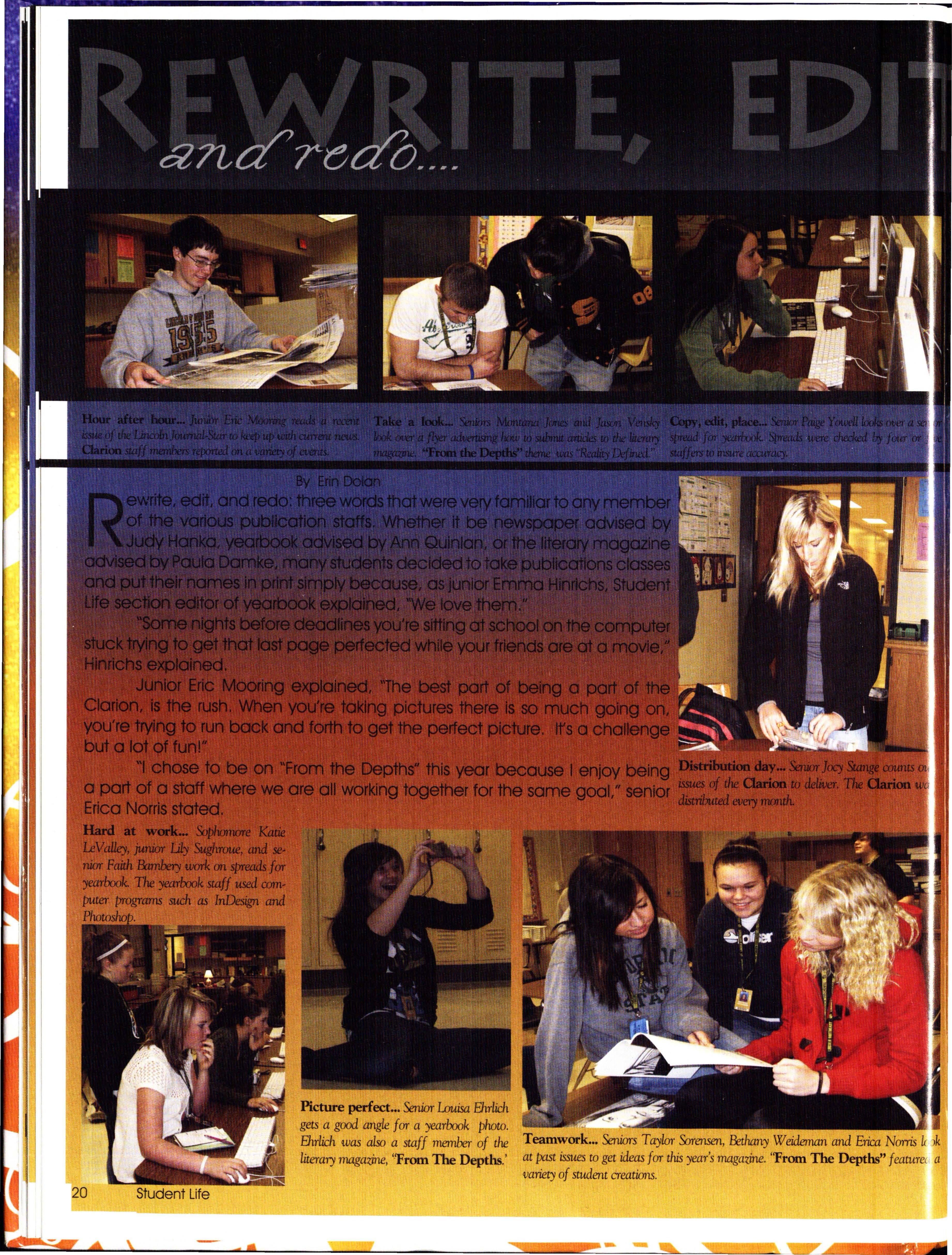 Picture perfect... Senior Louisa Ehrlich gets a good angle for a yearbook photo. - i Ehrlich was also a staff member of the Teamwork... Seniors Taylor £Jrensen, Bethany Weideman and Erica Norris k , k literary magazine, '·'From The Depths.' at past issues to get ideas for this year's magazine. ''From The Depths" feature r a variety of student creations.