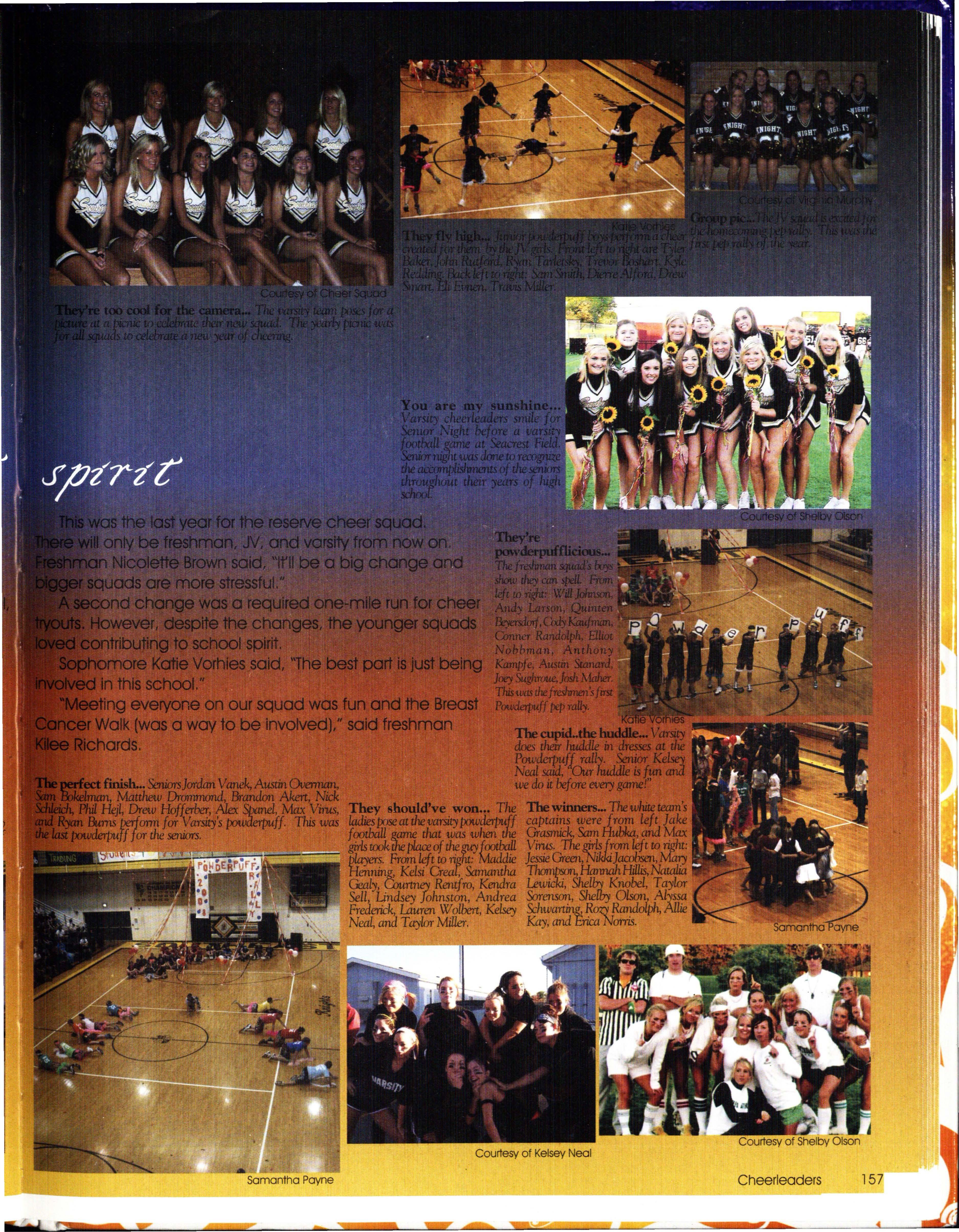 We've got spirit... Juniors Rebecca Fox and Morgan Lucas perform at the pep rally. The cheerleaders motivated the students for the events to come.