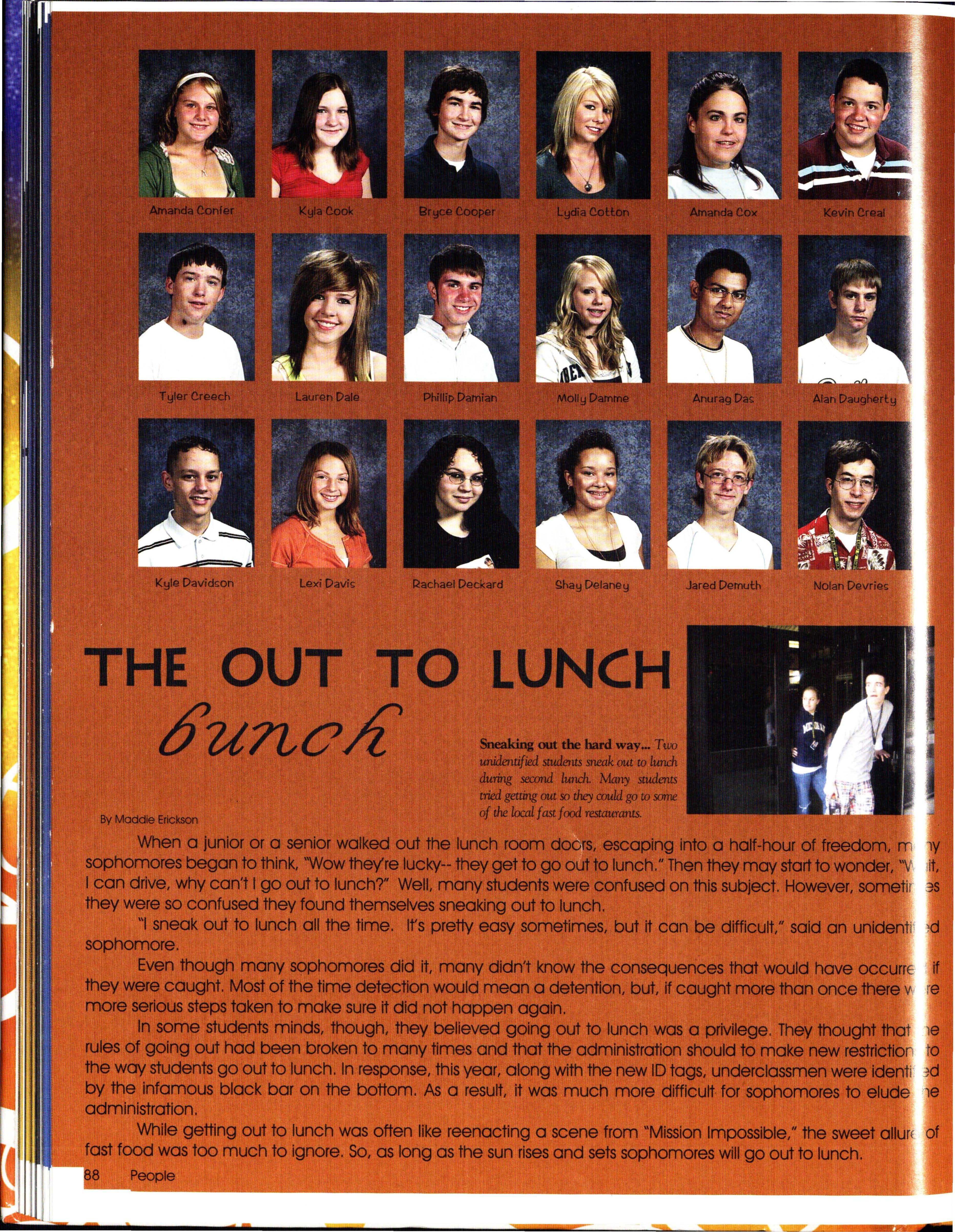 Oiristiansen and Derek Harris take a break. drives home f ram school. Many sophomores got Courtney Jobes return f ram lunch. Junior F es1 f nd friends ada hi h school mea l • ! ,. ,
