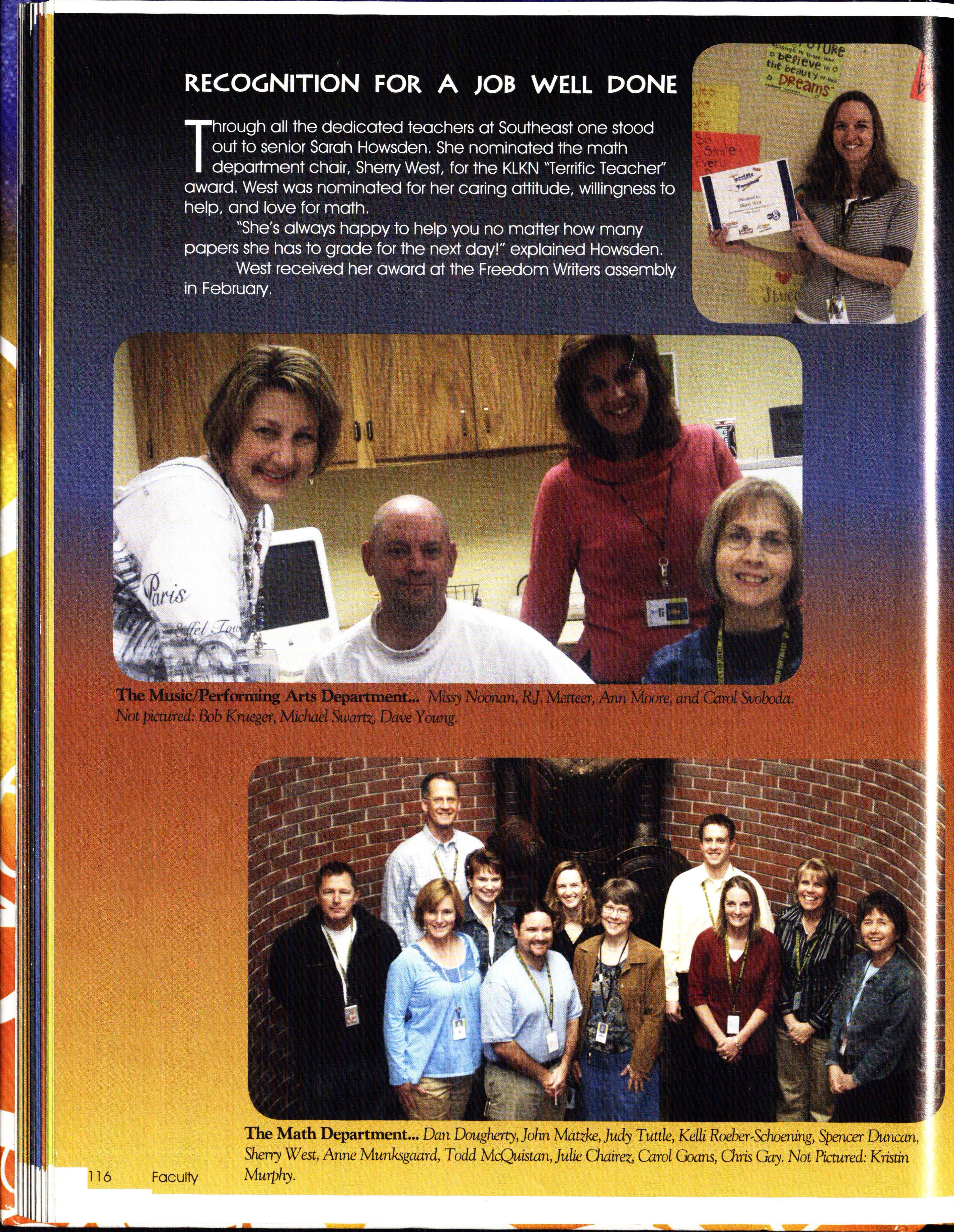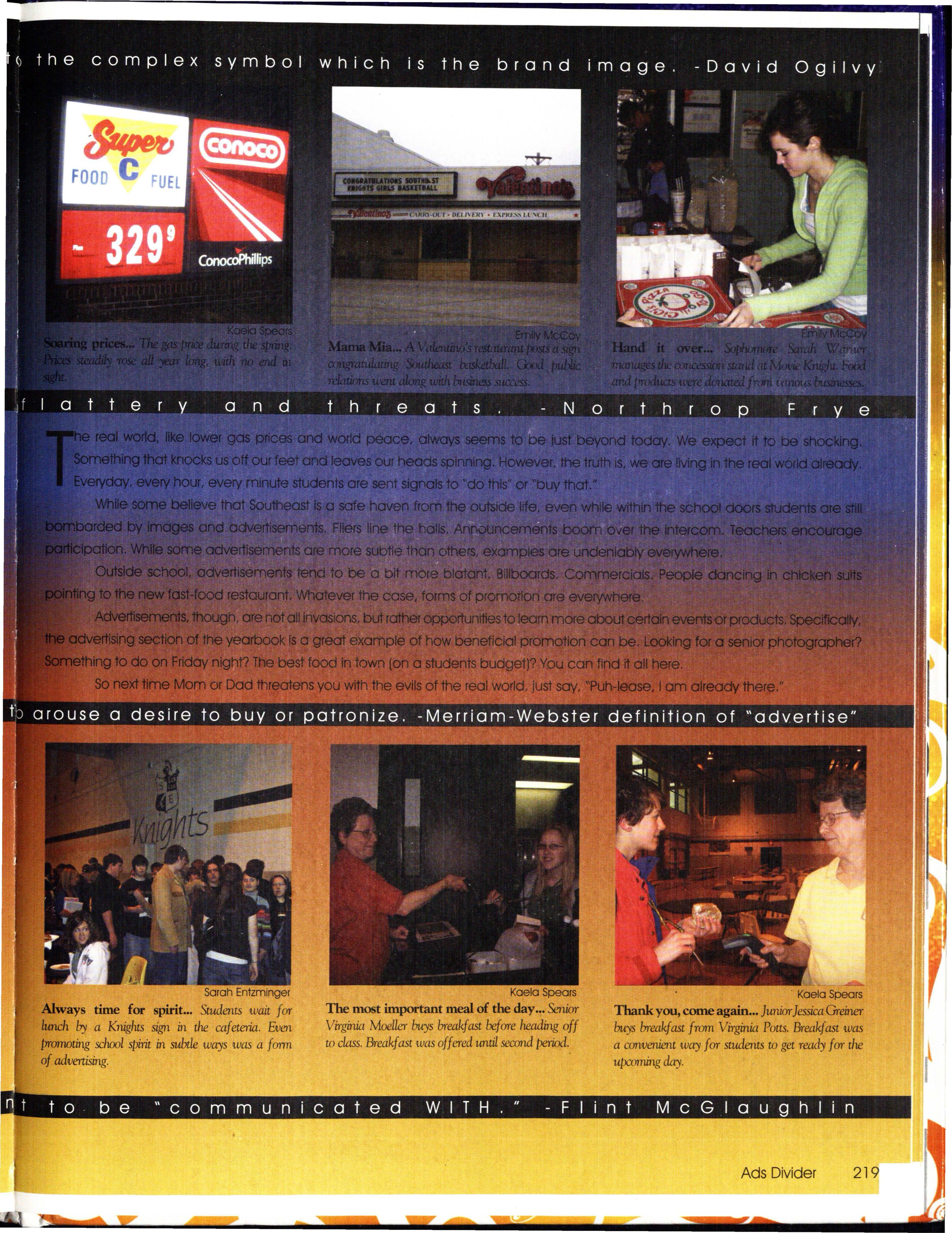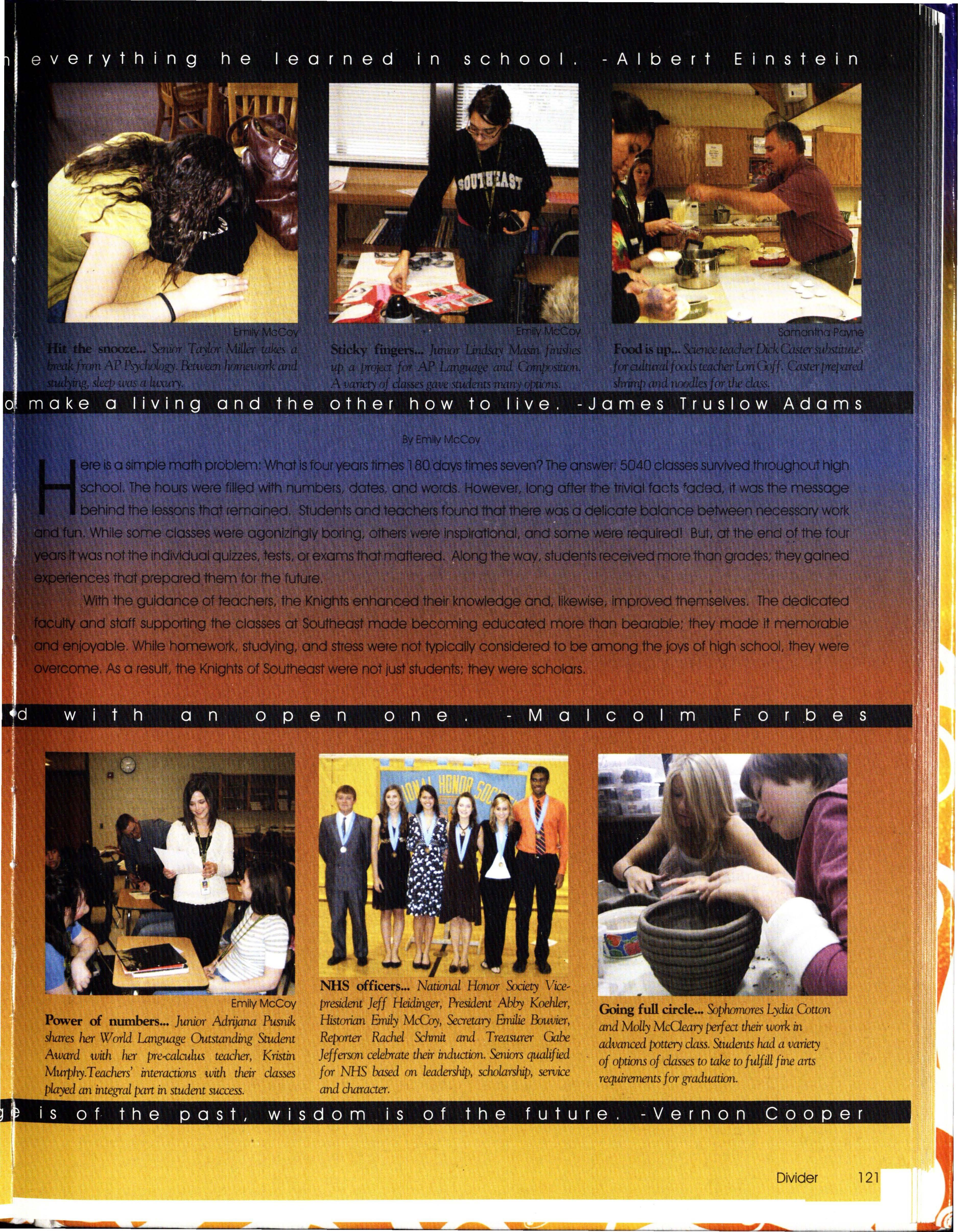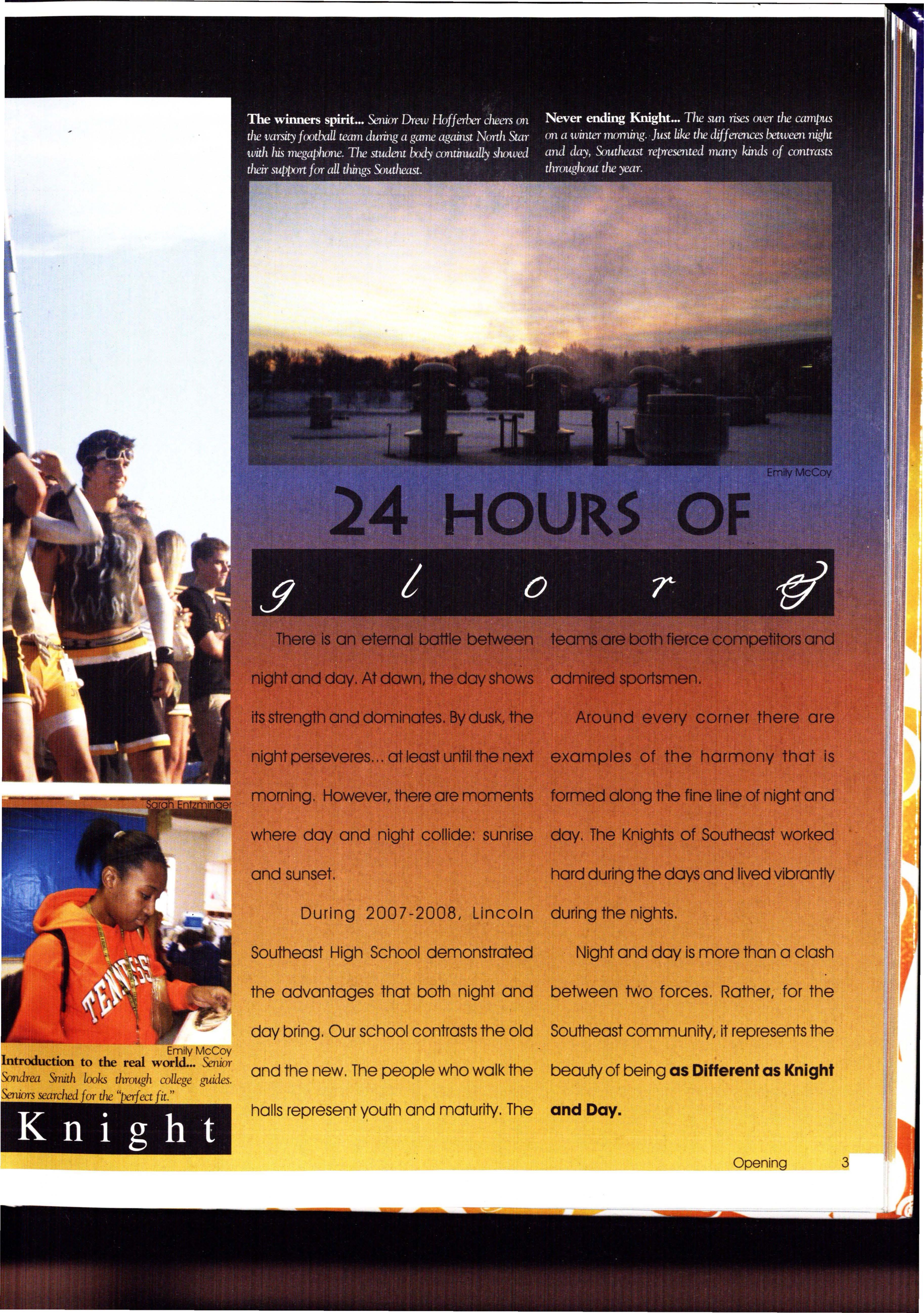 During 2007-2008, Lincoln during the nights. Southeast High School demonstrated Night and day is more than a clash the advantages that both night and between two forces. Rather, for the day bring. Our school contrasts the old Southeast community, it represents the and the new. The people who walk the beau1y of being as Different as Knight halls represent xouth and maturi1y. The and Day.