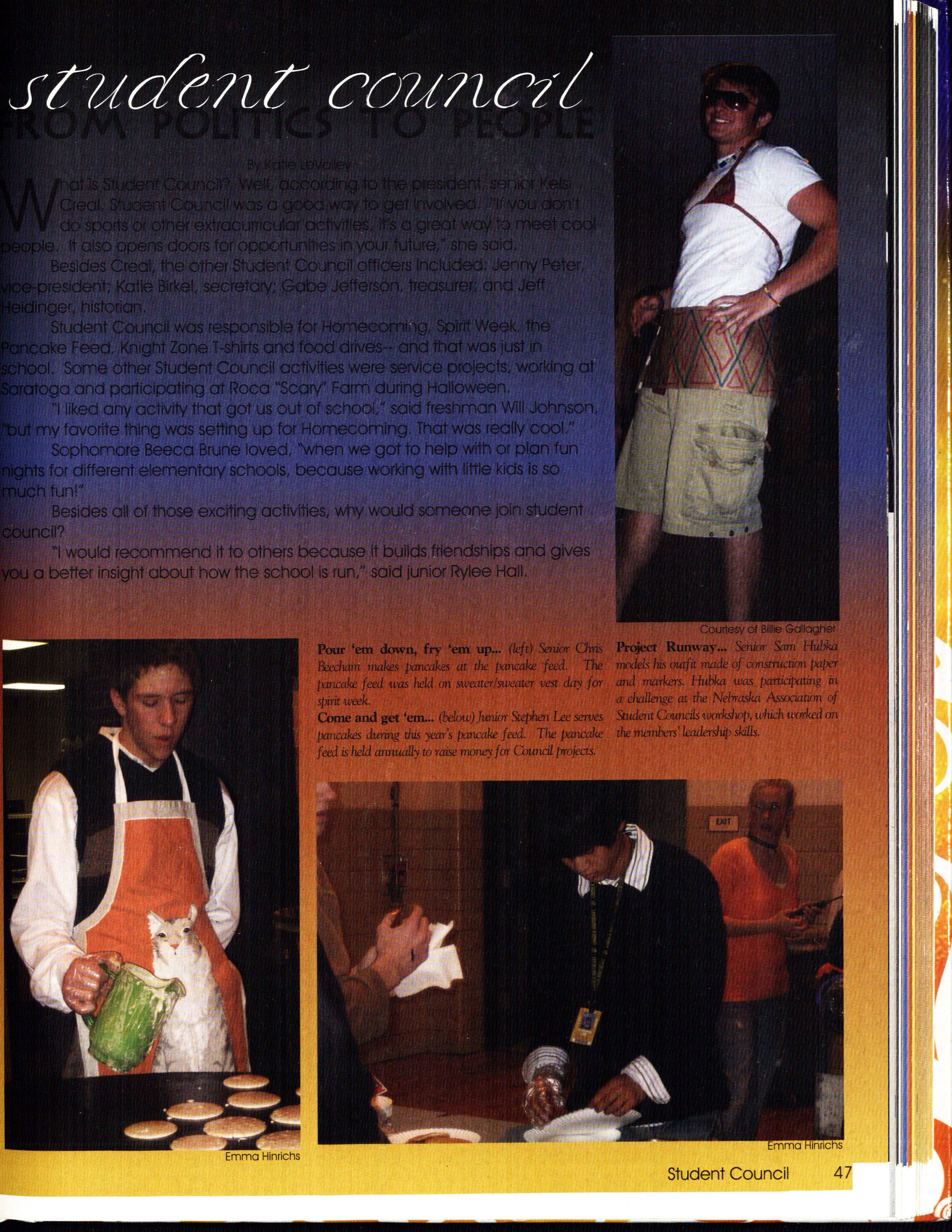Sarah Entzminger From day to night... Snphomore Whitney Wagner And the crown goes to... Seniors Ale.xa Belcher and Brandon Akert are introduced at the Homecoming a nd junior Erica Suarez help set up far the dance . The football game against North Platte. Later at the dance they were announced Homecoming Queen and King. theme was "Under The Knight Sky." Akert was a member of drumline and had perfarmed in the half time show. Stud e nt Council photos by Lily Sughroue Homecom ing