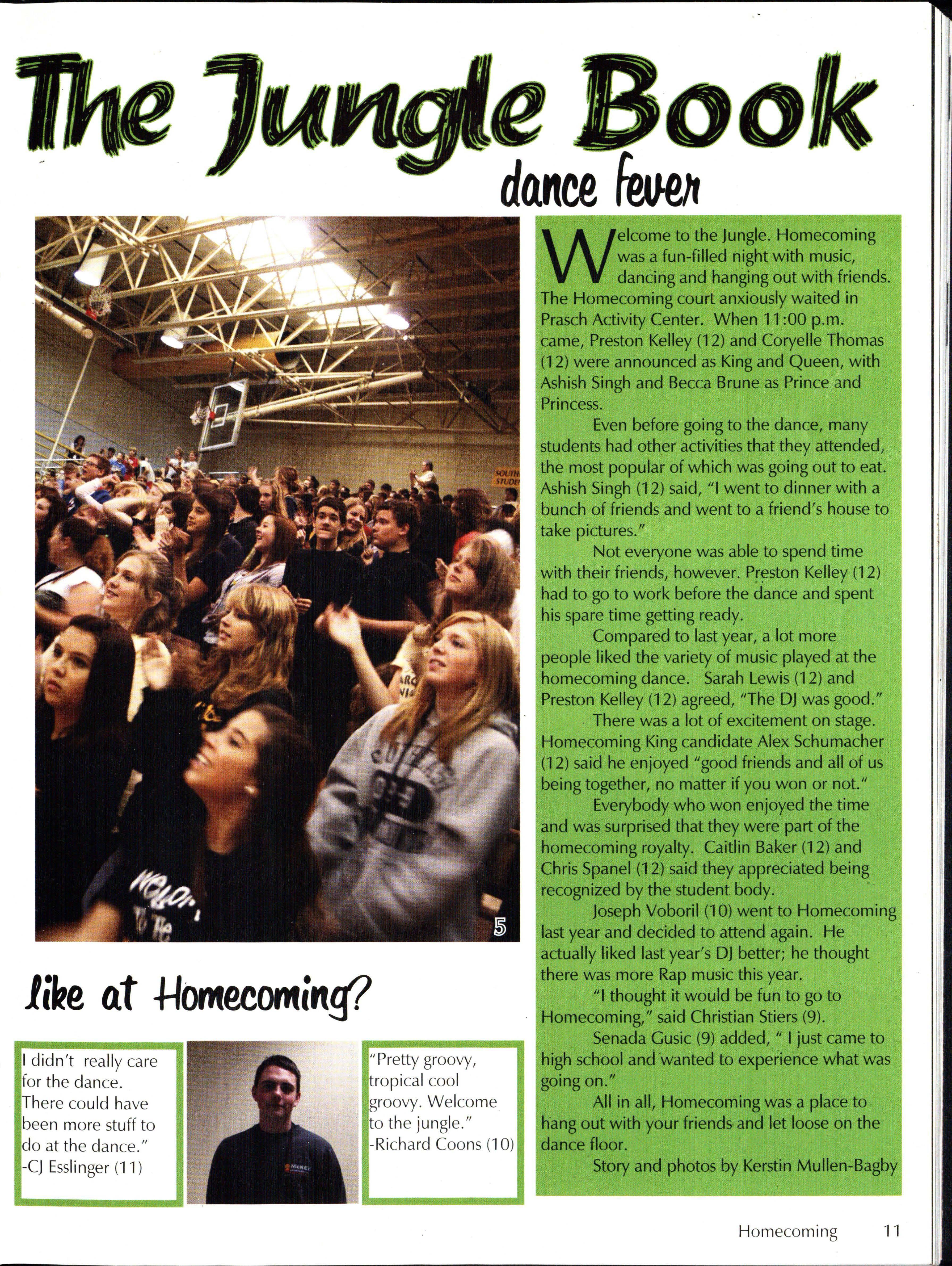 Welcome to the Jungle. Homecoming was a fun-filled night with music, dancing and hanging out with friends. The Homecoming court anxiously waited in Prasch Activity Center. When 11 :00 p.m. came, Preston Kelley (12) and Coryelle Thomas (12) were announced as King and Queen, with Ashish Singh and Becca Brune as Prince and Princess.