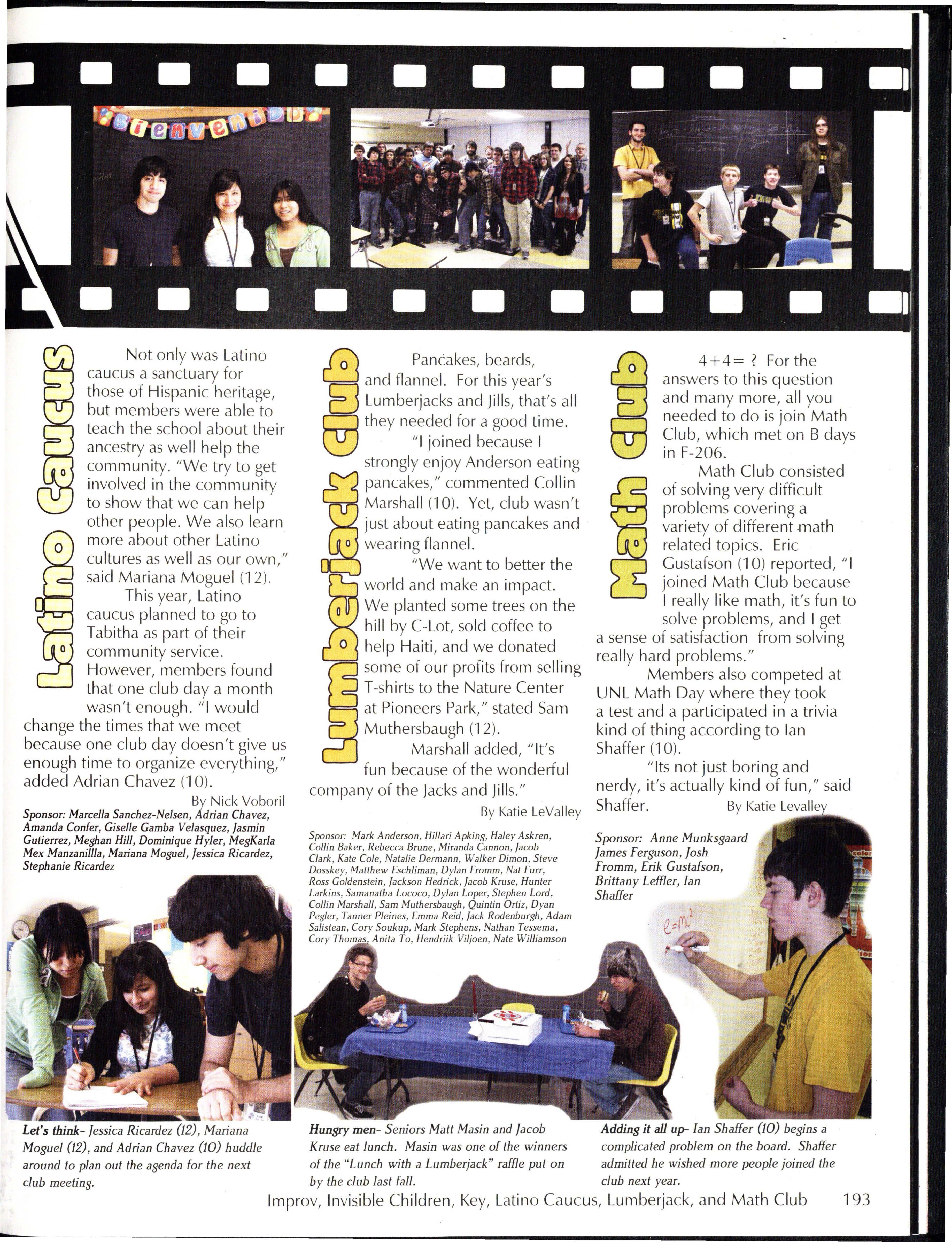 Last but not l~ast, there is action. Although our action was not people flying through windows or surviving explosions, it was equally important and memorable. From traditional activities like Night of Knights and Spirit Week to new things like Lunch with a Lumberjack, pep rally raffles, and the LSE tarp, there was a never-ending liveliness throughout the year. From classroom connected activities like We The People, trips overseas, and district competitions in a myriad of different subjects, to club sponsored activities that helped our school, the community, and people around the world, we were never short on something to do. ·