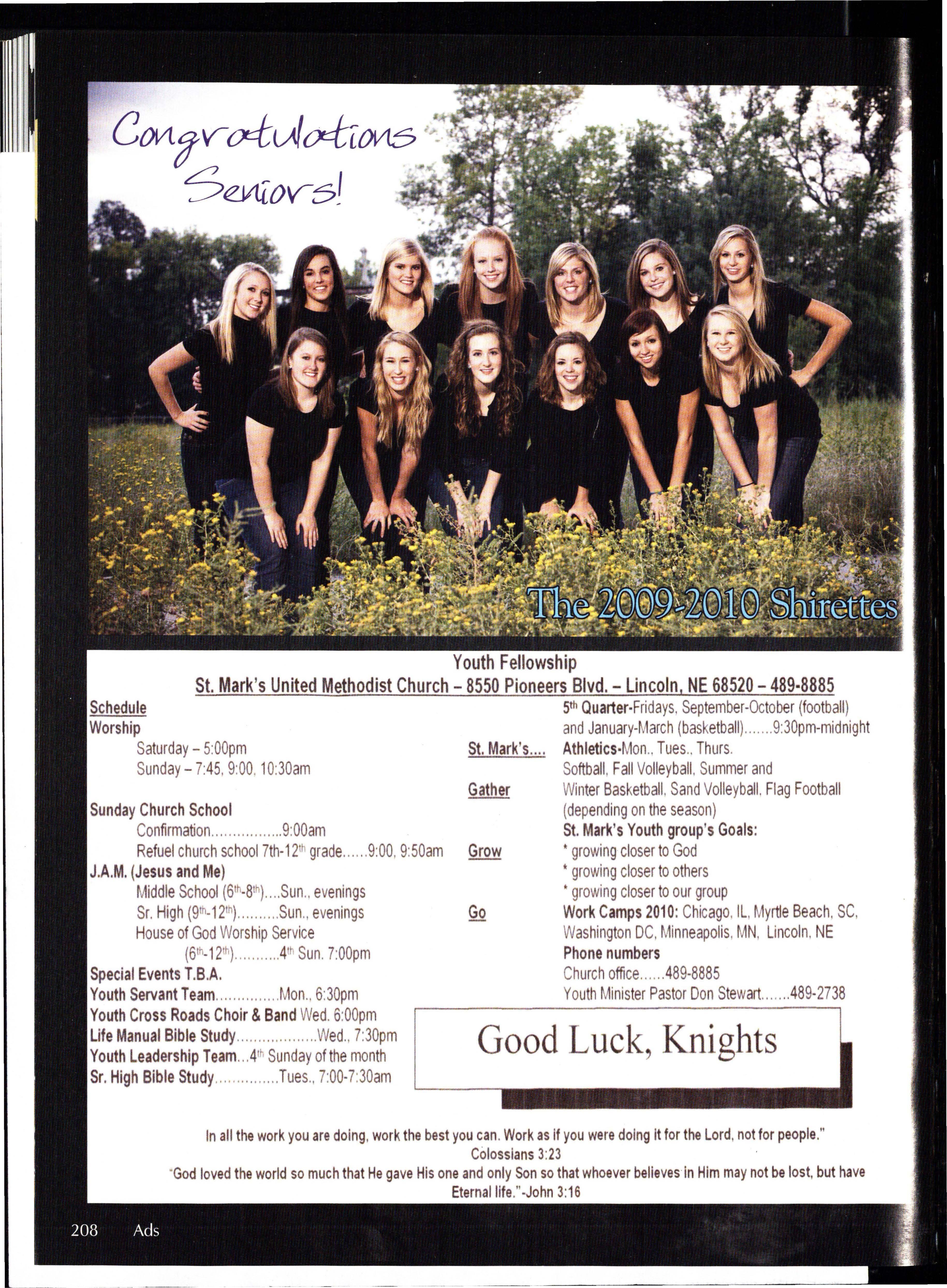 In a hu ge p ro j ect co mpl et e w ith m isse d cl asses, late ni ghts, an p len ty f Satu rd ay w o rk days, t he 20 09 - 20 10 yea rb oo k was co mp lete d Thi s effo rt too k th e ti me , t alen t , and dedi cat i o n of m an y peo pl e in order t o be co mpl et ed o n t im e and ava ilab le t o yo u Th e th em e t is yea r, in cas you have n ' t alrea d y rea liz ed it by its co ntinu ati o n fr o m cove r t o cove r, was K niCihc:s C Acrl'-.""'R A cn:m! Th e t heme was c hose n t o represe nt t hi s yea r beca use o f t he eve r-in c reas ing t ec hn o log ica l ad va nc me nts th at hav e be en m ad e, and becau se o t he im pa ct of mov ies o n stud e nts' lives. N eve r befor e w e re t he re o many d i fferent mo vies stud ents co uld relate t o w hil e w atc hin g t hem o n a d ev ice as small as th ei r hand o r i n a 8- 0 pe ri ence that mad e yo u fee l l ike yo u w ere t he re
