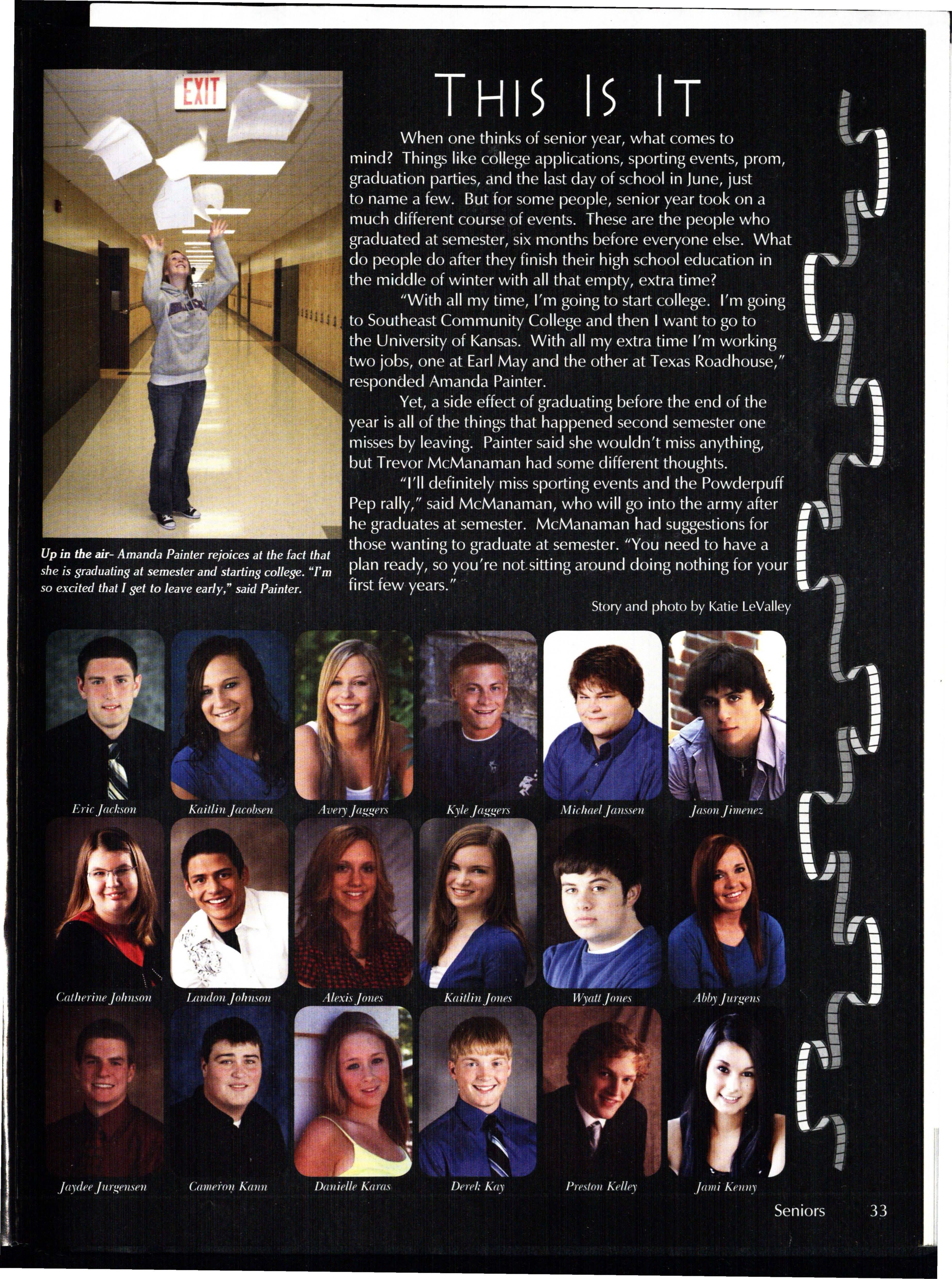 1. Winners at heart- Seniors Alex Schumacher, Caitlin Baker, Chris Spanel, Sarah Lewis, Preston Kelley, Coryelle Thomas, Becca Brune, 'A shish Singh, Rachel Plamann and Sam Voelker celebrate their 'election. They appreciated being recognized by a vote from their rfellow senior dassmates.