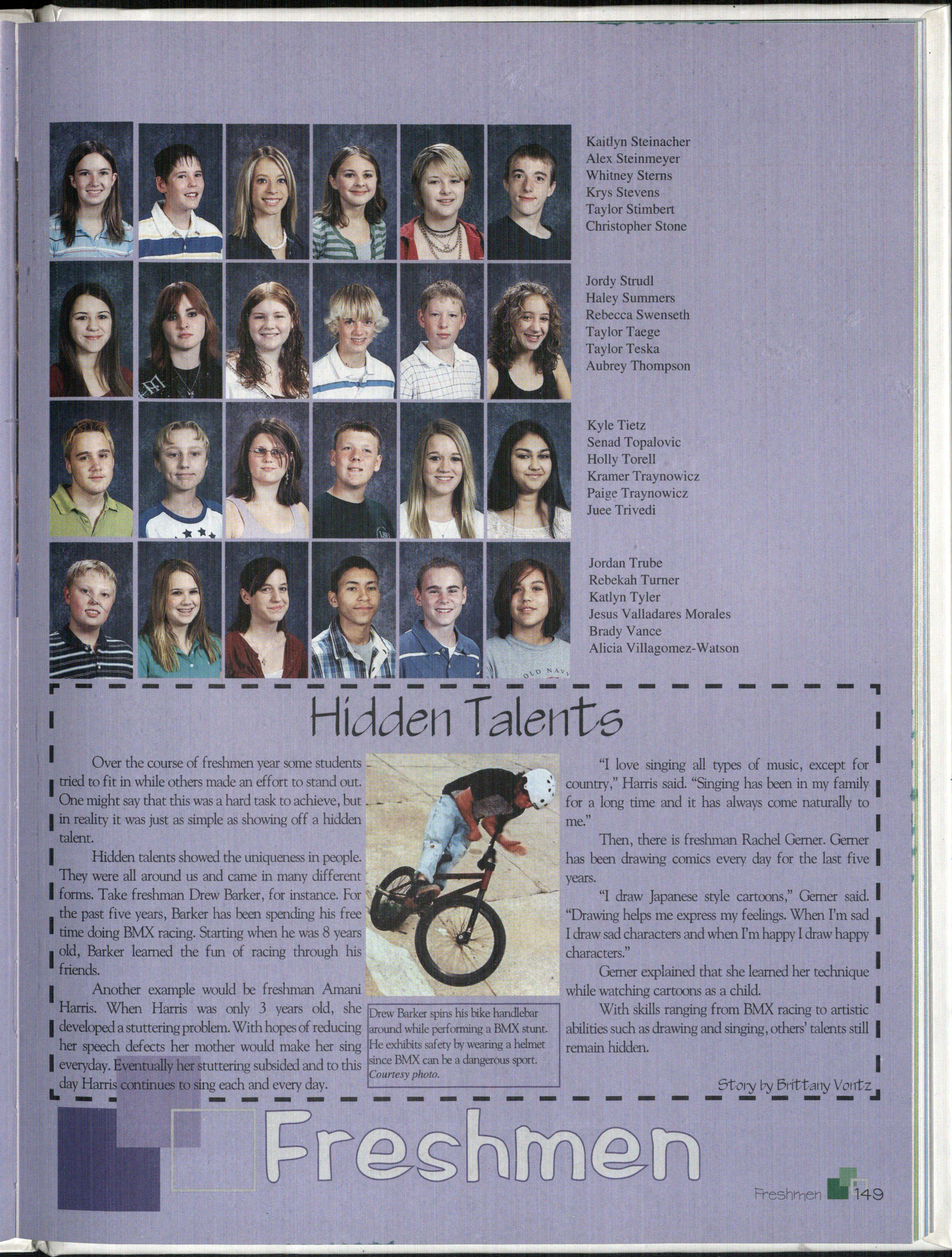 "It wasn't that bad [coming to high school]," Senior Claire Velander, who transferred in as said freshman Chad Hassebrook. "It's just a new a sophomore, remembers her first day as "pretty in, school."