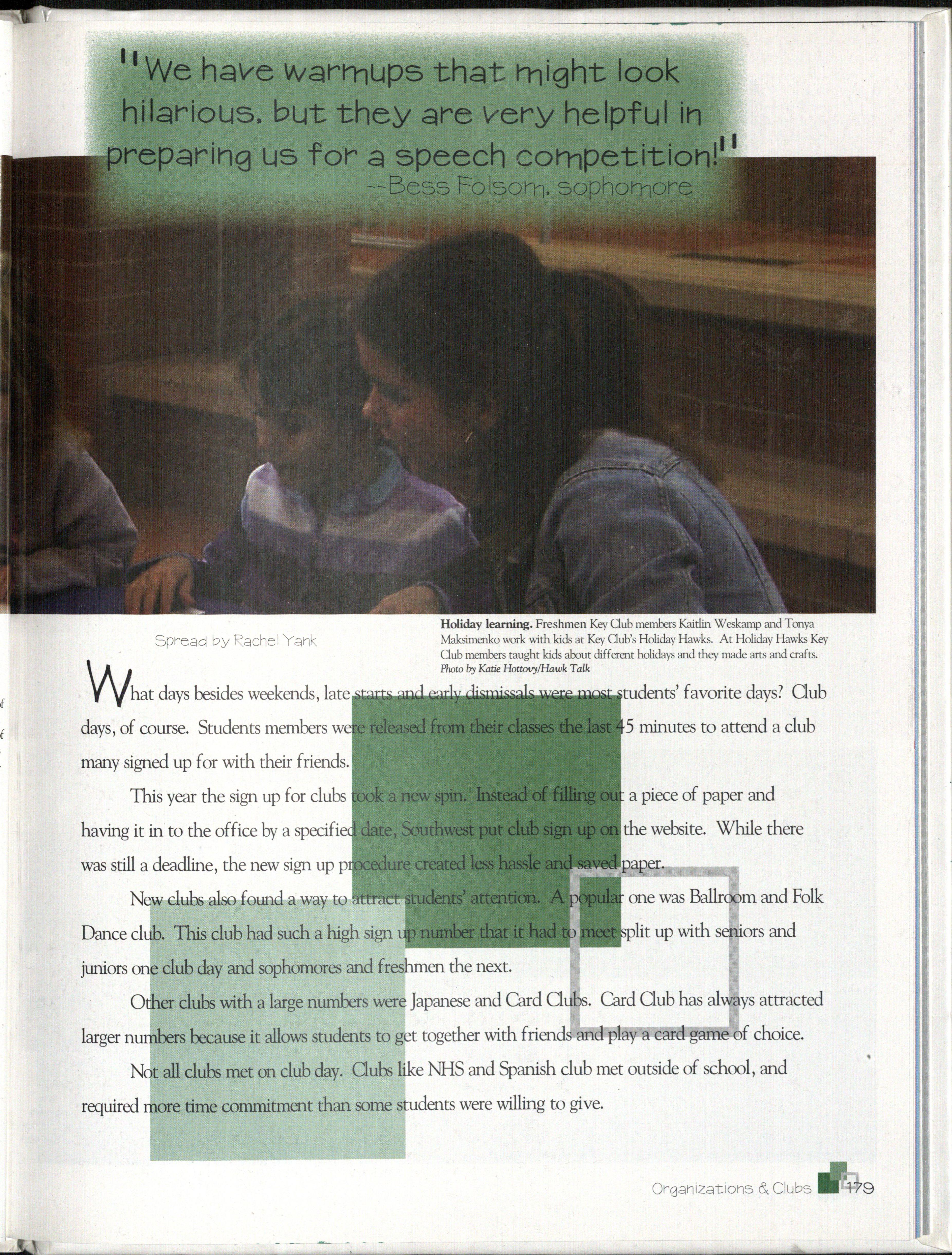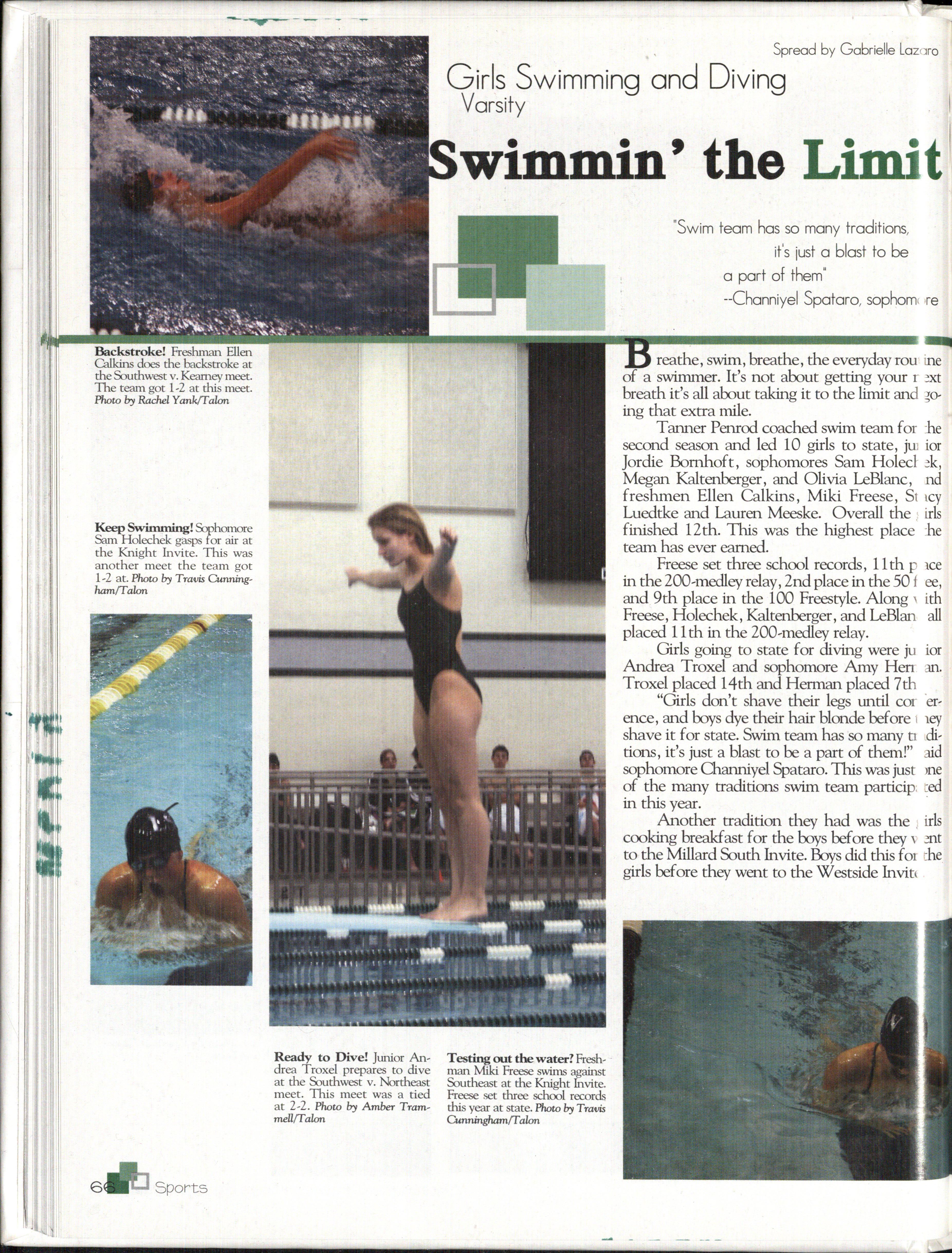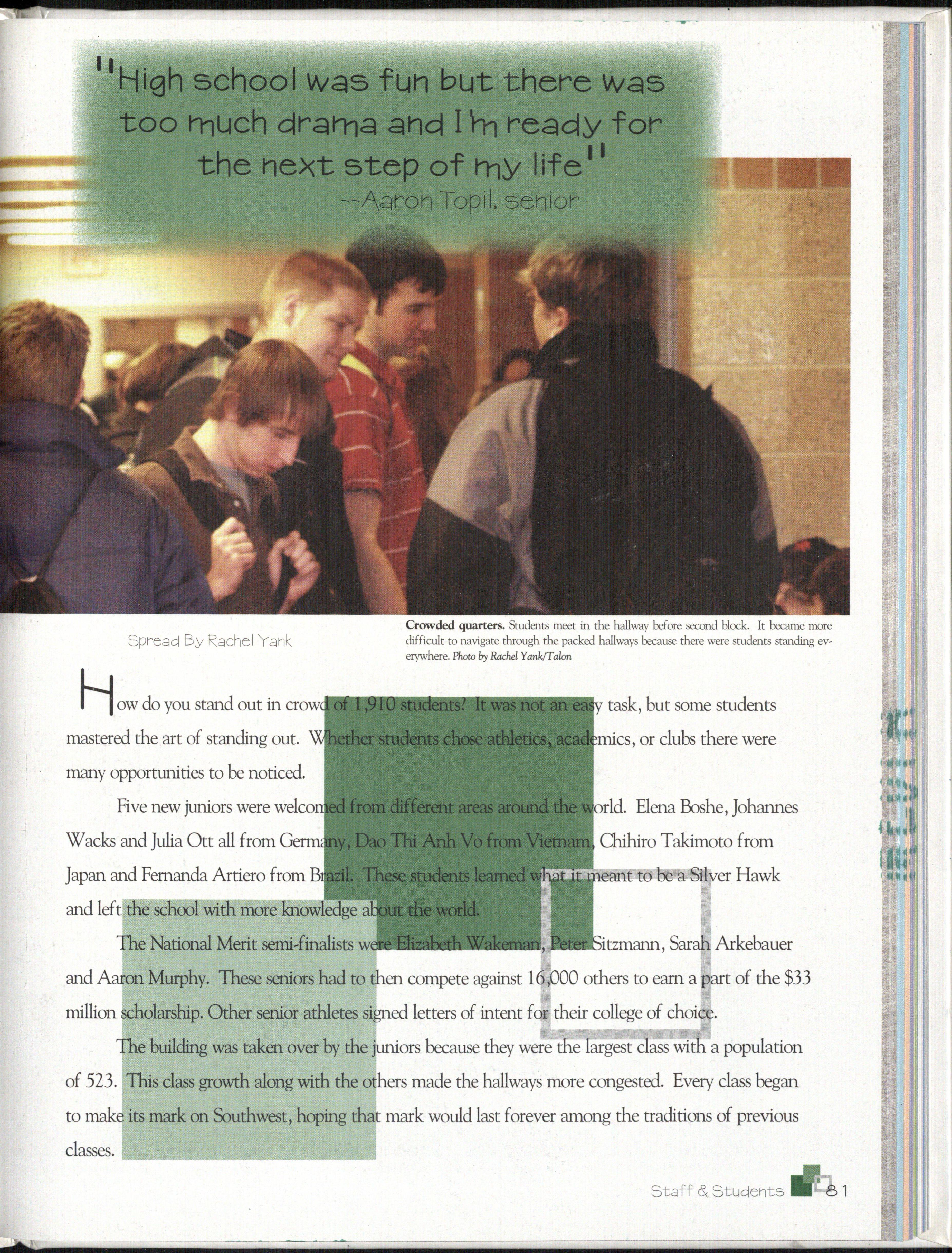Finally, we would like to thank the administration, staff and student body for your help in compiling everything that we put into this book. Without the entire school's help we would not have spent many hours working hard to get every deadline in.