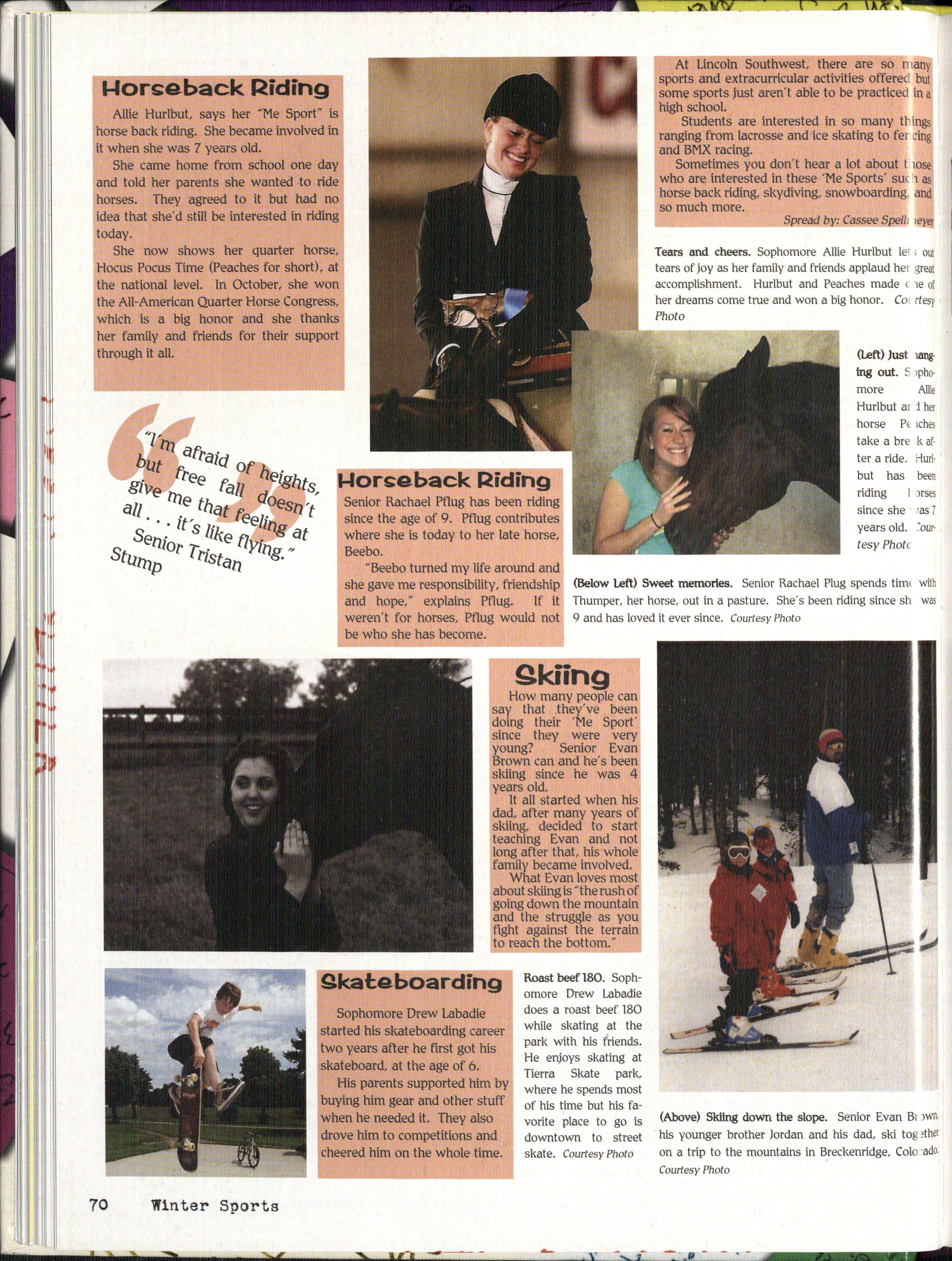 Together they tell the story of the Silver Hawks. Southwest has been part of many stories since its 2002 opening. ln the halls you would hear stories like "Did you hear that we beat East last night in volleyball? lt went to five games but we played really well" or "l had a diff. AP Calculus test yesterday that kicked