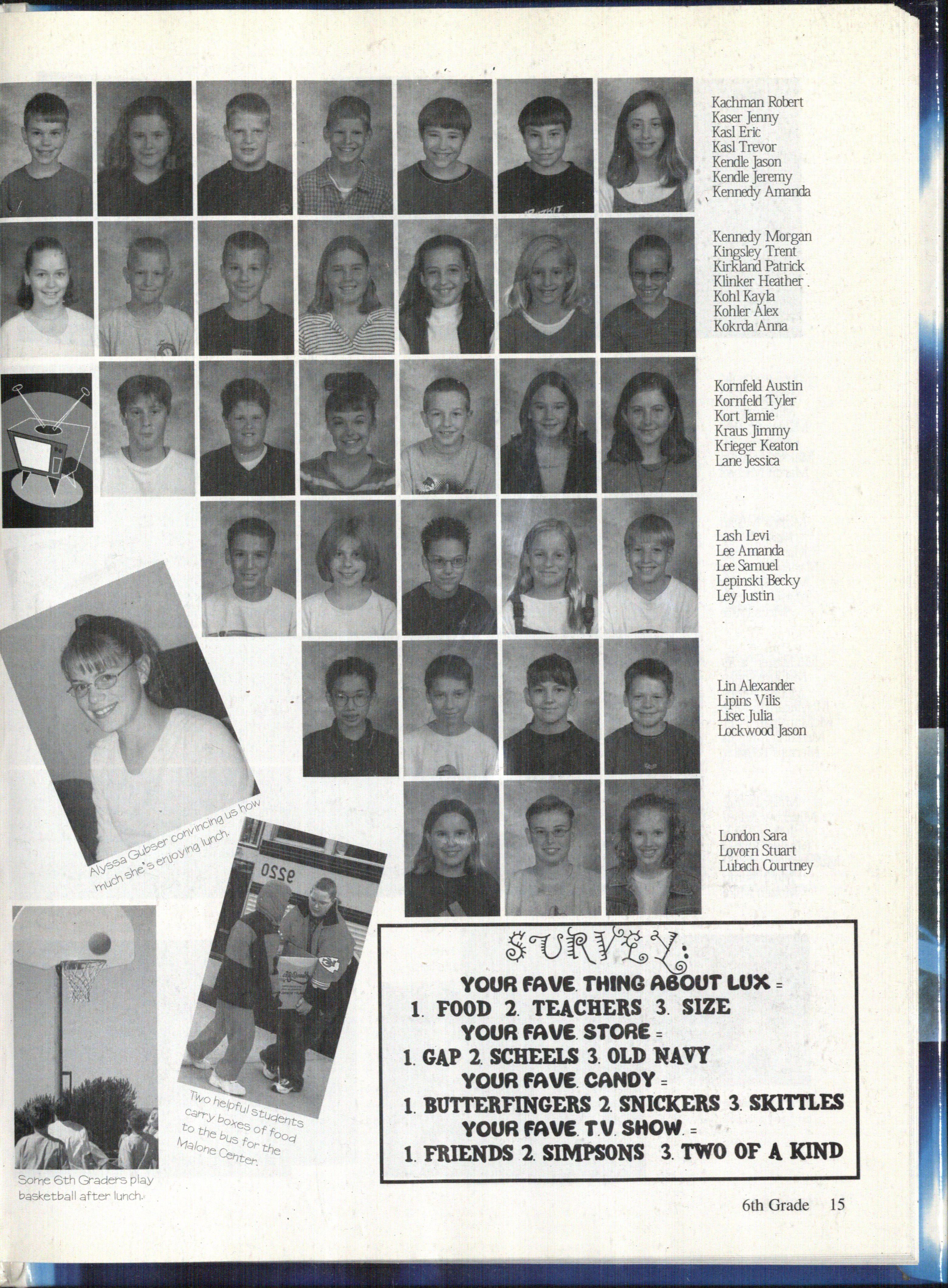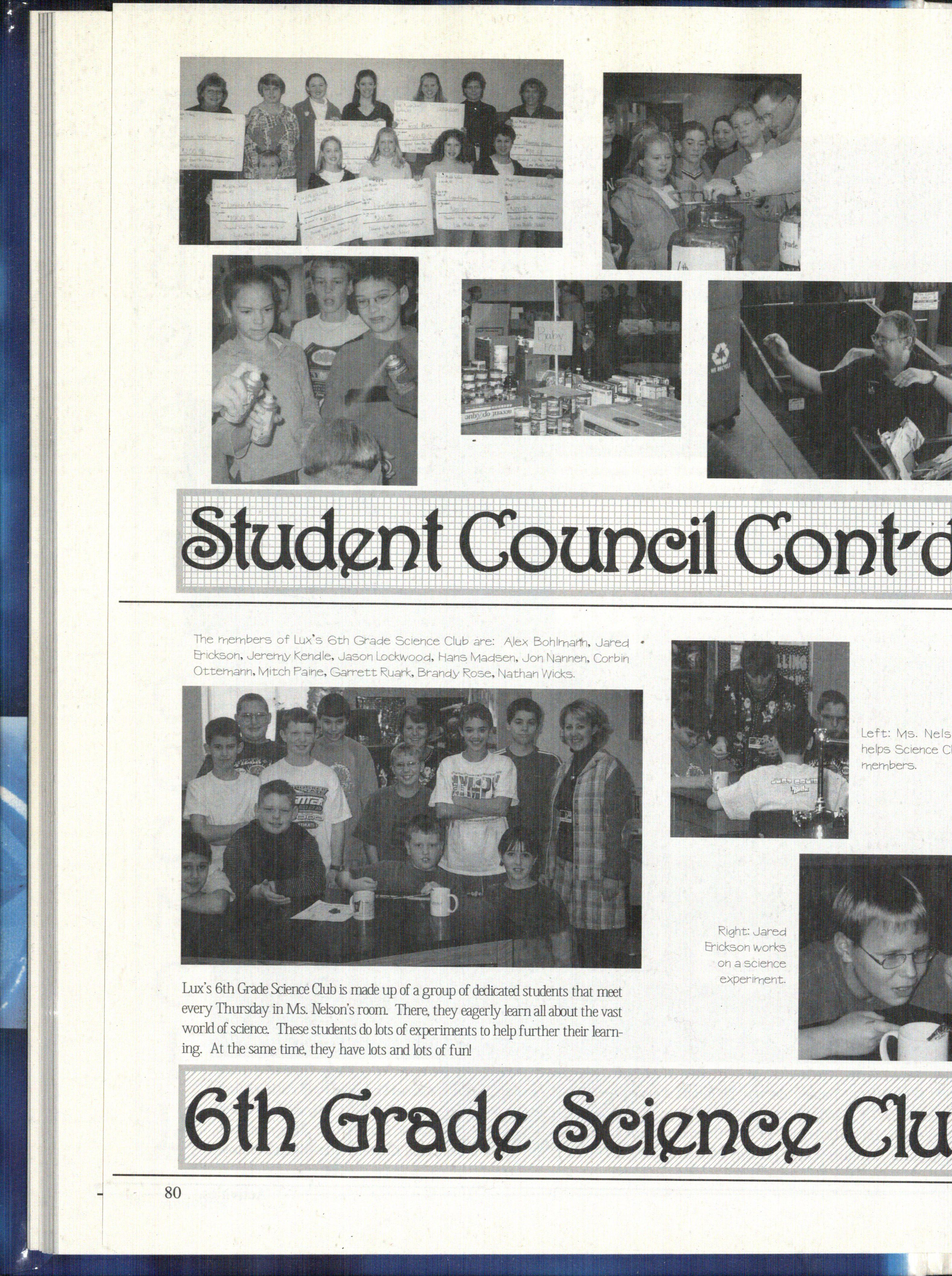 The 111e111bers of Lux ' s 6th 0--ade ScIehce Club are: Alex Bohlrnatti , Jared • Erickson , Jere171y Kendle , Jason Lockwood Hans Madsen , Jon Nannen Corbin Otte111ann Mitch Paine , Garrett Ruark, Brandy Rose , Nathan V11cks.