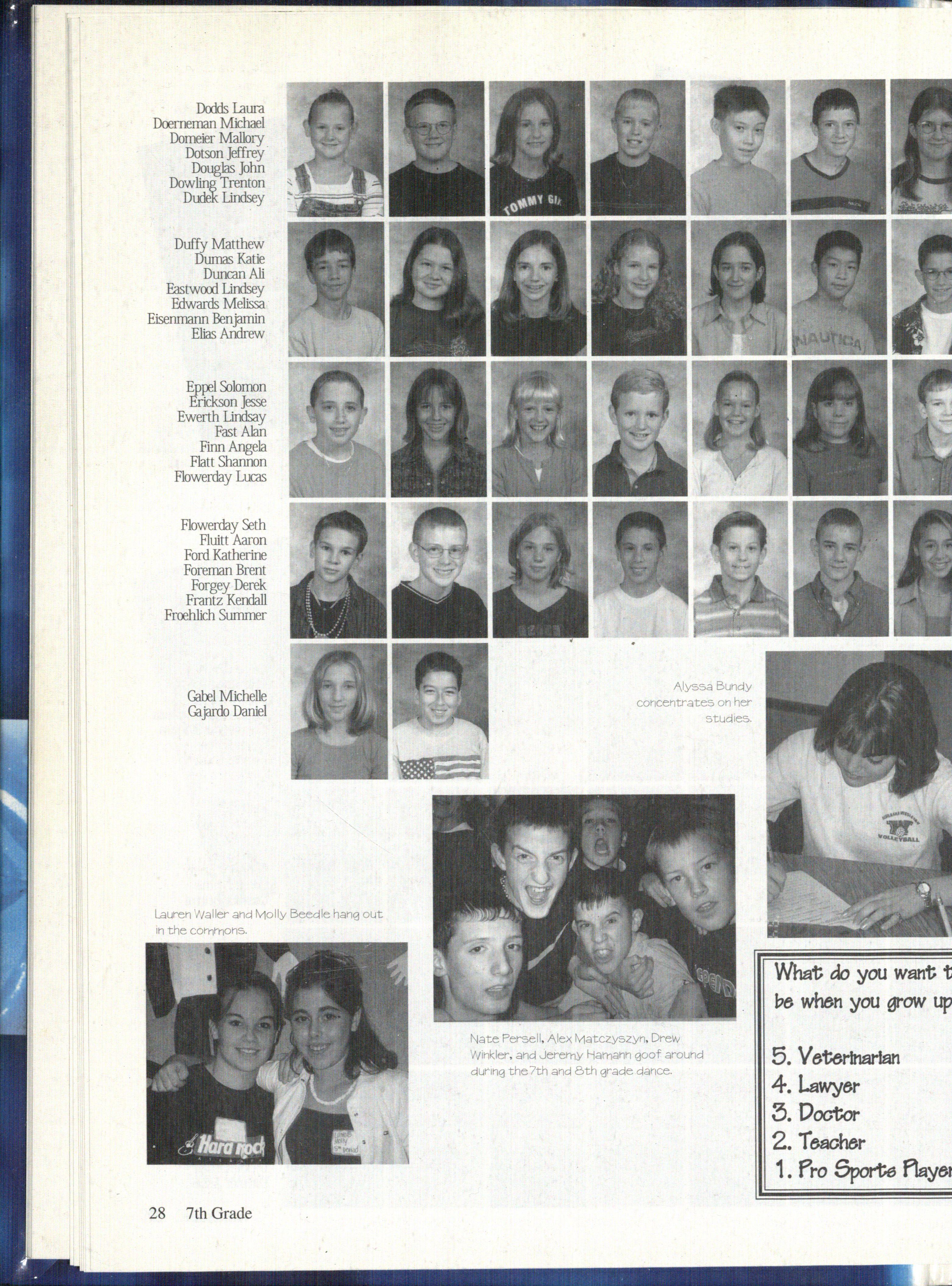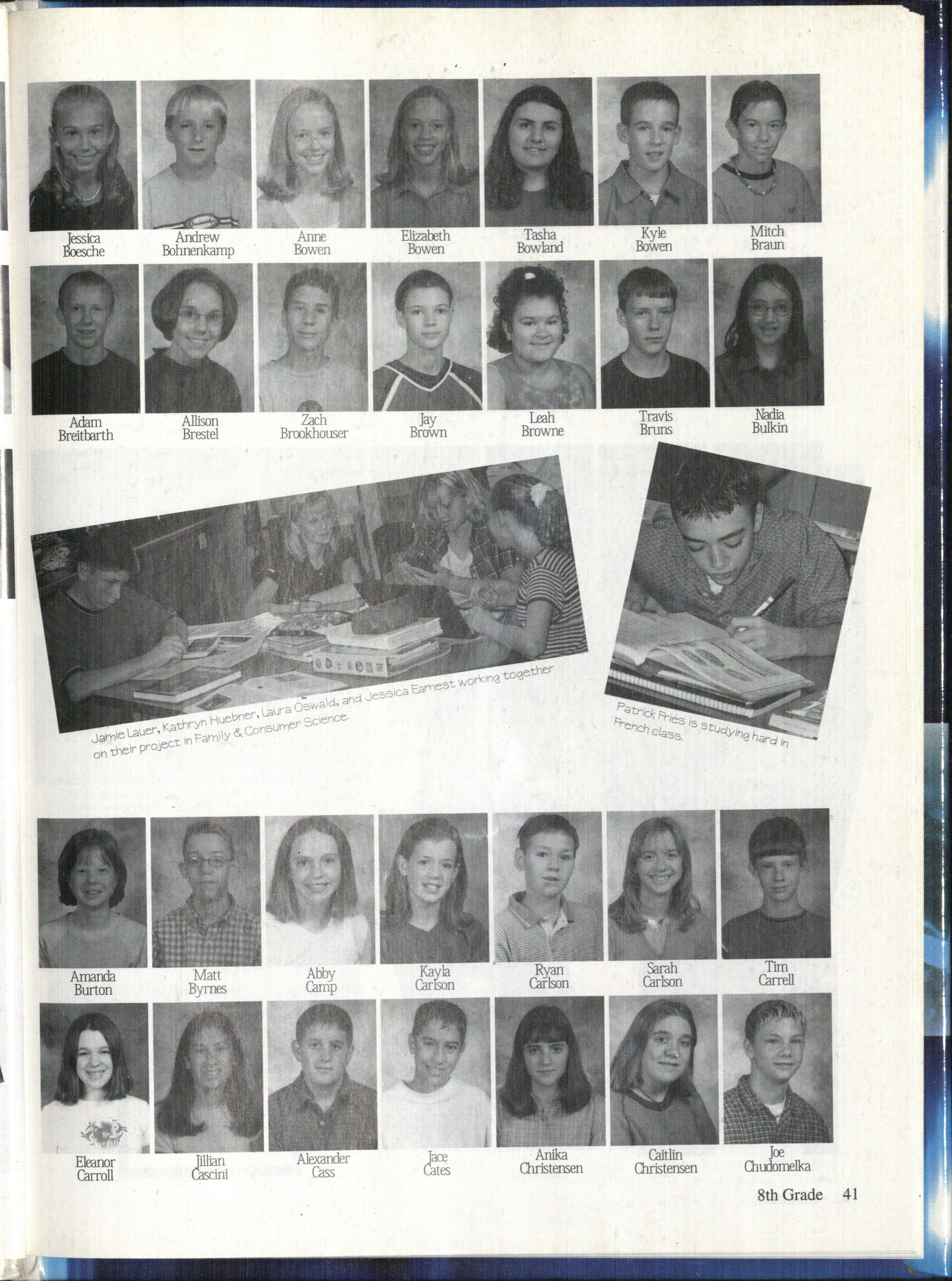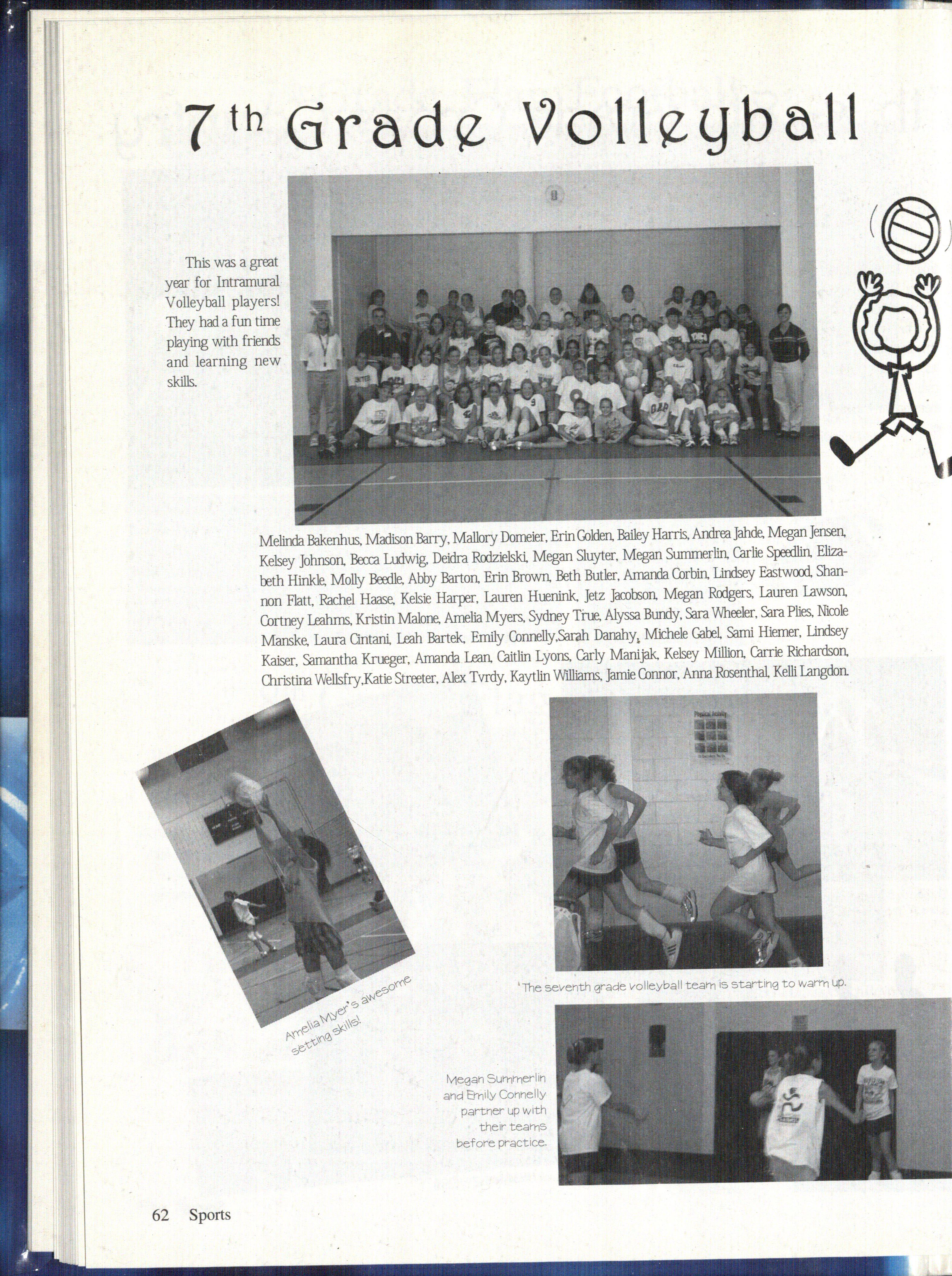 TEAM 6A: Ali Bunde. Arny By~ Jessica Lane. Philip Ostendorf, Peter Voigt Mikaela Wagner TEAM 6B: Dana Durre, Heather Klinker. Danny Miller. 1 yan Nightingale. Allison ~orr. Ellie ~ultz, Jacob Tewes. 5.muny Wang TEAM 6C: Joshua C.Ollins. Mitchell Gerrard, Bryan Johnson Lacey Mueller. l.achary &hr t:6Sam ~tt TEAM 7A: Amber Burrough. Emily C.Onnelly. Lirx:lsey Eastwcxxl, Danielle Herbert Ashley Hornung. An:lrea Jahde, Cassie Jones. Brian Meyer. Nie ola<; O'Brien Maggie Pare. Emily Sawyer. Katie Streeter. Jordan Warkow TEAM 7B: Joshua Brurrnnett Sarah Burnham. Danielle Clark, Laura Doois. Jesse Erickson, Gilden Leanna Holmes. Lauren Huenink, Jetz Jacol:ron Holly Remmenga Danielle ~aper. Katherine Will TEAM 7C. Arity Dickerson Christopher Jensen ri Stolz.er TEAM 8A: Ali Oausen Giase Holt Jake Johnson Alexander Lawrerx:e Heather Ottemann Alex Peters. Ashley Sloniker, Kate Sloniker. Lirxlsay Vocr och TEAM 8B: Eleanor Carroll Caity Christensen Kyle Cb::krell Katie C.Offman Kreley Dennis. Meghan Doois. Elizabeth Hertzler. Guy Hill Matthew Huntoon t 'ref Knight Jame; Sherrill Ashley Sims, Ashley Sorensen Sally Southworth. Mallory Thomassen Kelcy Weakland. Britney Wekesser. Nicole Wurst Krista Zielinski TI \M 8C: Alexandra Barth. Brooke Black, Elizabeth Bowen Anika Christensen Kimberly Dahl Quinn Dornbos, Ann Hunter-Pirtle.
