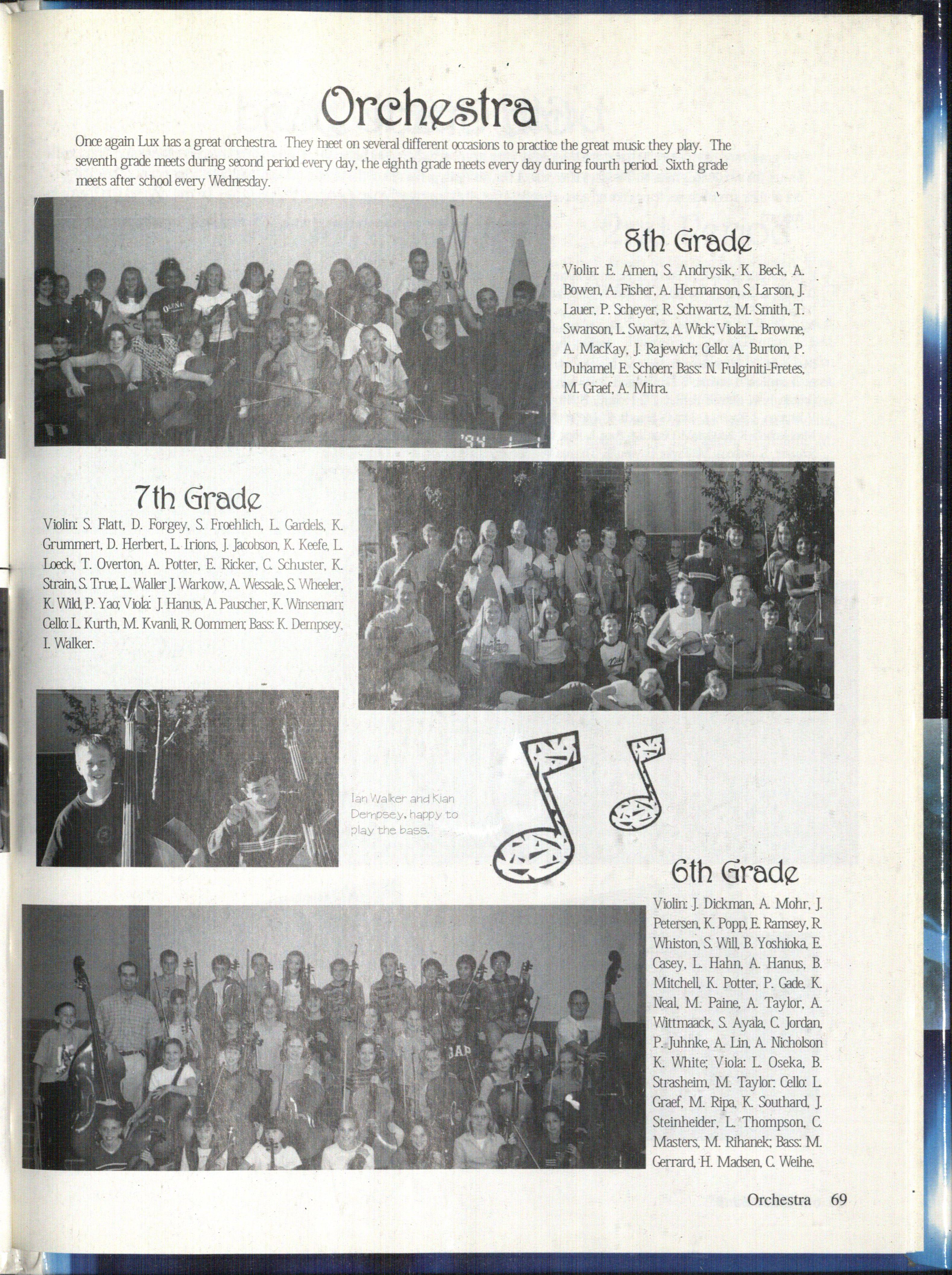 Once again Lux has a great orchestra They meet on several different oo::asions to practice the great music they play. The seventh grade meets during sromd pericxl every day, the eighth grade meets every day during fourth pericxi Sixth grade meets after school every Woonesday