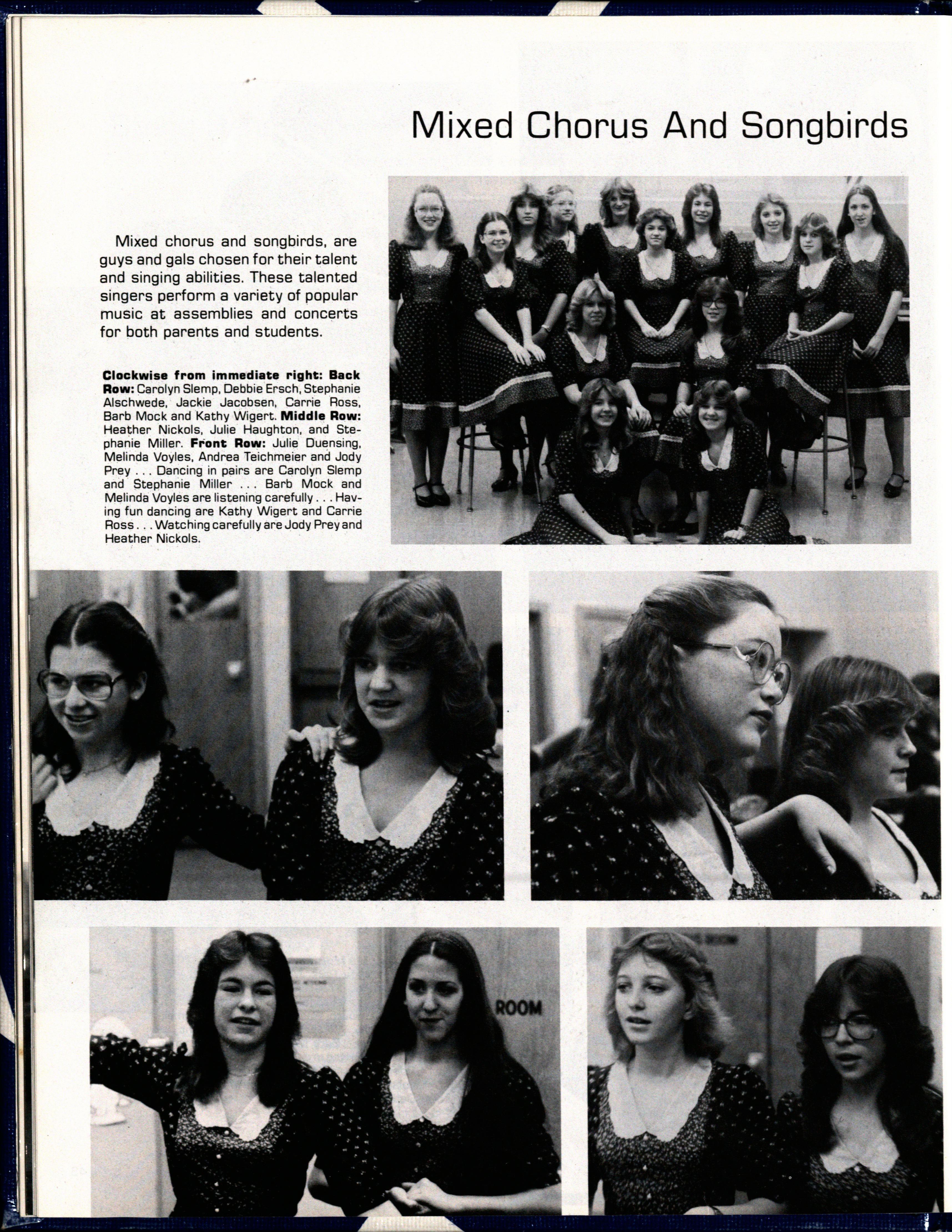 Mixed chorus and songbirds, are guys and gals chosen for their talent and singing abilities. These talented singers perform a variety of popular music at assemblies and concerts for path parents and students