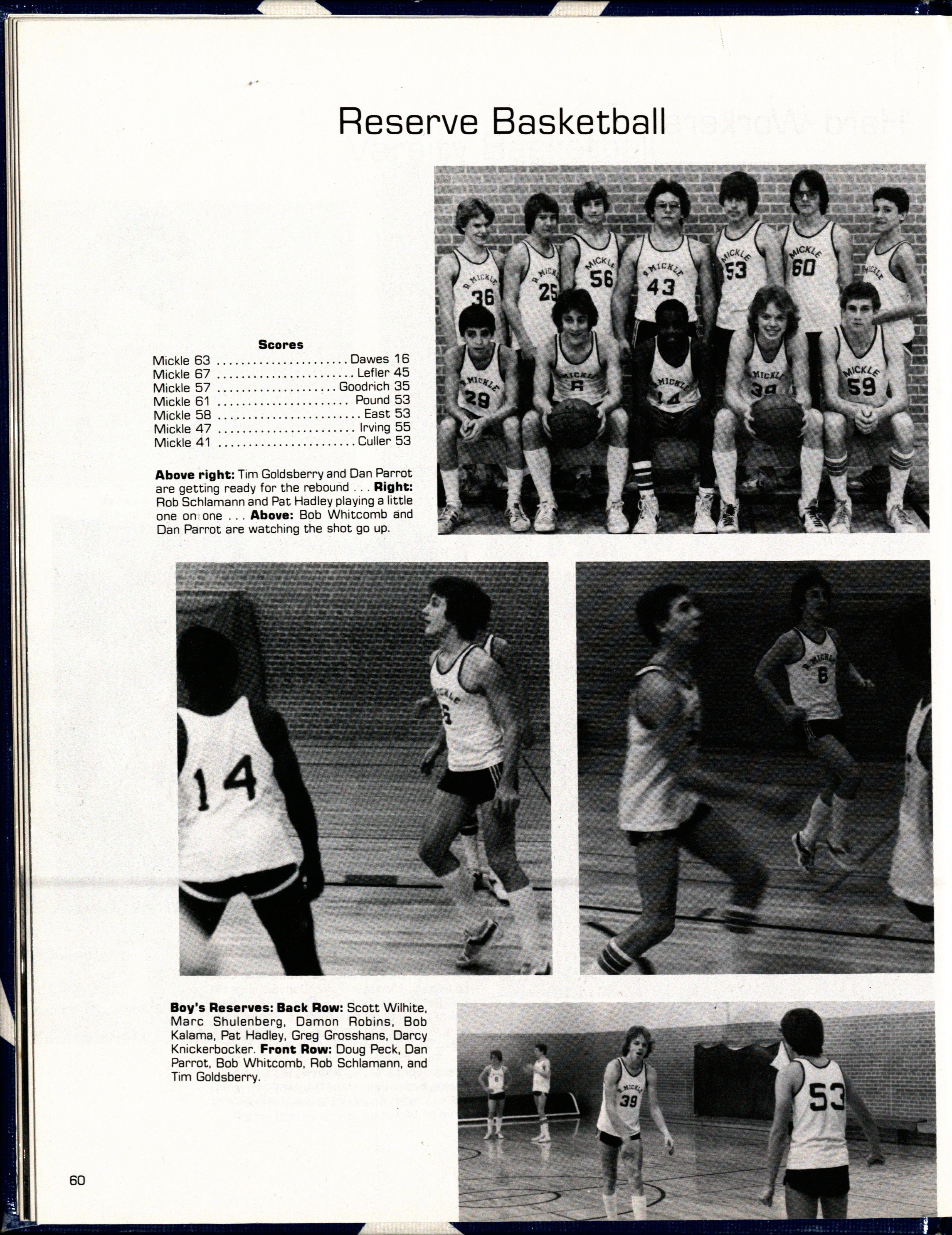 Boy ' s Reserves: Back Row: Scott Wilhite, Marc Shulenberg , Damon Robins, Bob Kalama, Pat Hadley, Greg Grosshans, Darcy Kn ic kerbocker Front Row: Doug Peck , Dan Parrot, Bob Wh i tcomb , Rob Schlamann , and Tim Goldsberry