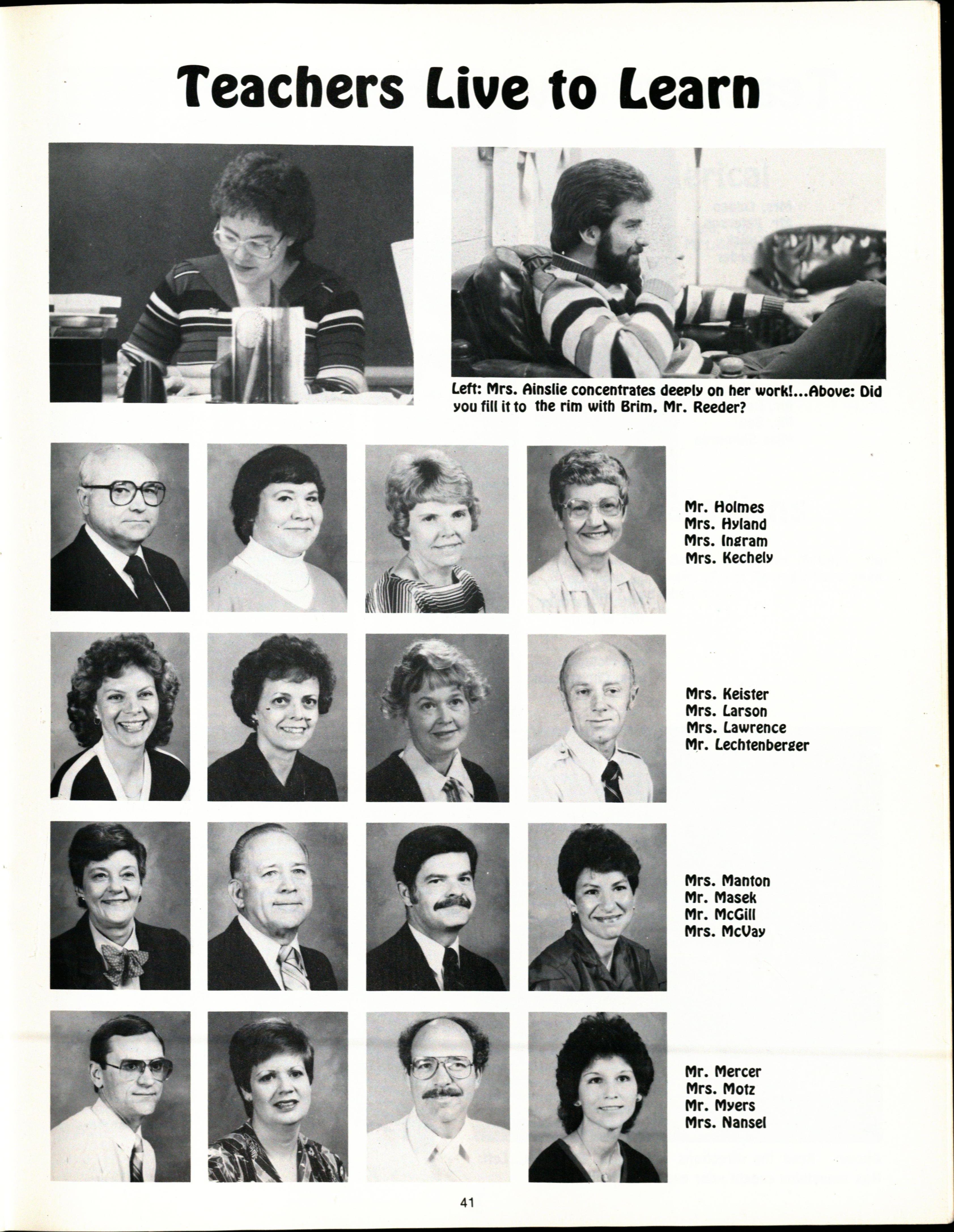 Clockwise from immediate below: Mrs. Bateman azets into window shoPPine ... The ideal teacher·s Pet Mrs. lneram eives us her diseusted look "Who called my name?.. asks Miss Toms ls somethine wrone Mrs. Larson? ... Mr. MYers is eivine Mrs. HYiand tips on how to become a Perfect aneel.