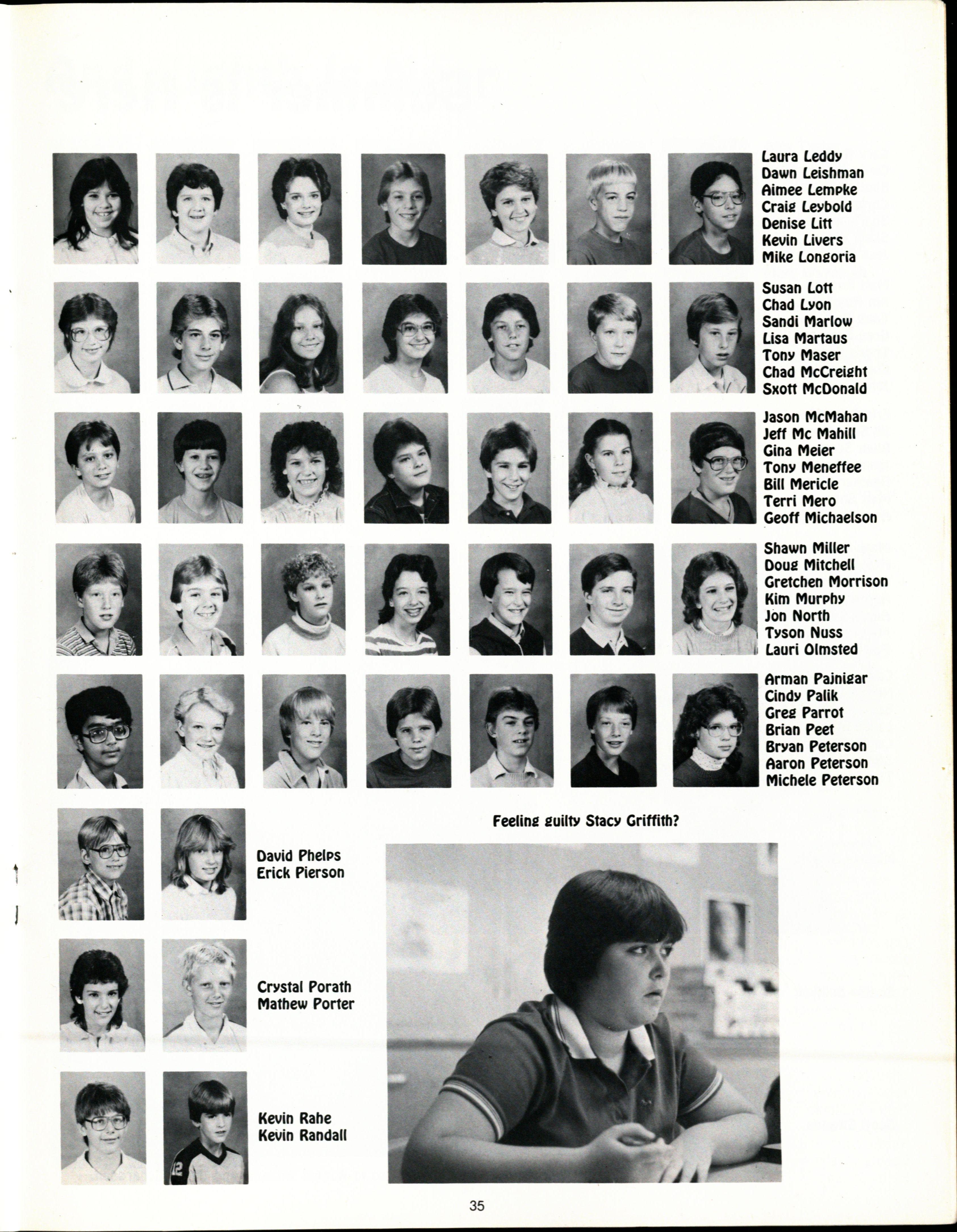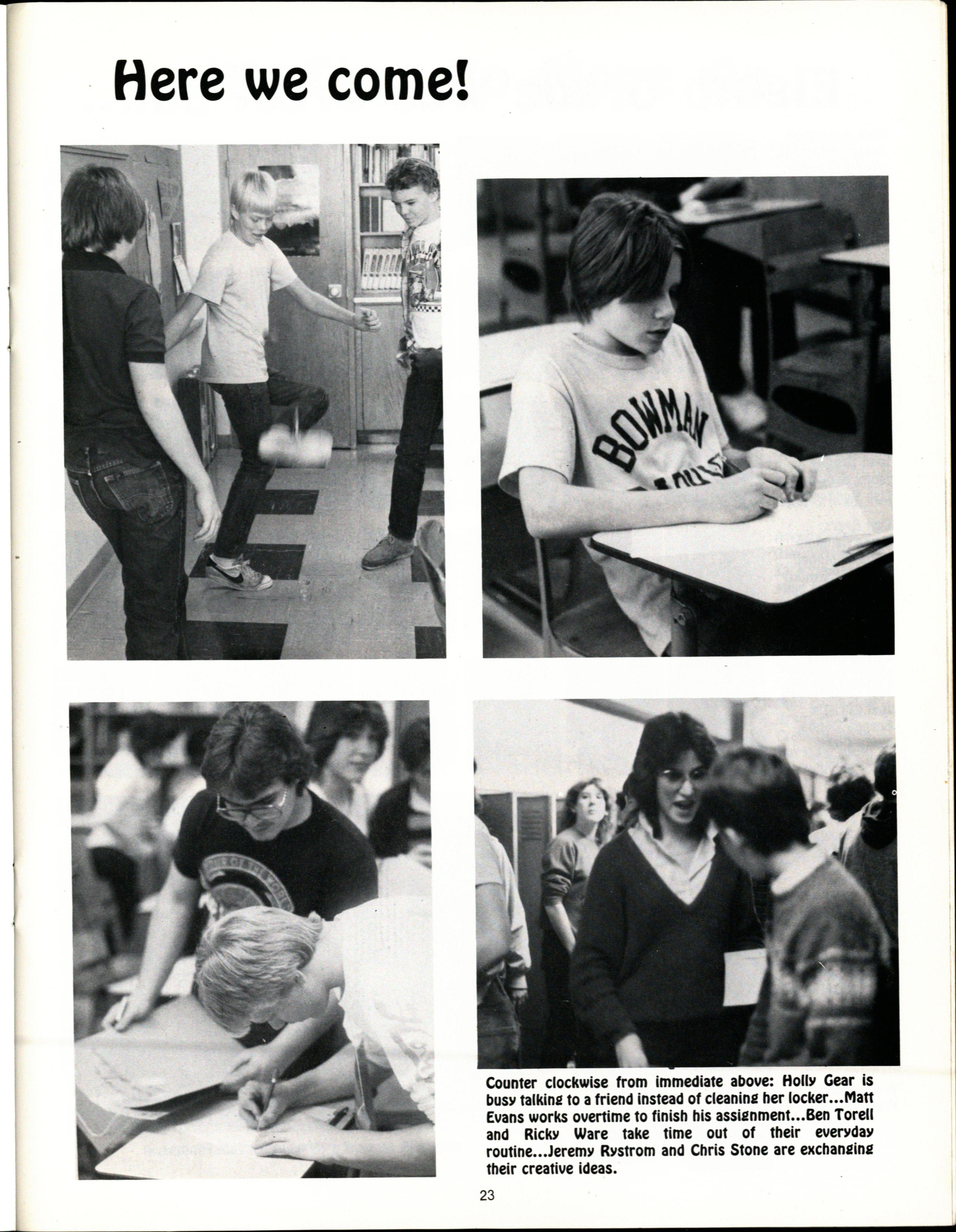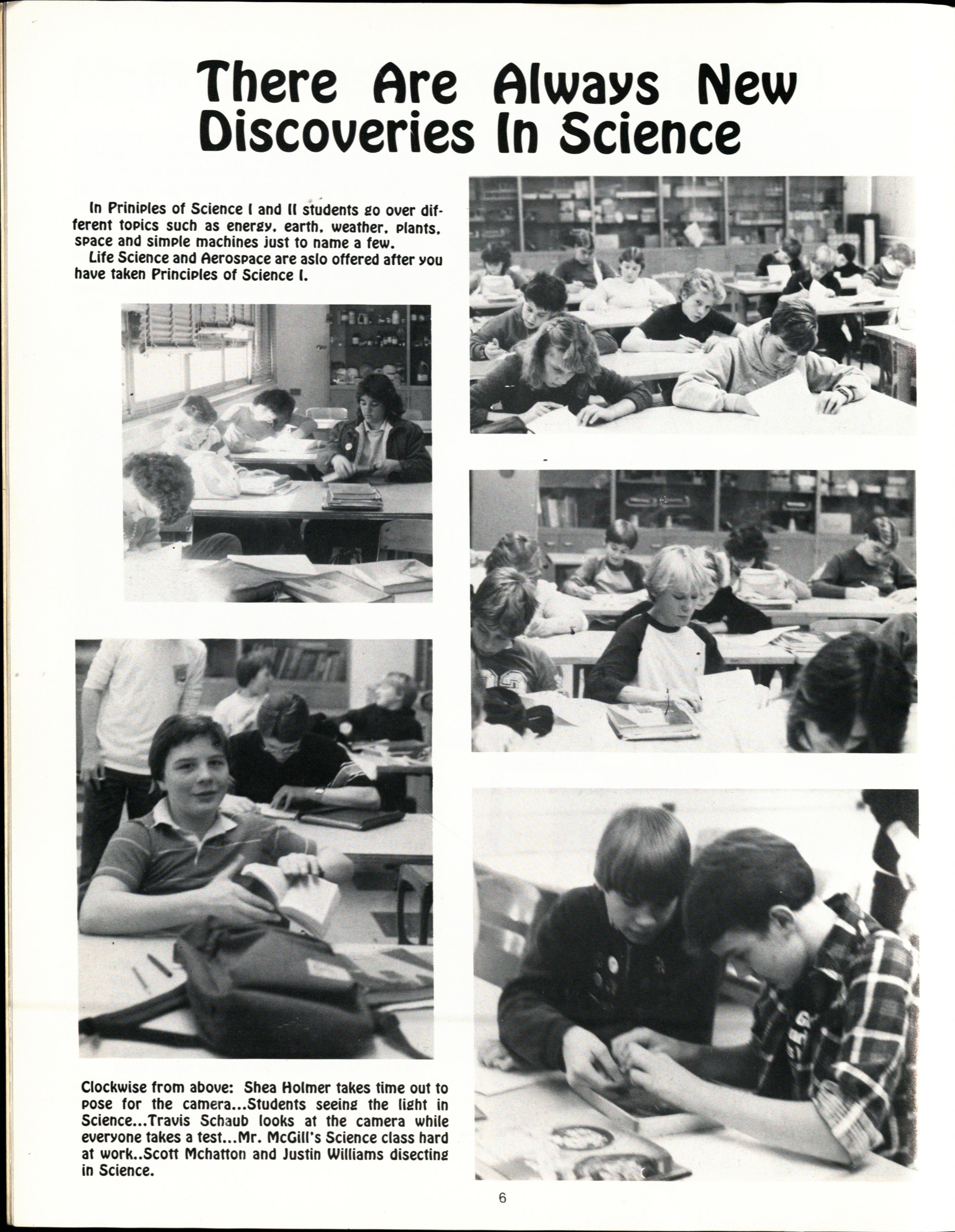Clockwise From Immediate Left: Hueh Lawson and Cory Pierce heavily concentatine on their work Oave Hunt. Amy Hoffmeyer. Michelle Gocke. and Lance Fryrear remember don·t hunt and Peeck Bill Taylor and Ken Willams say. Atari. watch-out Traci Anania invents a new way to Proaram Mrs. Lawerence·s imitation of the Supremes.