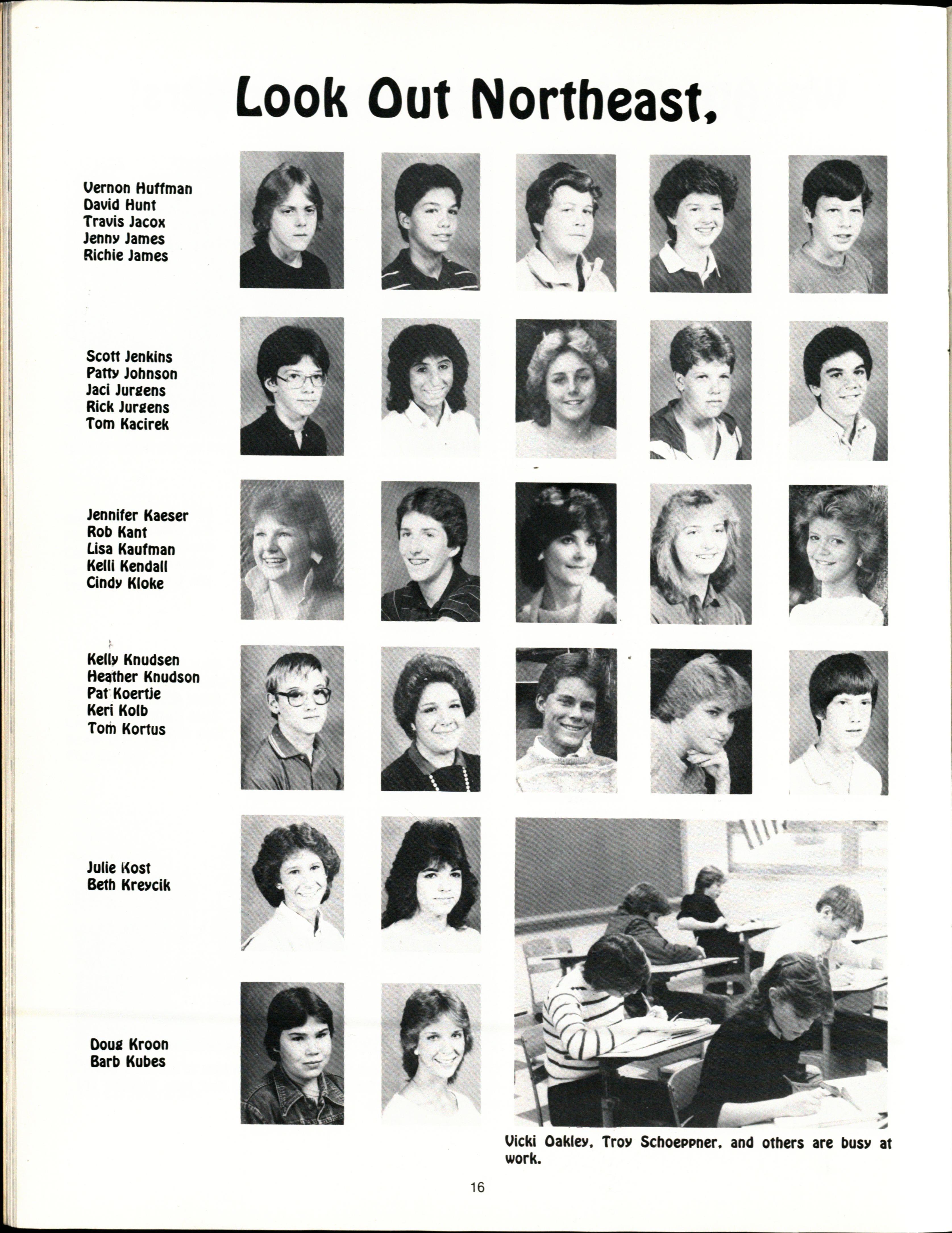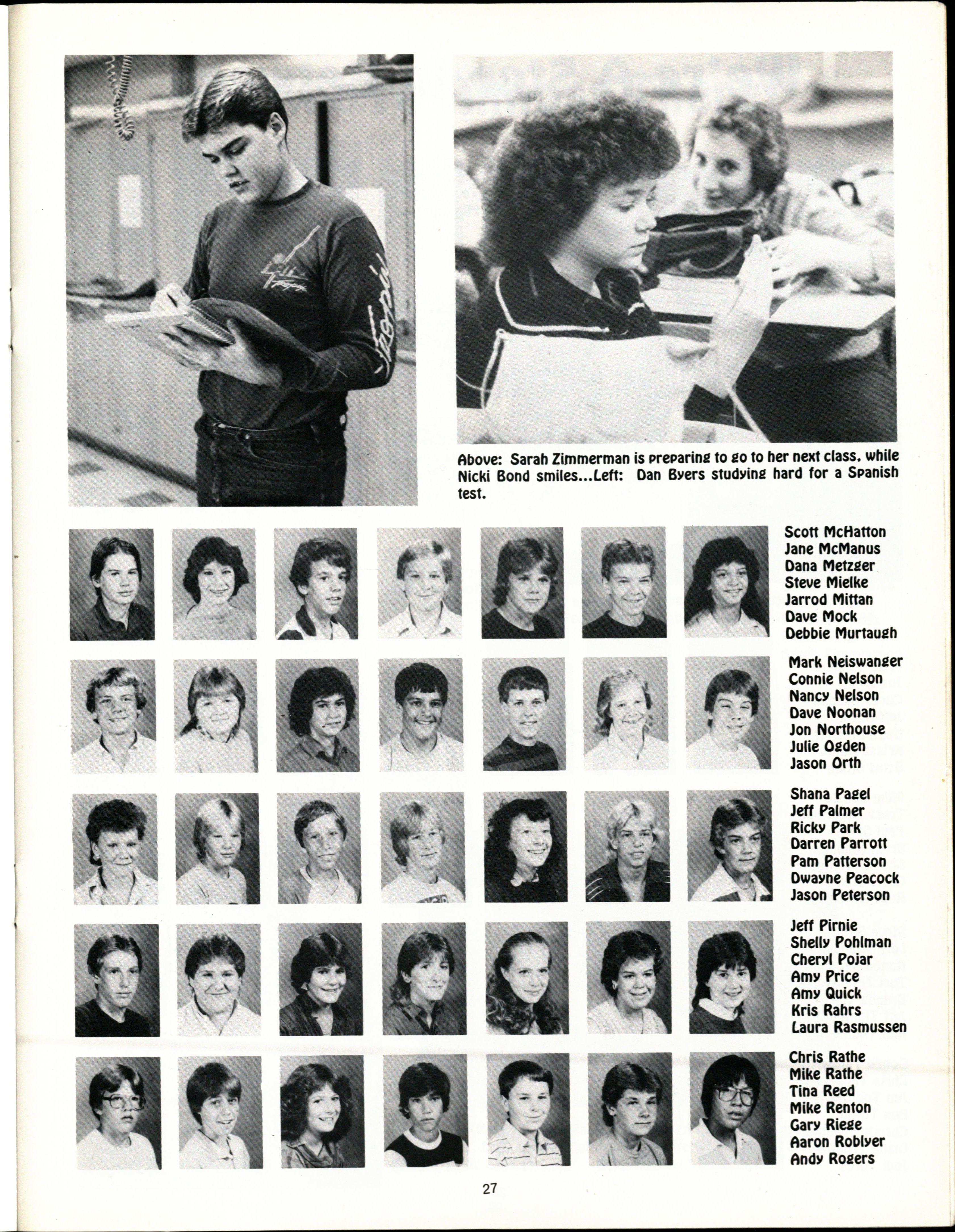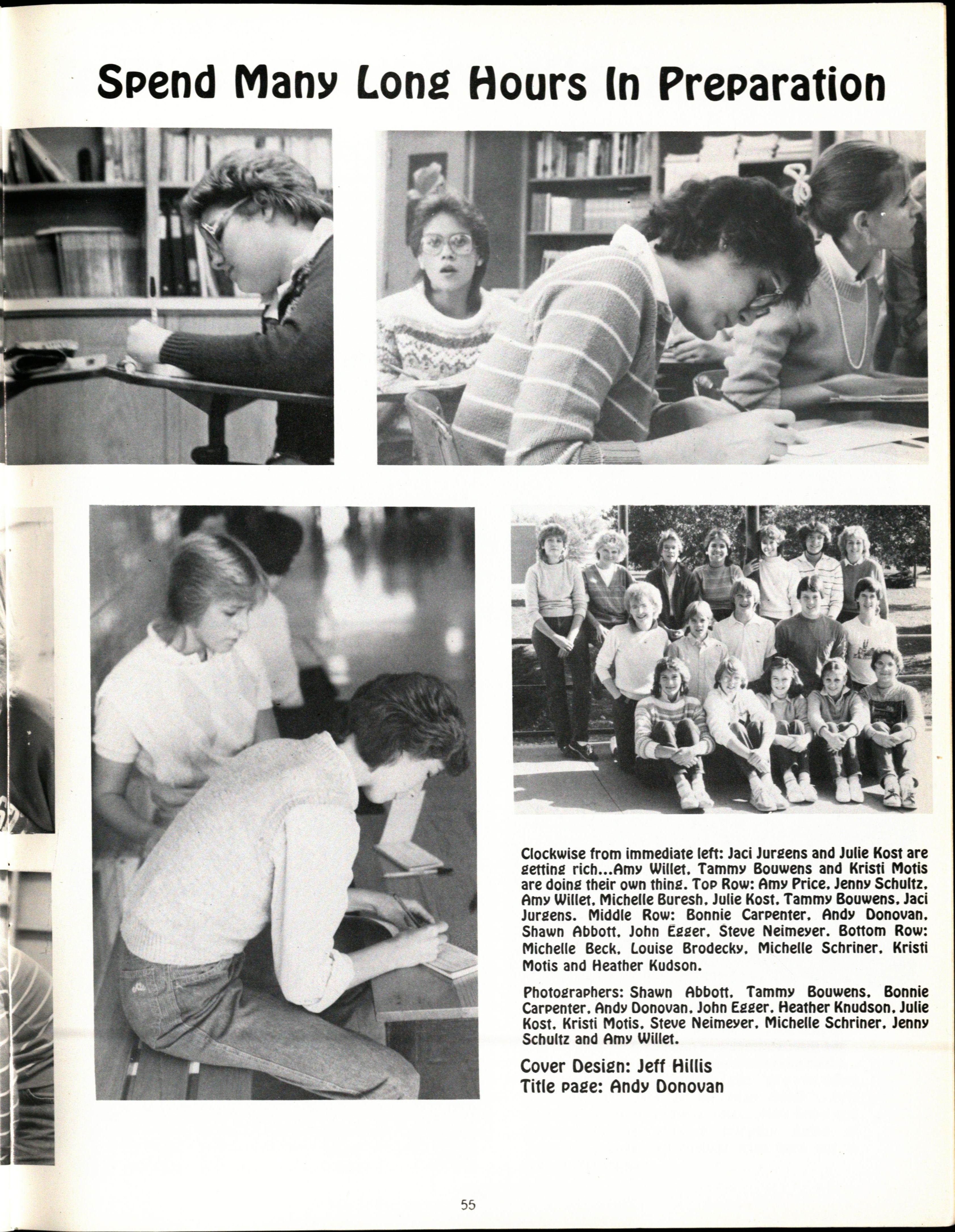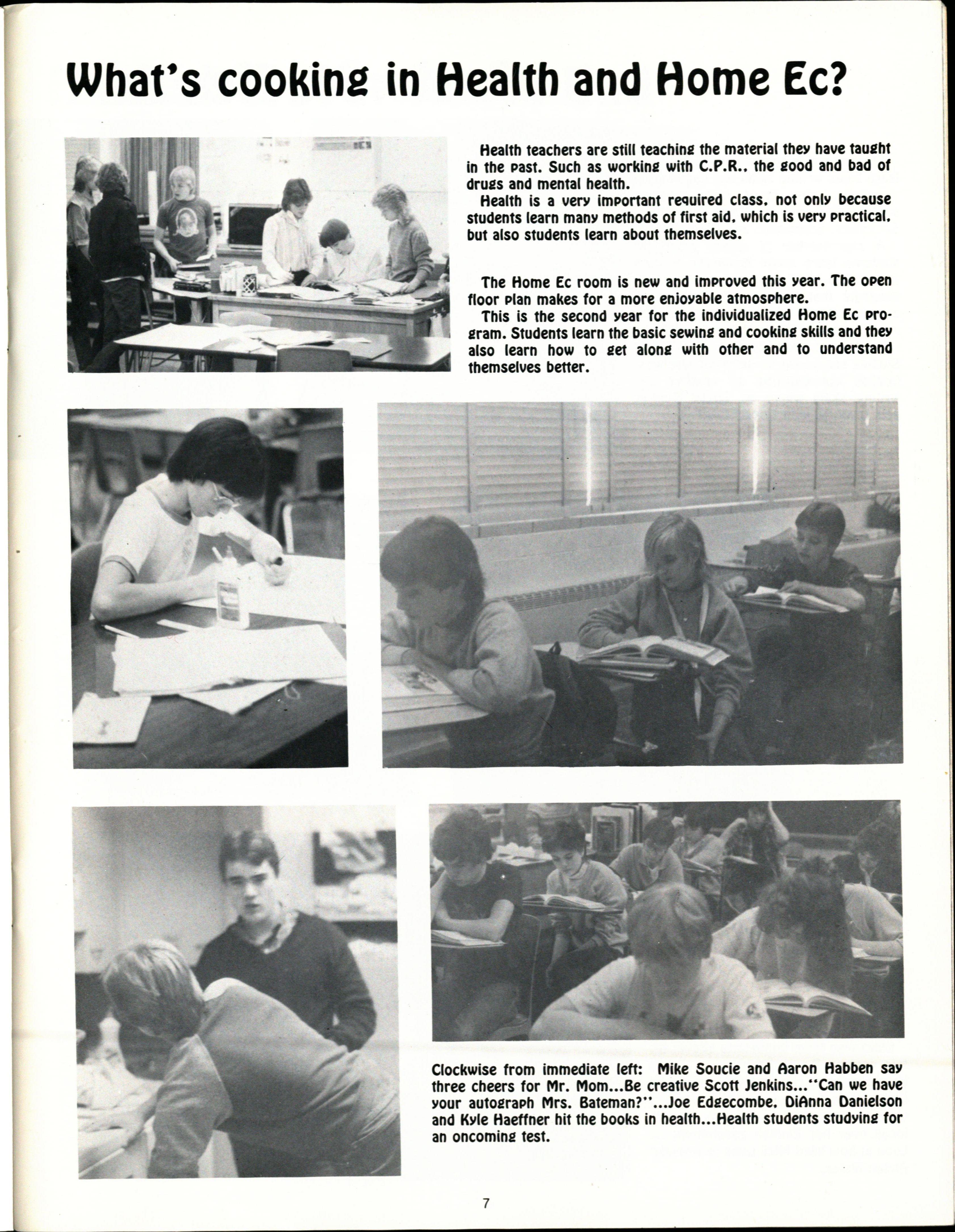Clockwise from immediate left: Mike Soucie and Aaron Habben say three cheers for Mr. Mom Be creative Scott Jenkins ... --can we have your autoaraPh Mrs. Bateman?··... Joe Edaecombe. OiAnna Danielson and KYie Haeffner hit the books in health Health students studYina for an oncomina test.