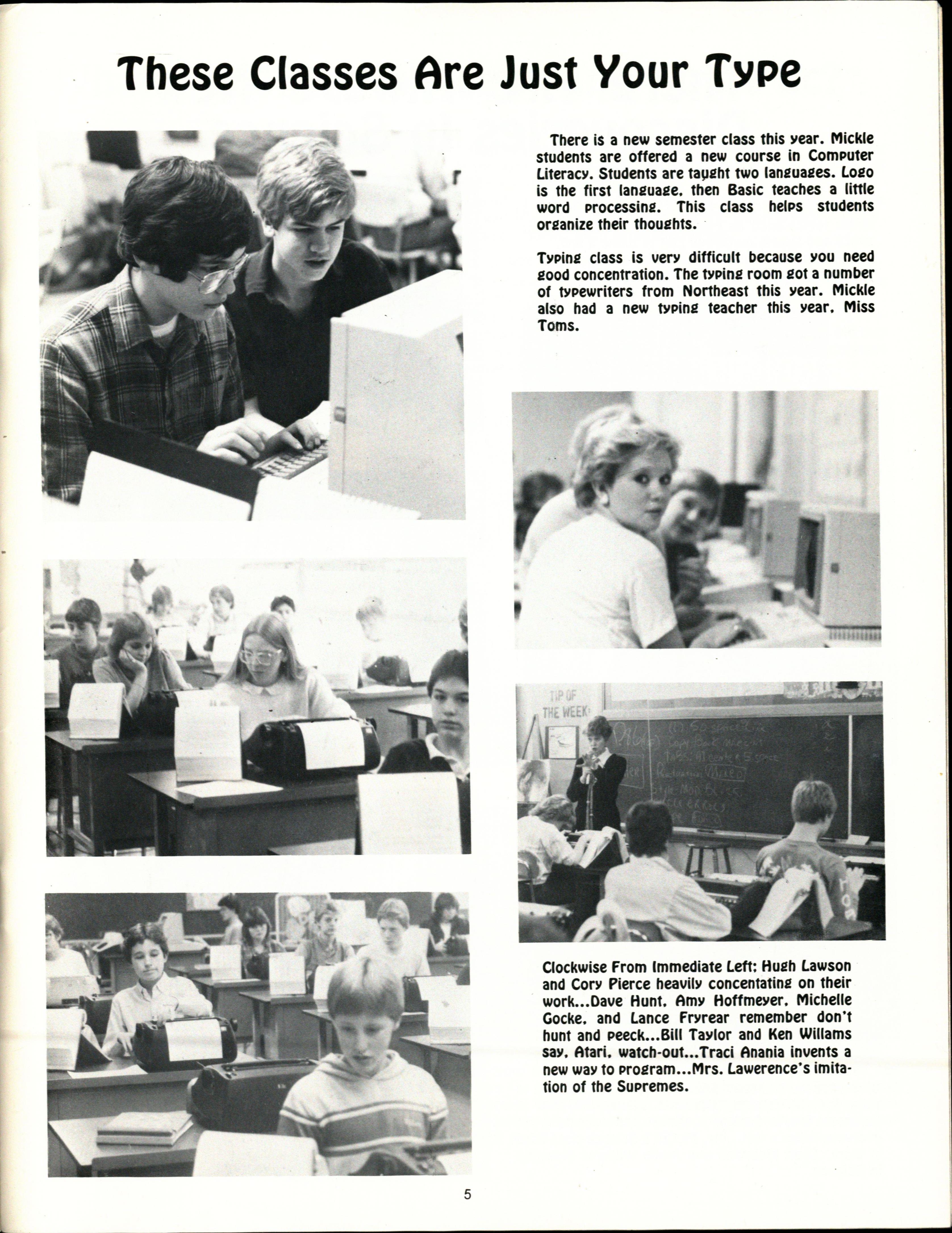 There is a new semester class this year. Mickle students are offered a new course in ComPuter Literacy. Students are tapeht two laneuaees. Loeo is the first laneuaee. then Basic teaches a little word Processine. This class helPs students oreanize their thouehts. •