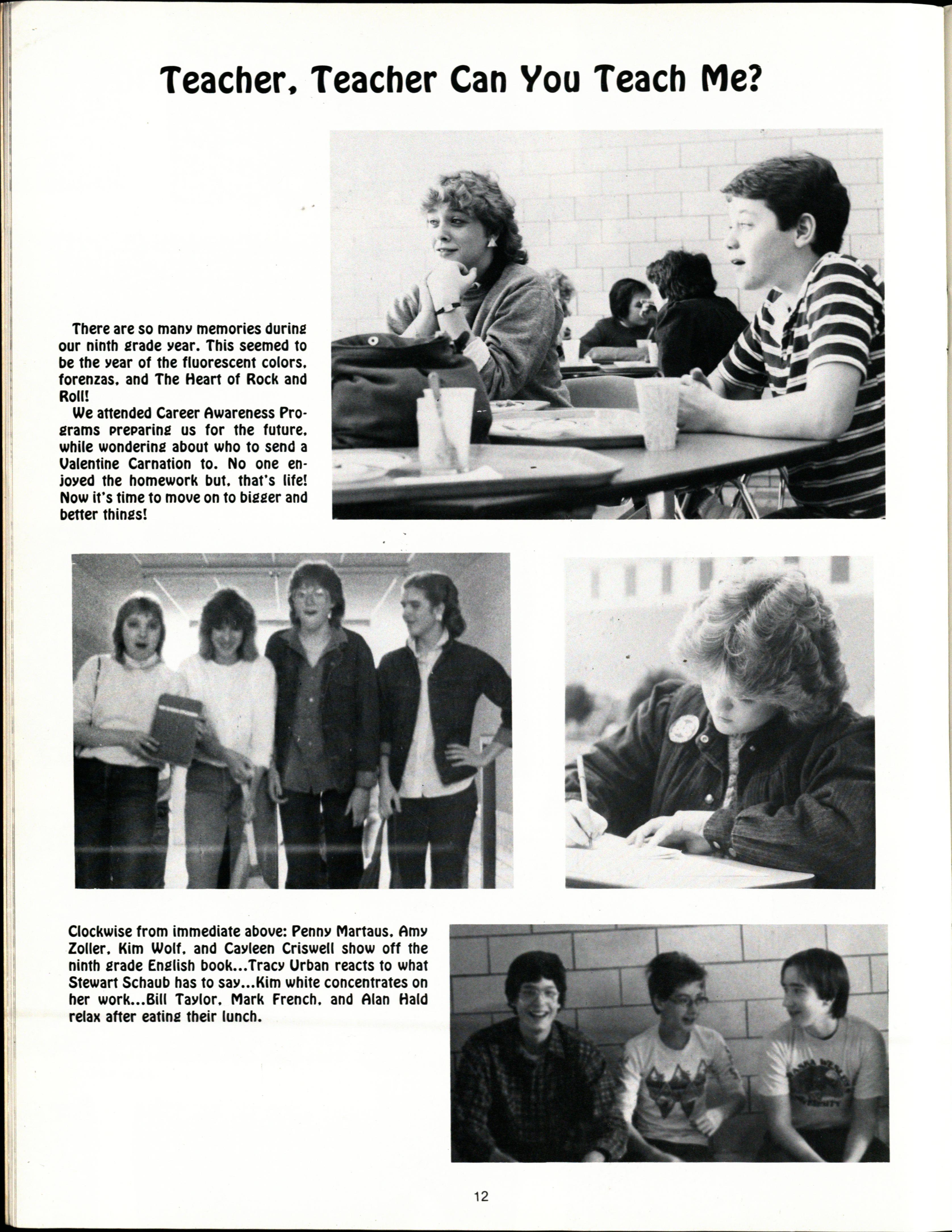 There are so many memories durinB our ninth Brade year. This seemed to be the year of the fluorescent colors. forenzas. and The Heart of Rock and Roll!