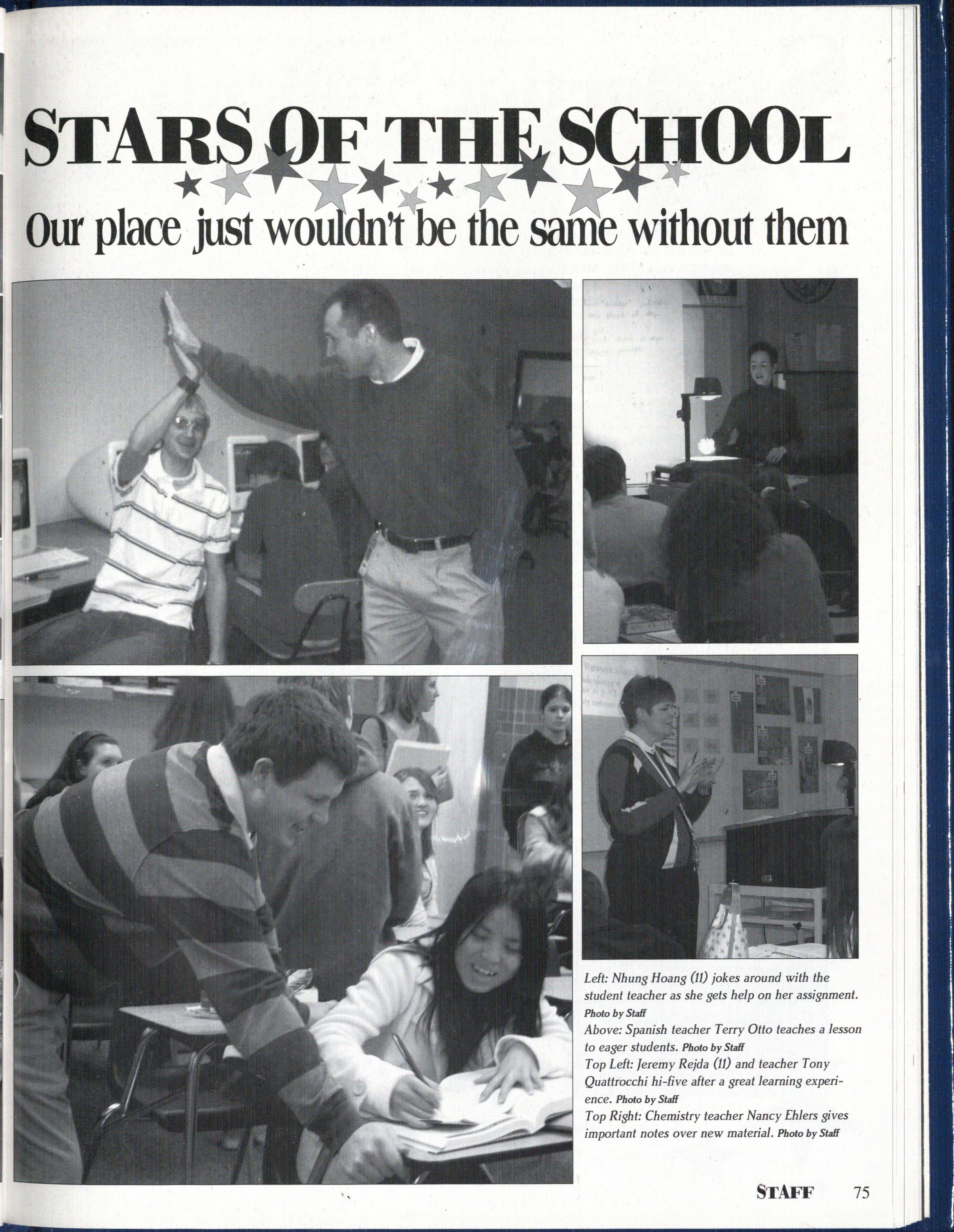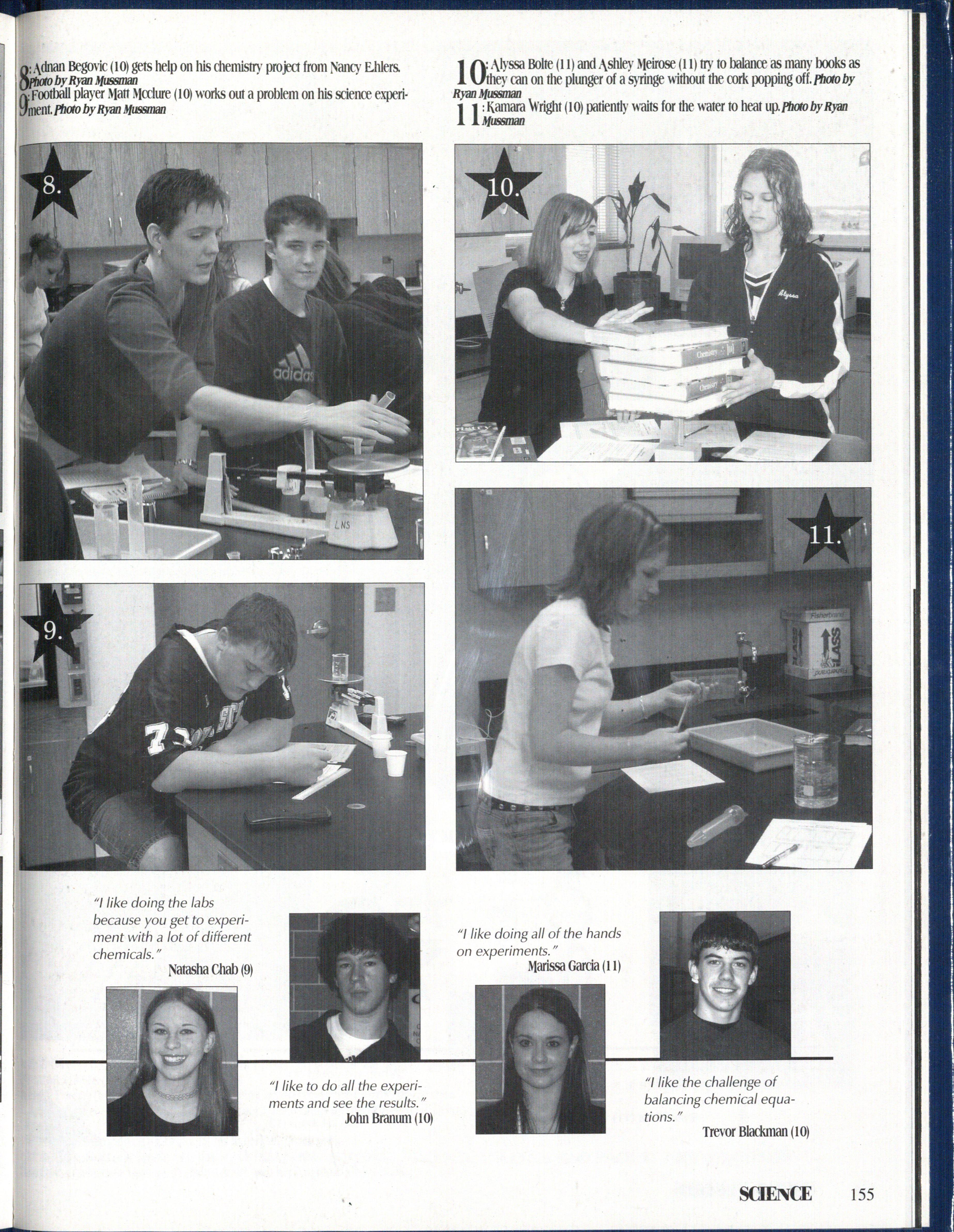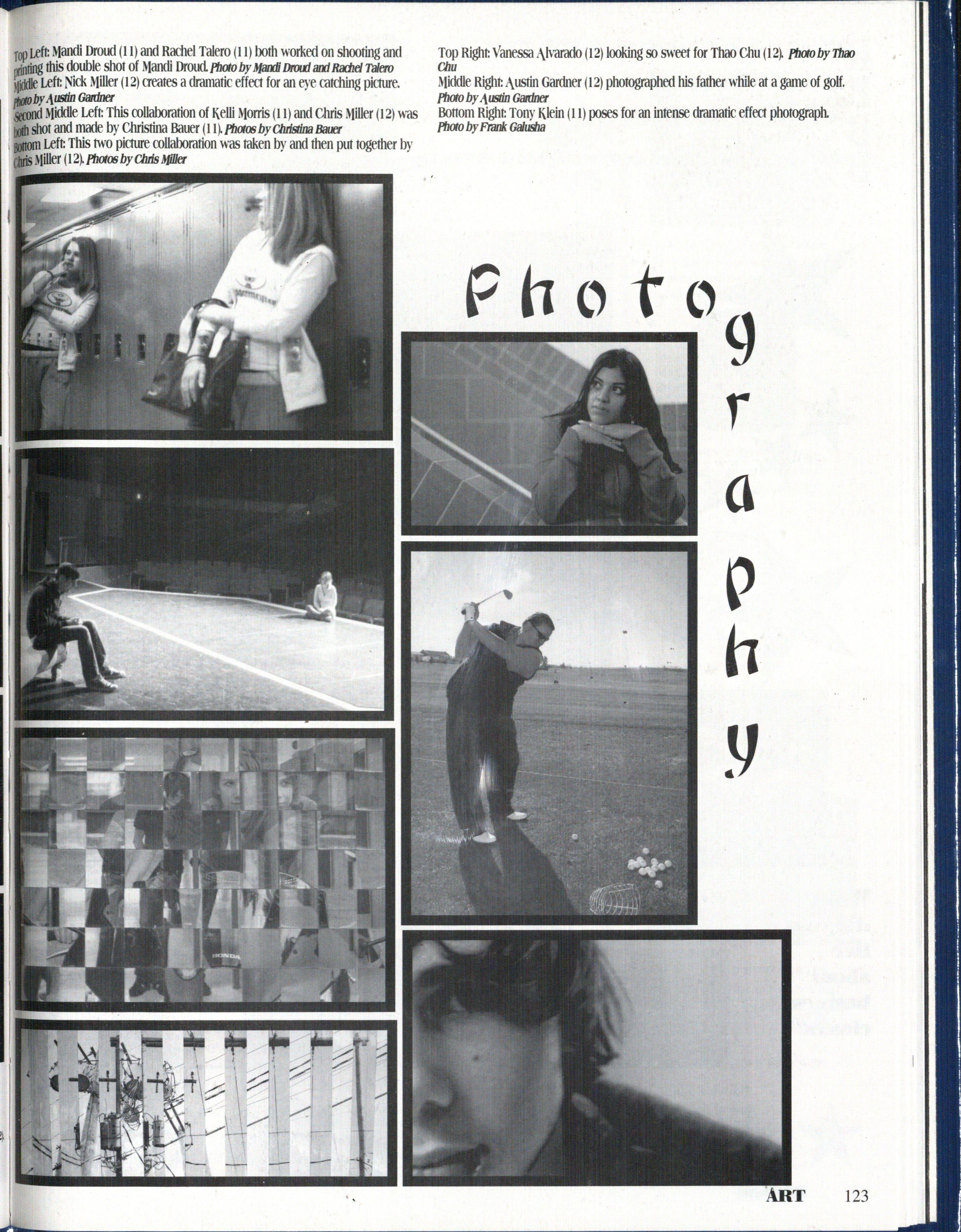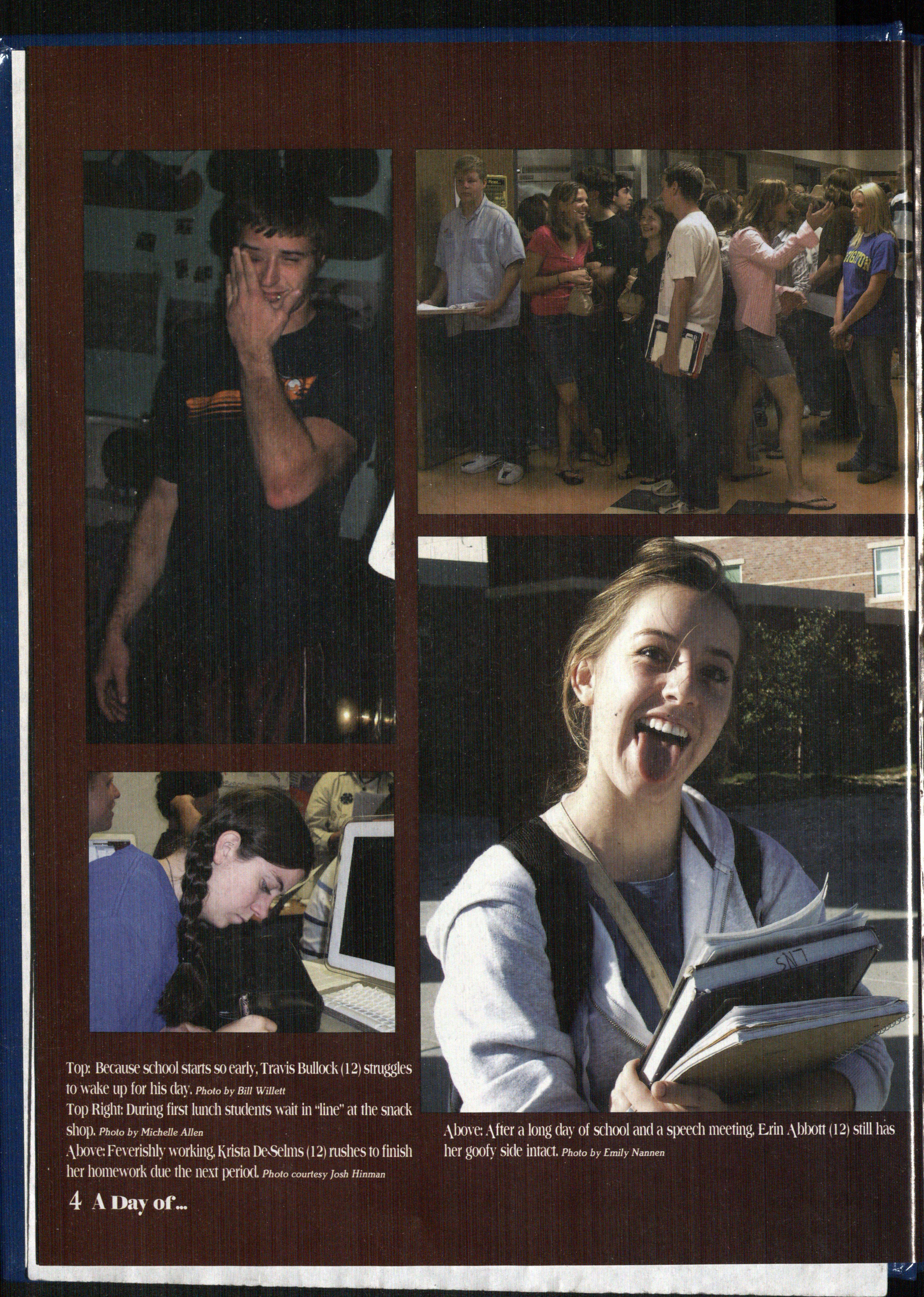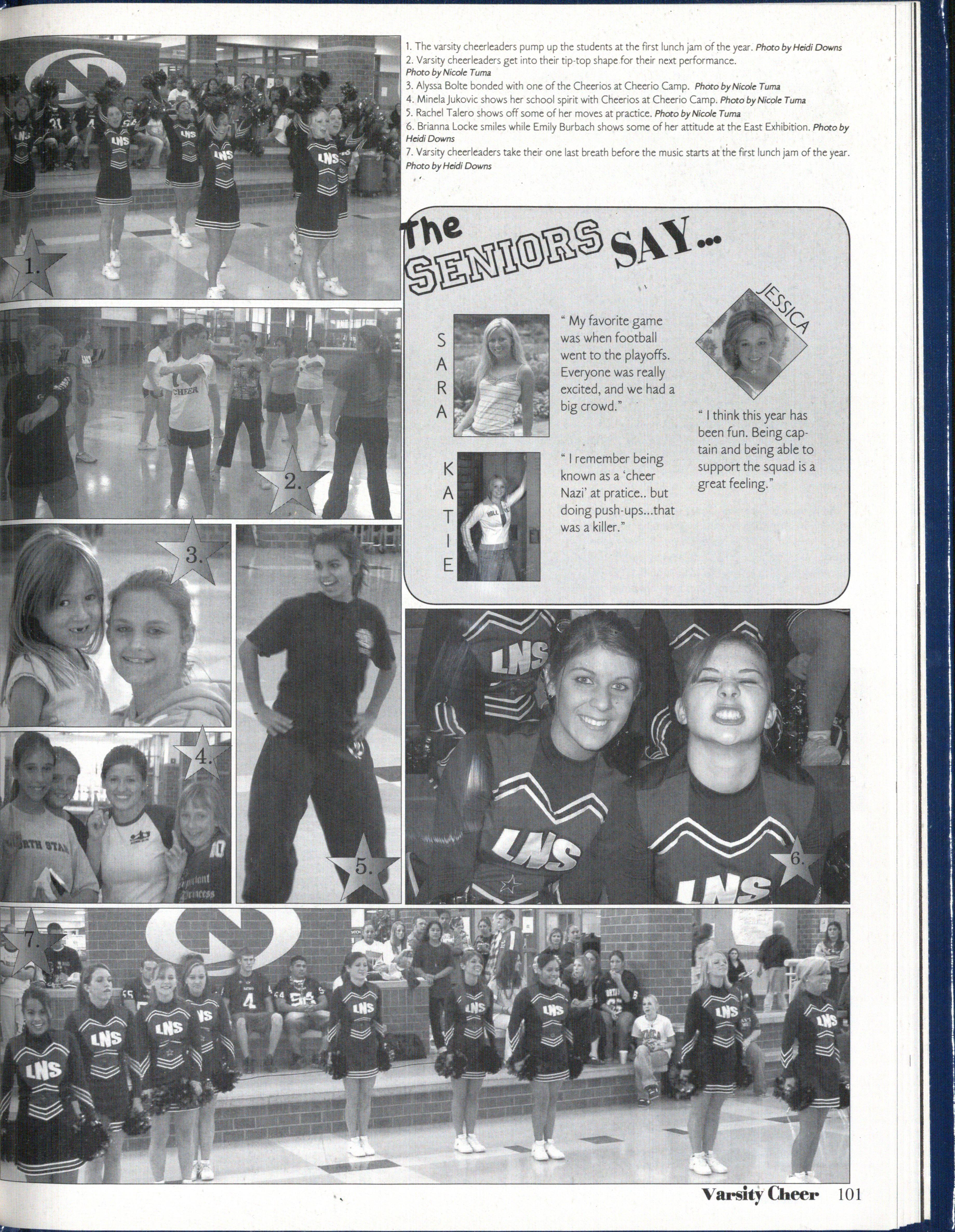 1: Kelsey Crowder (11) peers into the crowd during a home football game. Photo by staff 2: James Ray (11) puts everything else on hold while jammin' to his music. Photo by Nikki Amaya 3: Sarah Marshall (11) stretches out before the theatrical debut of "The Cave Cat." Photo by Emily Nannen