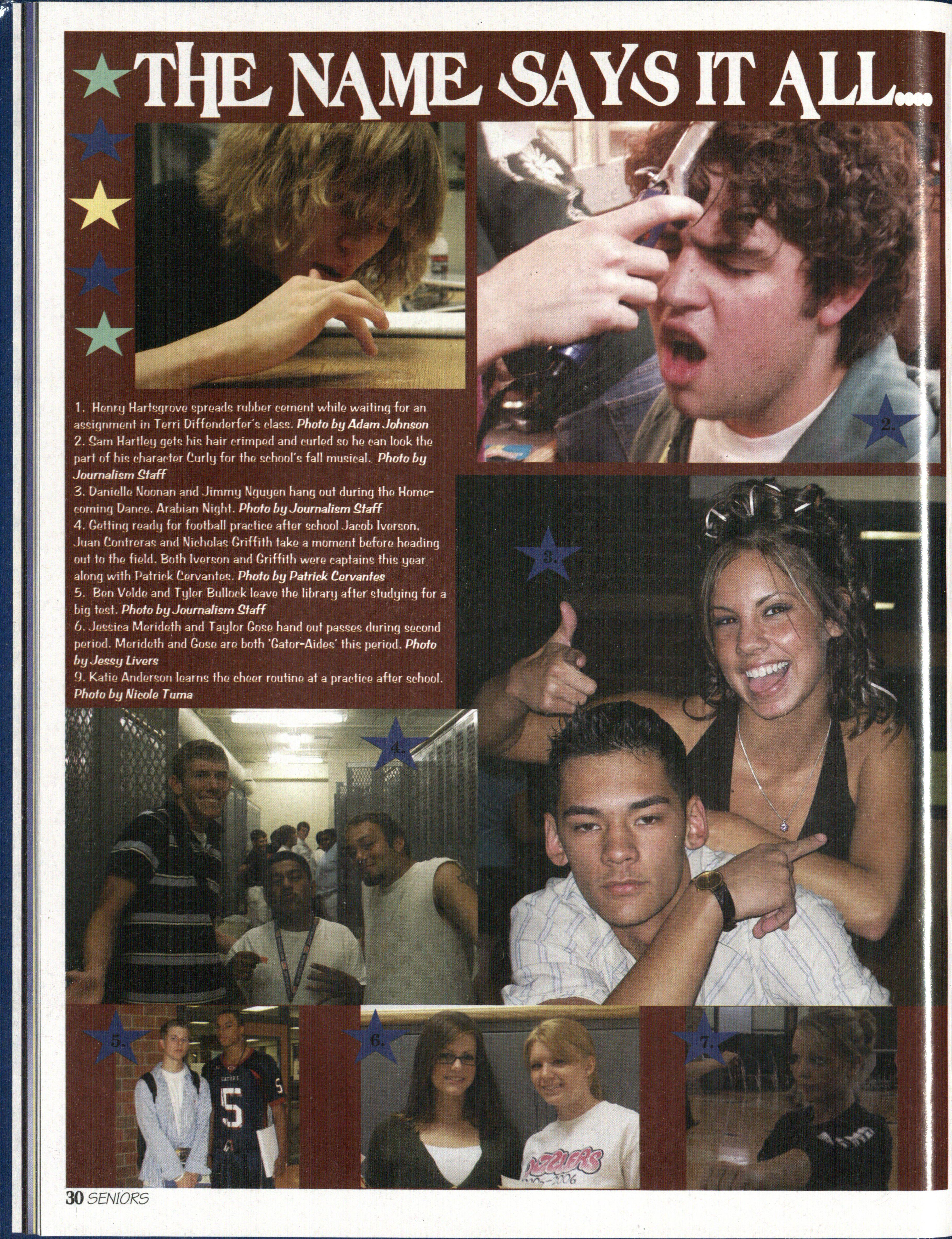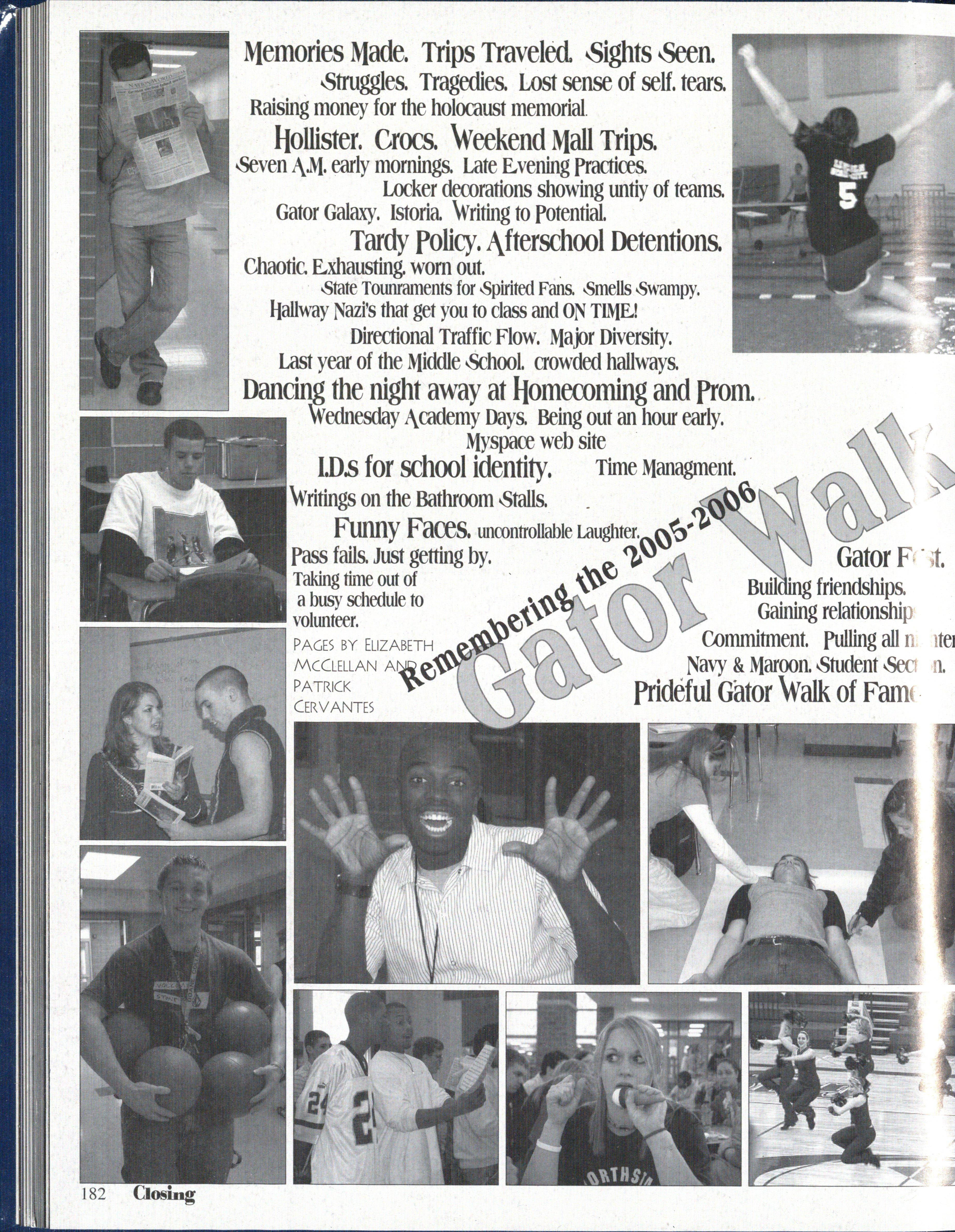 Memories Made. Trips Traveled Sights Seen. '5truggles. Tragedies. Lost sense of seH. tears. Raising money for the holocaust memorial. lfollister. Croes. \veekend Mall Trips. '5even J\M. early mornings. Late Etvening practices. Locker decorations showing untiy of teams. Gator Galaxy. Istoria Writing to Potential. Tardy Policy.1\fterschool Detentions. Chaotic. Etxhausting. worn out. .