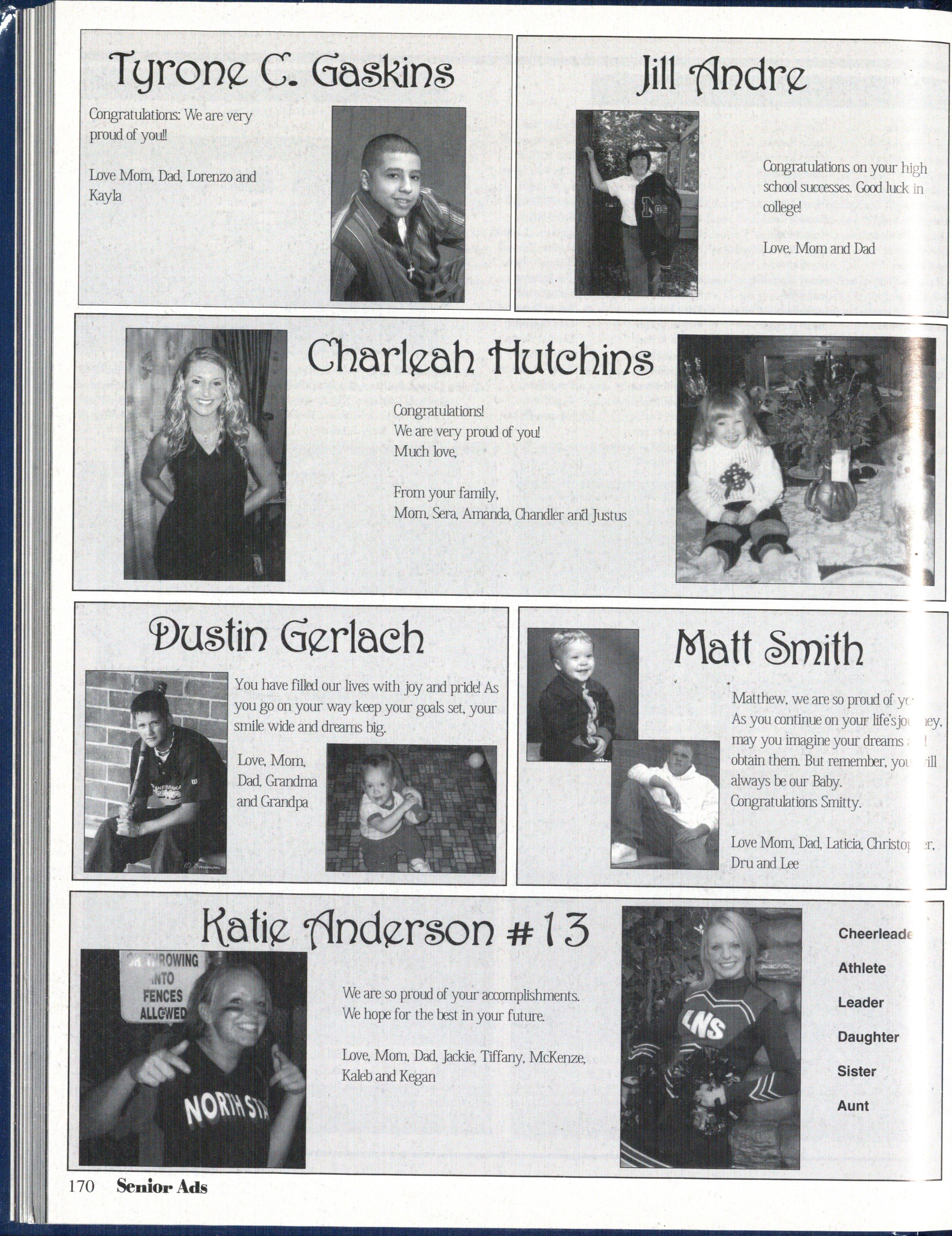 CongratulationsIts hard to relieve it's your senior year. I'm so proud of you and everything you have accomplis1loo, but most of all I'm proud of the person you have l:xmme. I hope you always smile, have fun and dance. I'm sure you won't re CHICKEN and will take risks to find success. love, Mom