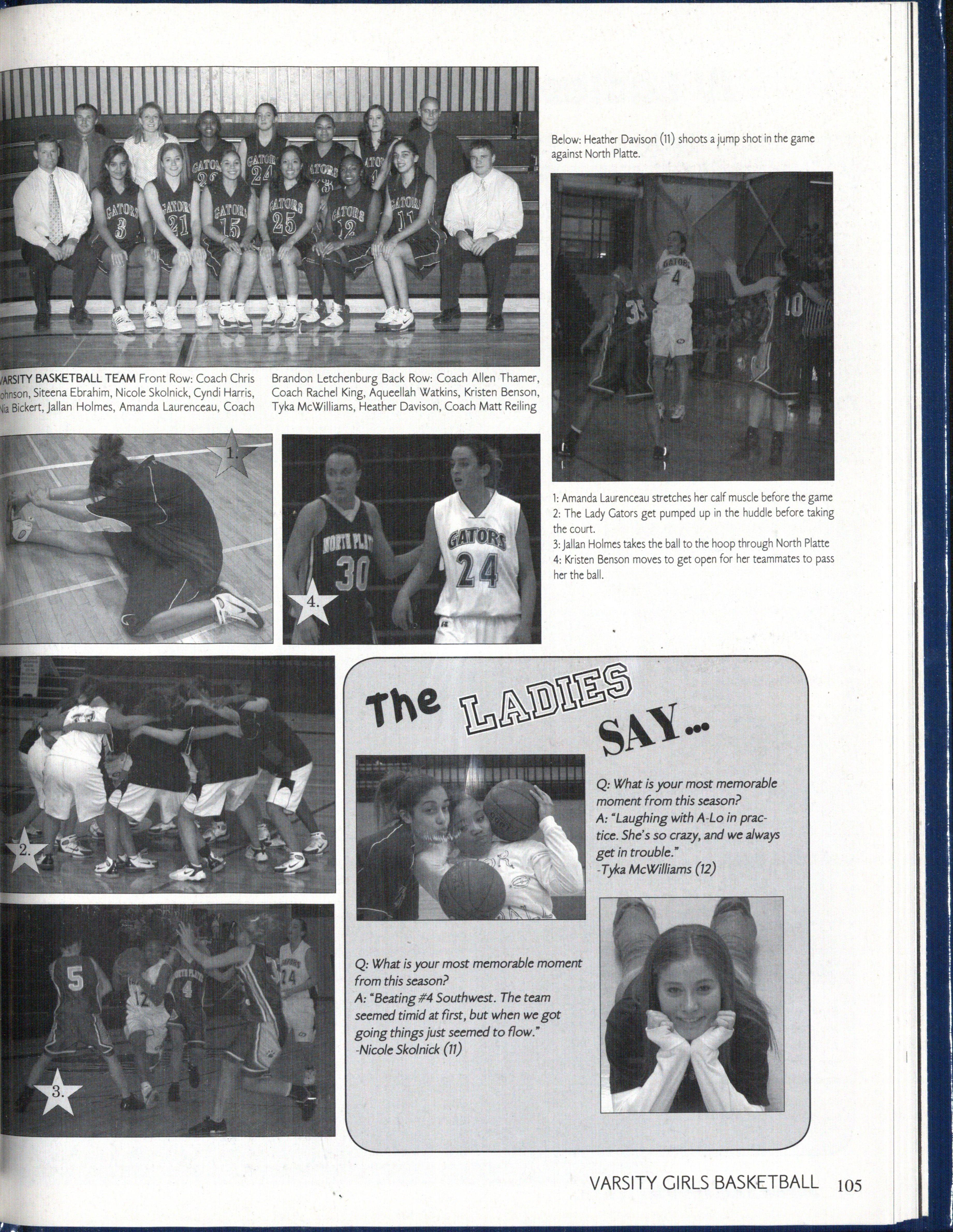 "Beins a part of the Gator girls basketball team has been a real learnins experience and has opened up my horizions for collese basketball."