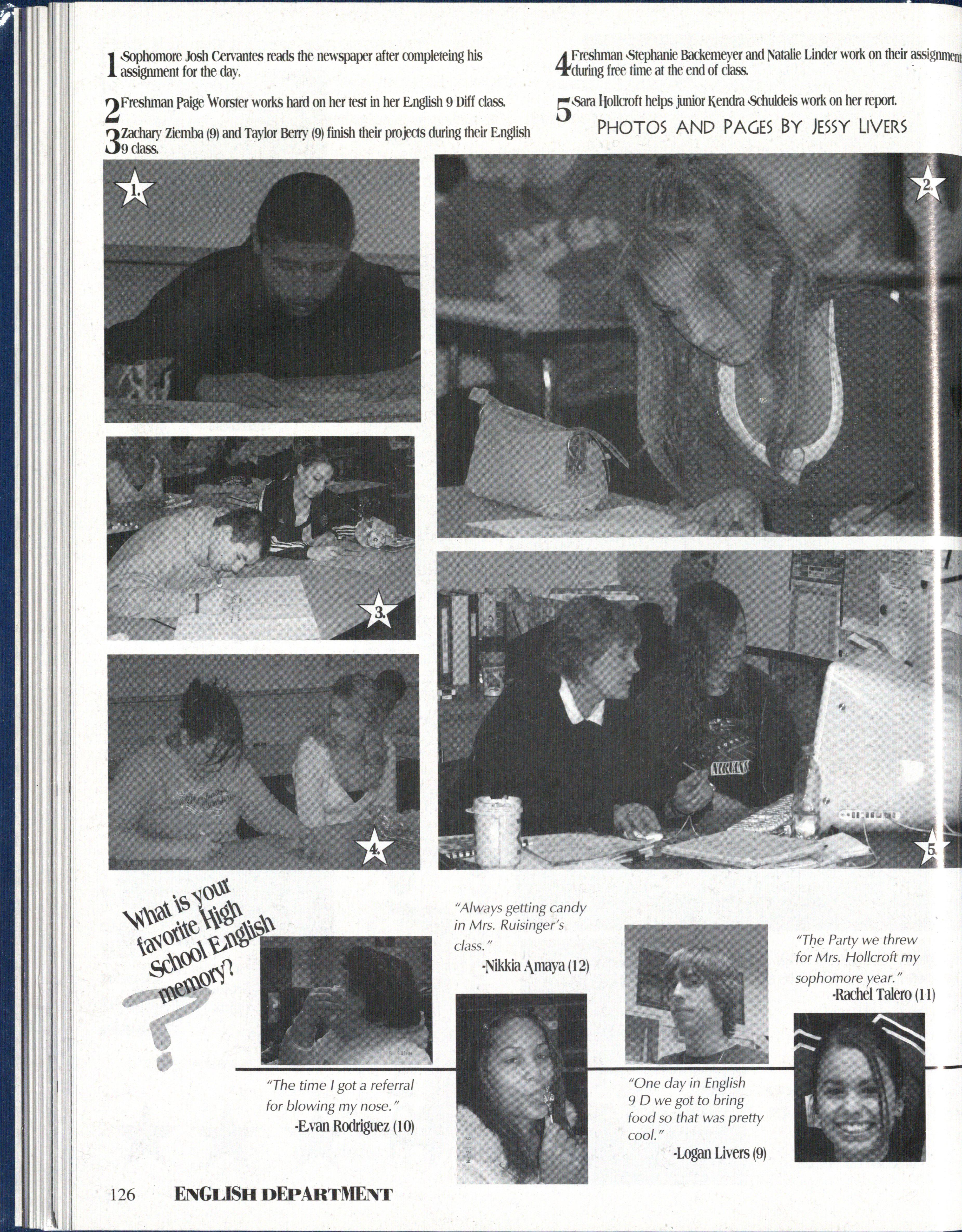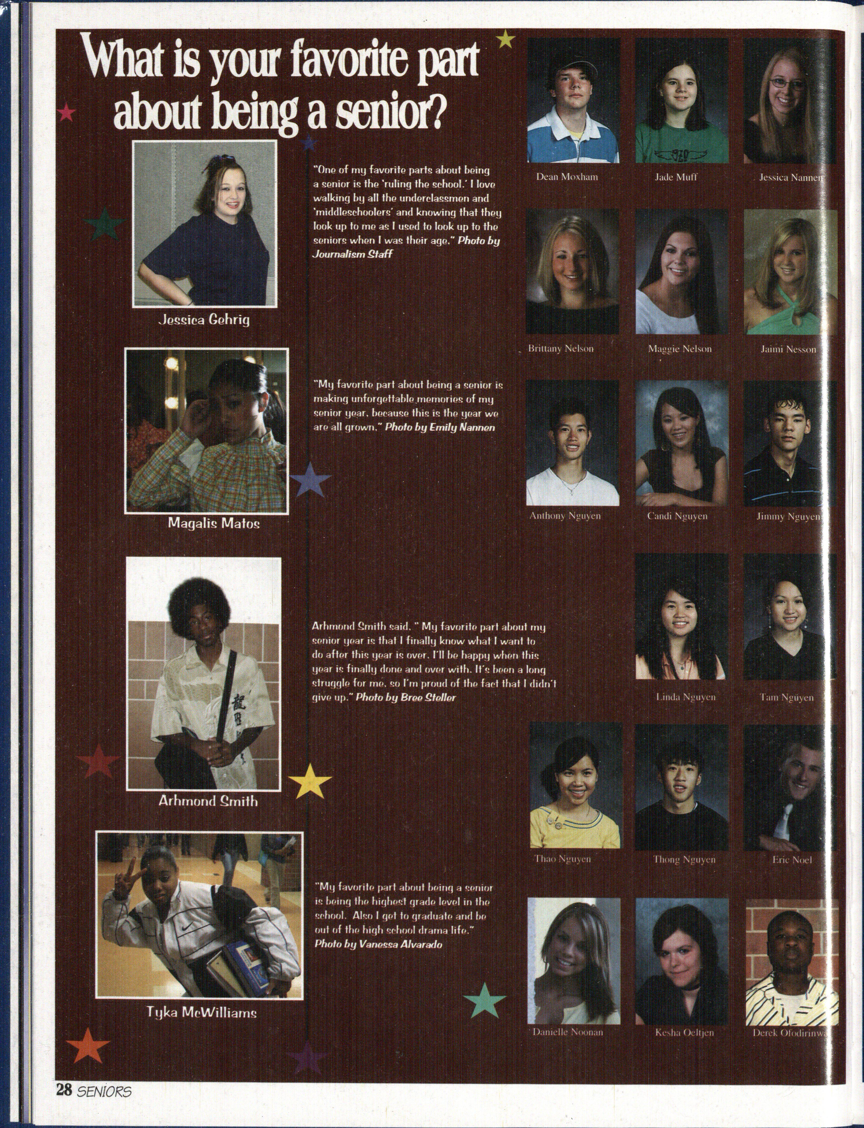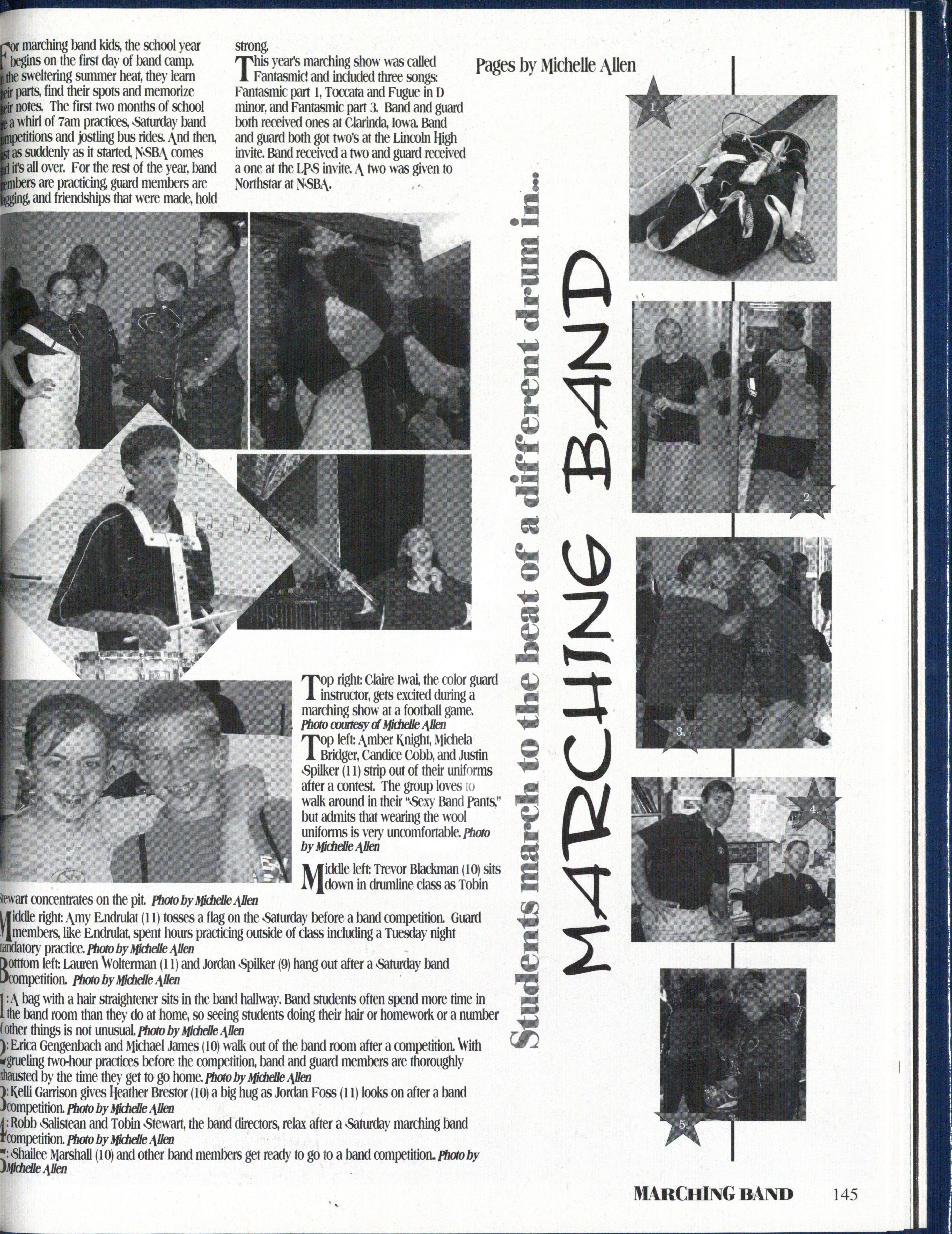 • '5tate Tournaments for '5pirited Fans. '5mells '5wampy. lfallway Nazi's that get you to class and ON TIMF..t! Directional Traffic Flow. Maj)r Diversity. Last year of the Middle &hool. crowded hallways. Dancing the night away at lfomecoming and prom.