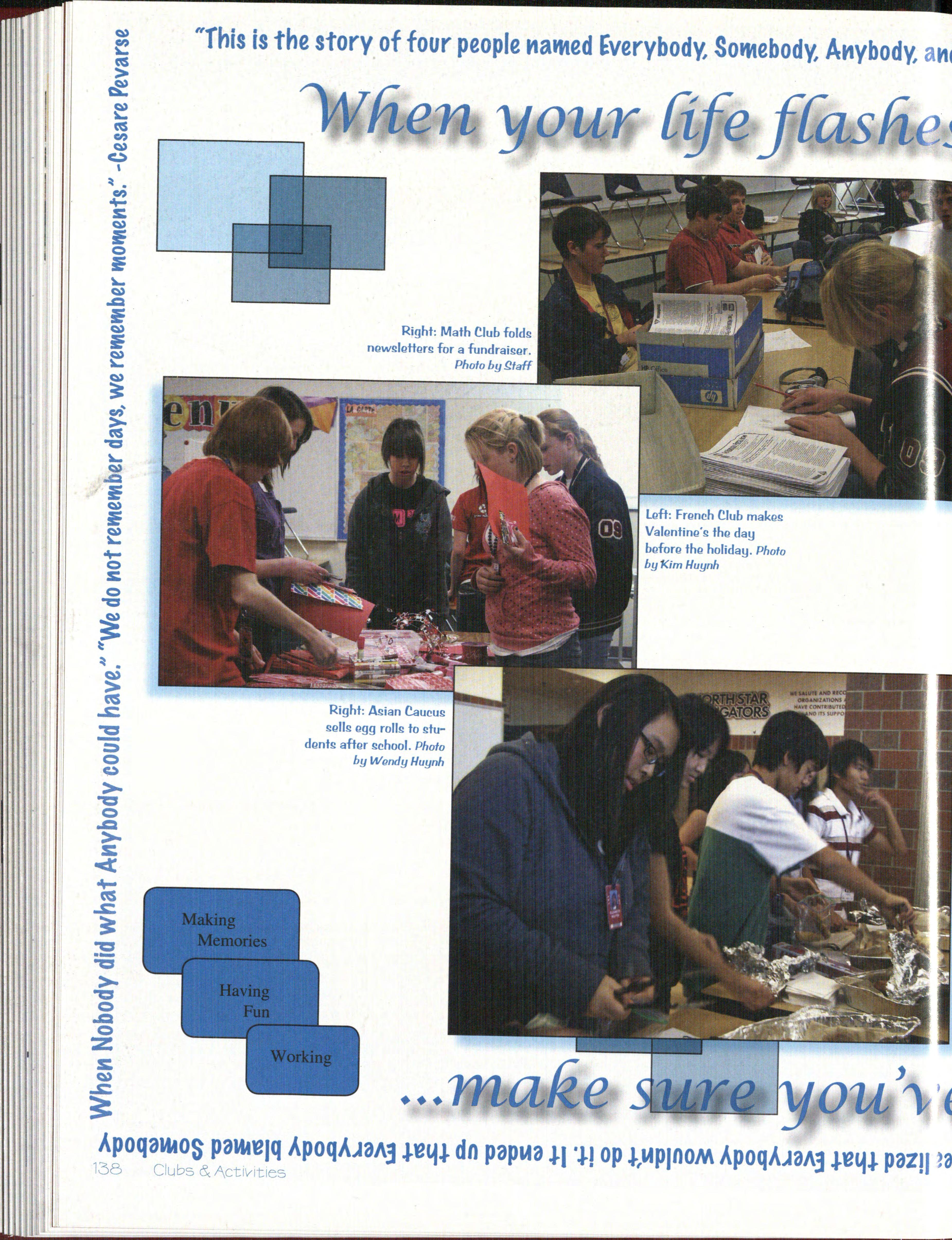 The 2007-2008 school year has quickly flo wn by. The theme of the yearbook was "W hat do you see Beyond the first glance?" Kri st en Benson and Kim Huynh took on the tas k of designing the cover The cover contains ho t foil, spot color, and 4-color. The Walsw ort h