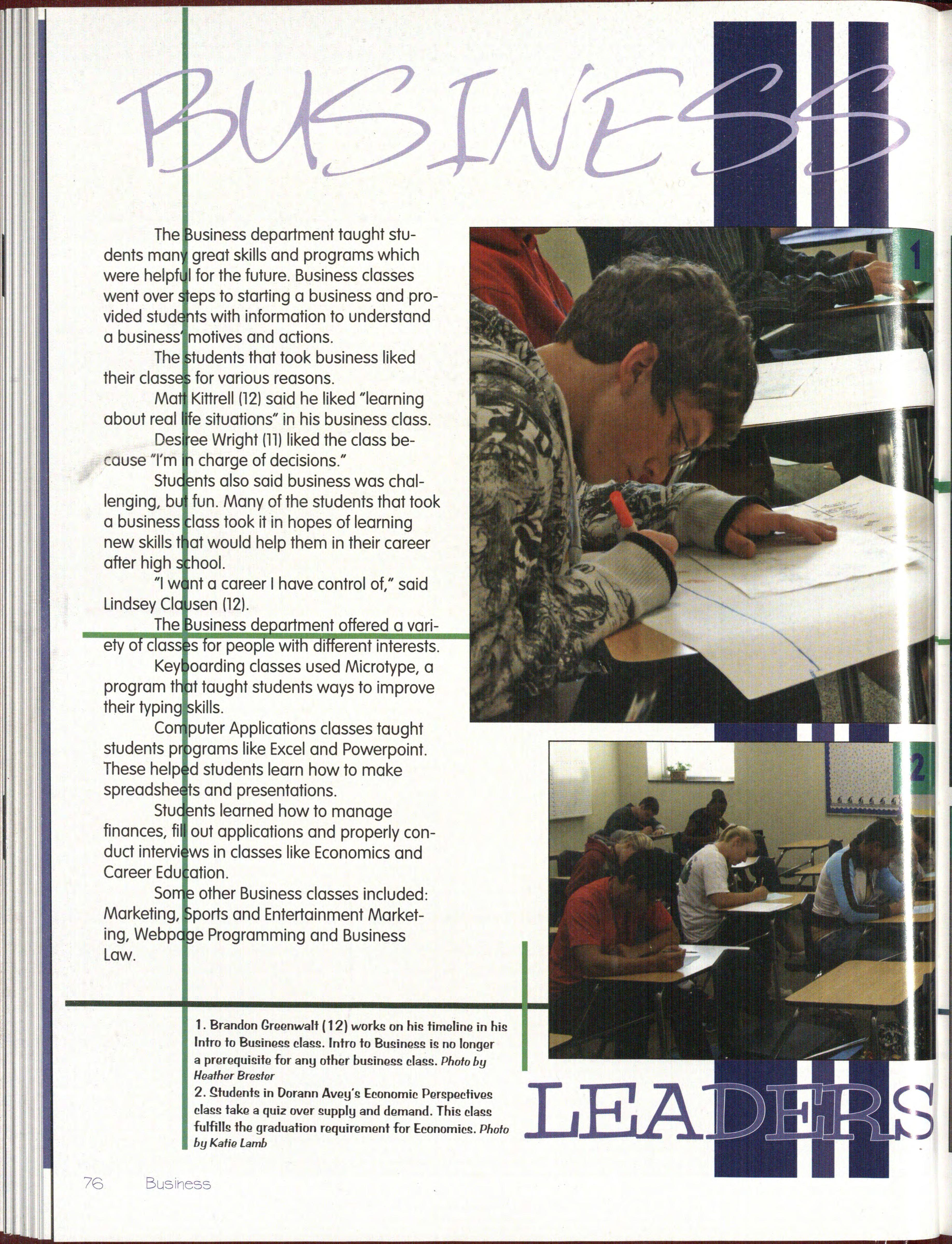 Stu nts also said business was challenging, b fun. Many of the students that took a business lass took it in hopes of learning new skills t at would help them in their career after high hool.