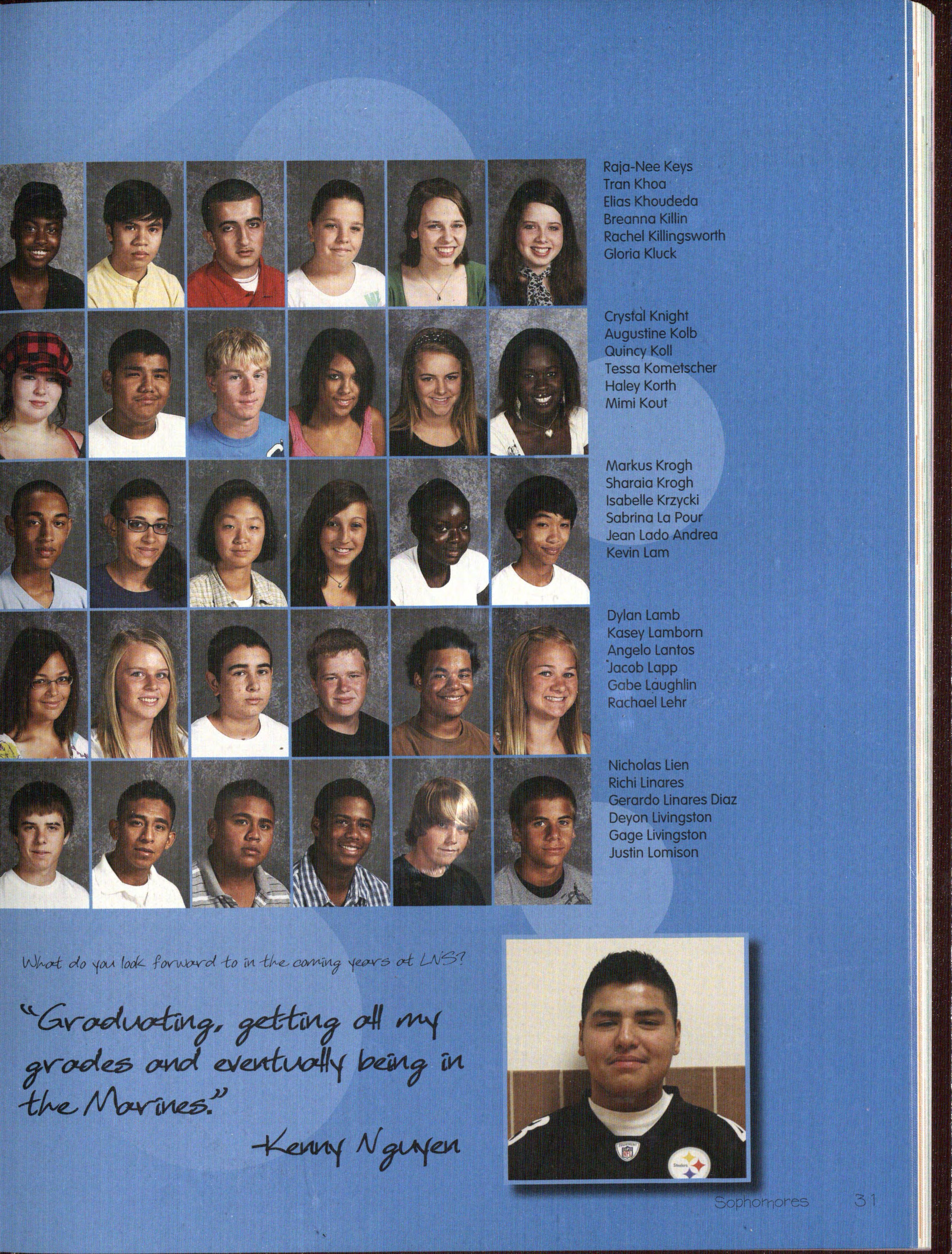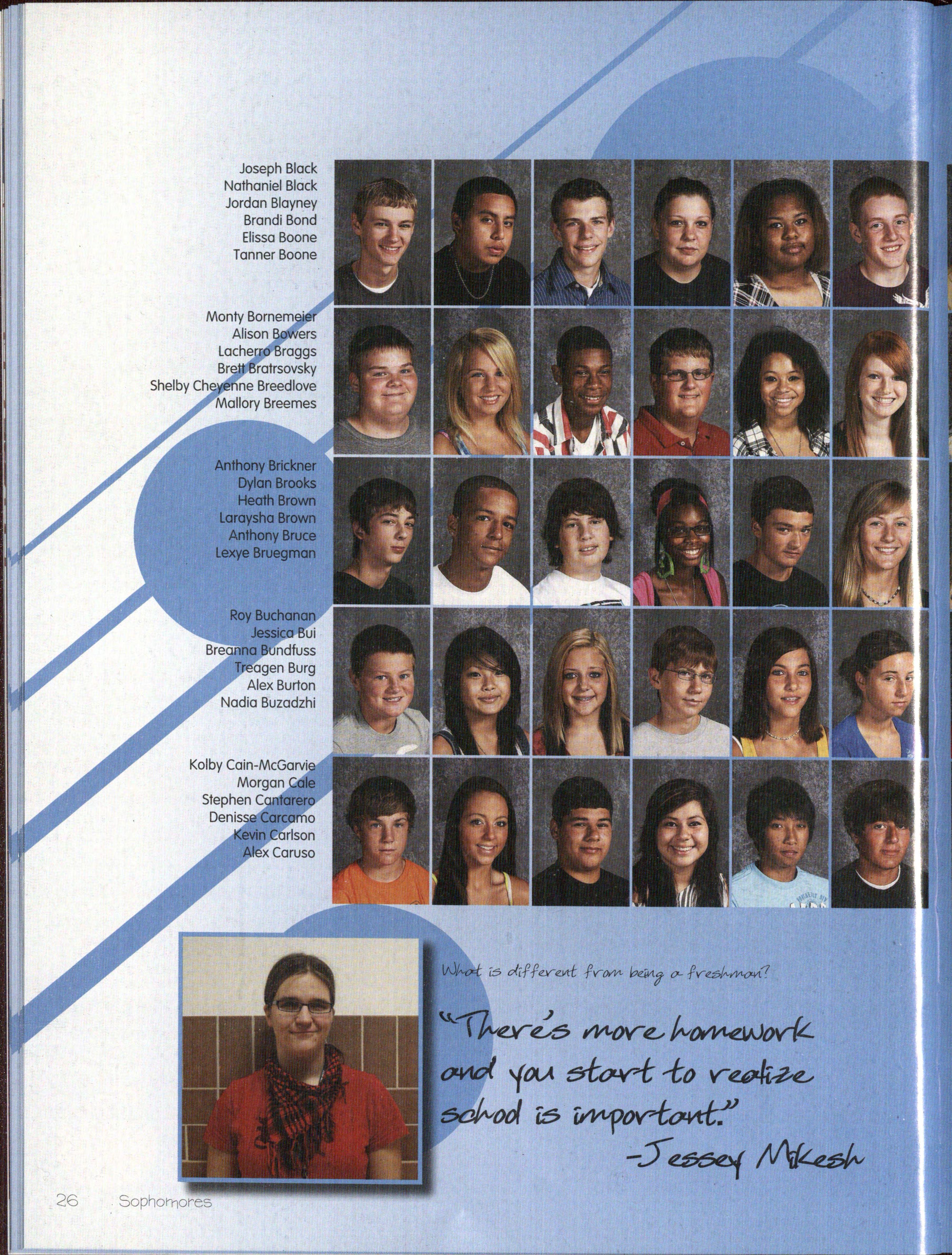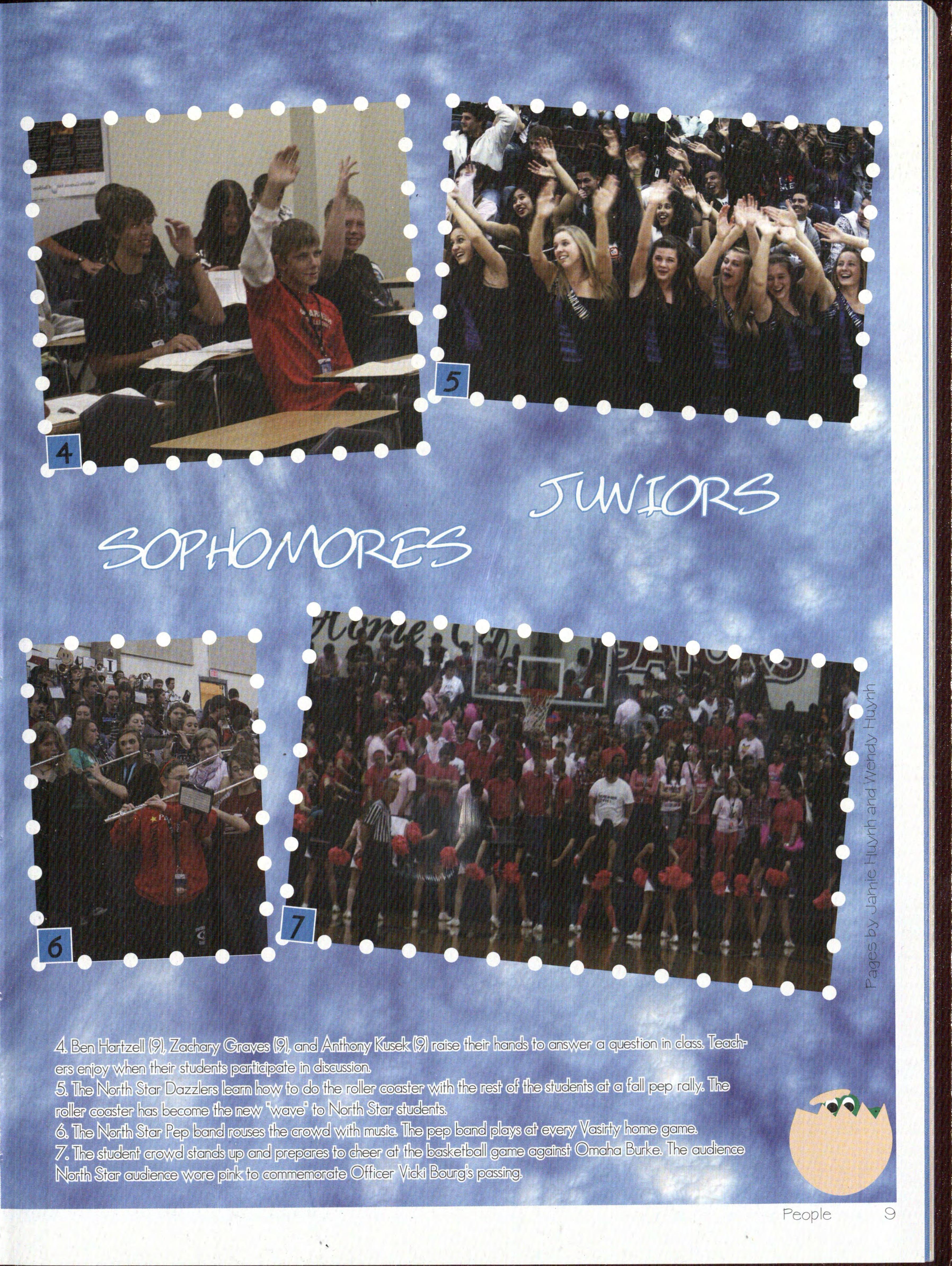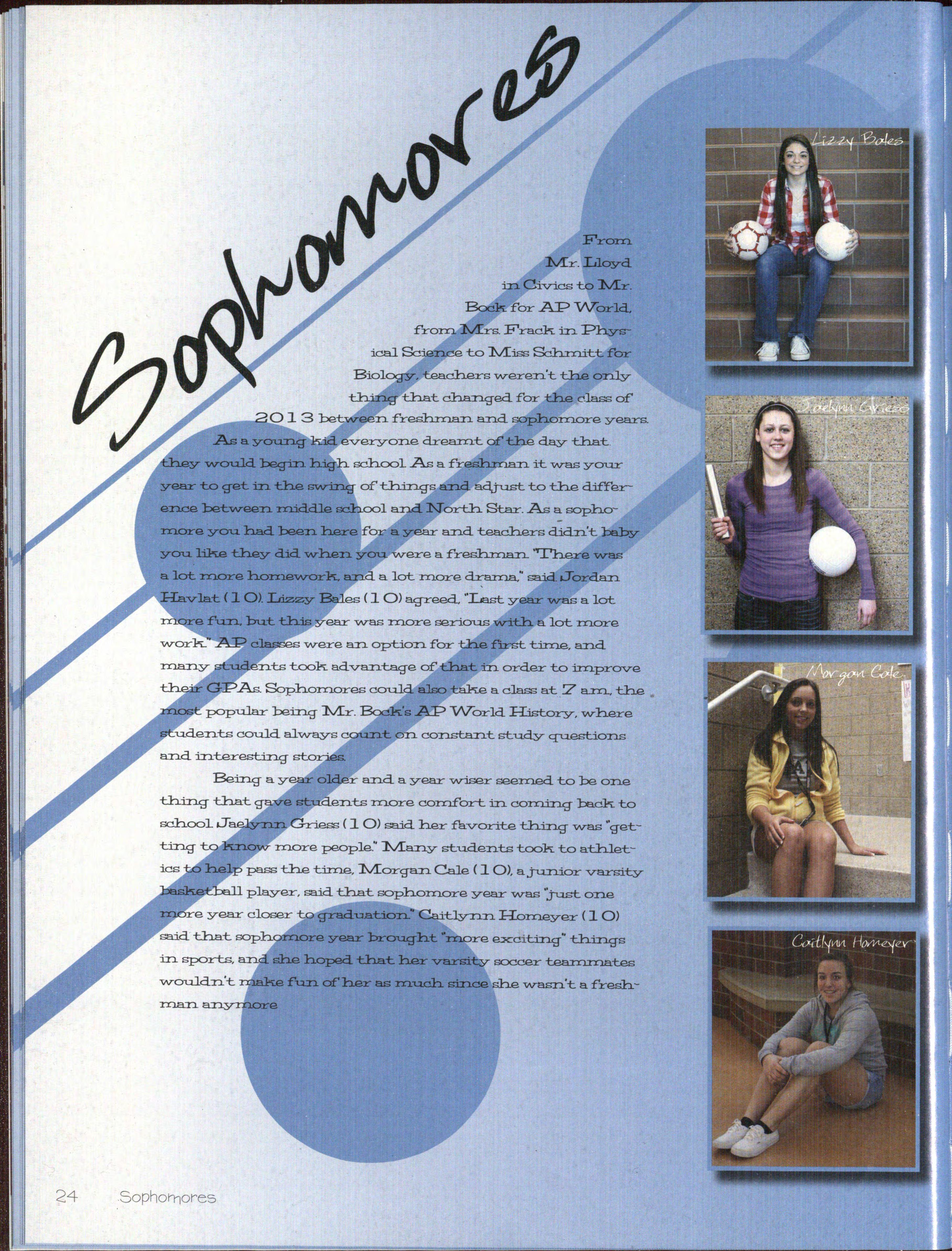 • e-veryon.e dreamt of'th..e day that would begin high school As a fresh.man. it vVas your year to get in the swing 0£ thin.gs and adjust to the difference between. nixldle a:!h.ool and. North. Star As a sophor.nare yau. had been hare or a year a:n.d teachers didn.'t 1:el:,yyou l:ika they did w-hen. y0U. vVere a £resh.rna:n. "'I'h..ere 'W8S a lot ZXlOr8 honlaworlt.. e.:nd a lot more drama," said Jordan. es ( l 0) agreed. "Last year was a lot f'-u:n.. but th:is ear v'V'as more serious -with. a lot more .......,~..,_.,, w-ere a:n. optioT.l. £or the first tinle, a:n.d n.ts took ad-va.n.tage 0£ that in. order to nnprove '.As. Sophomores could also ak.e a class at 7 a.n1.., the popular being 1\/1:r. 'sAP v\Torld ffistory, vVhere u.deT.1.ts could alvVays c a.n.d in.terest±:ng sto • t OT.l. const.a:n.t study qu.estion.s