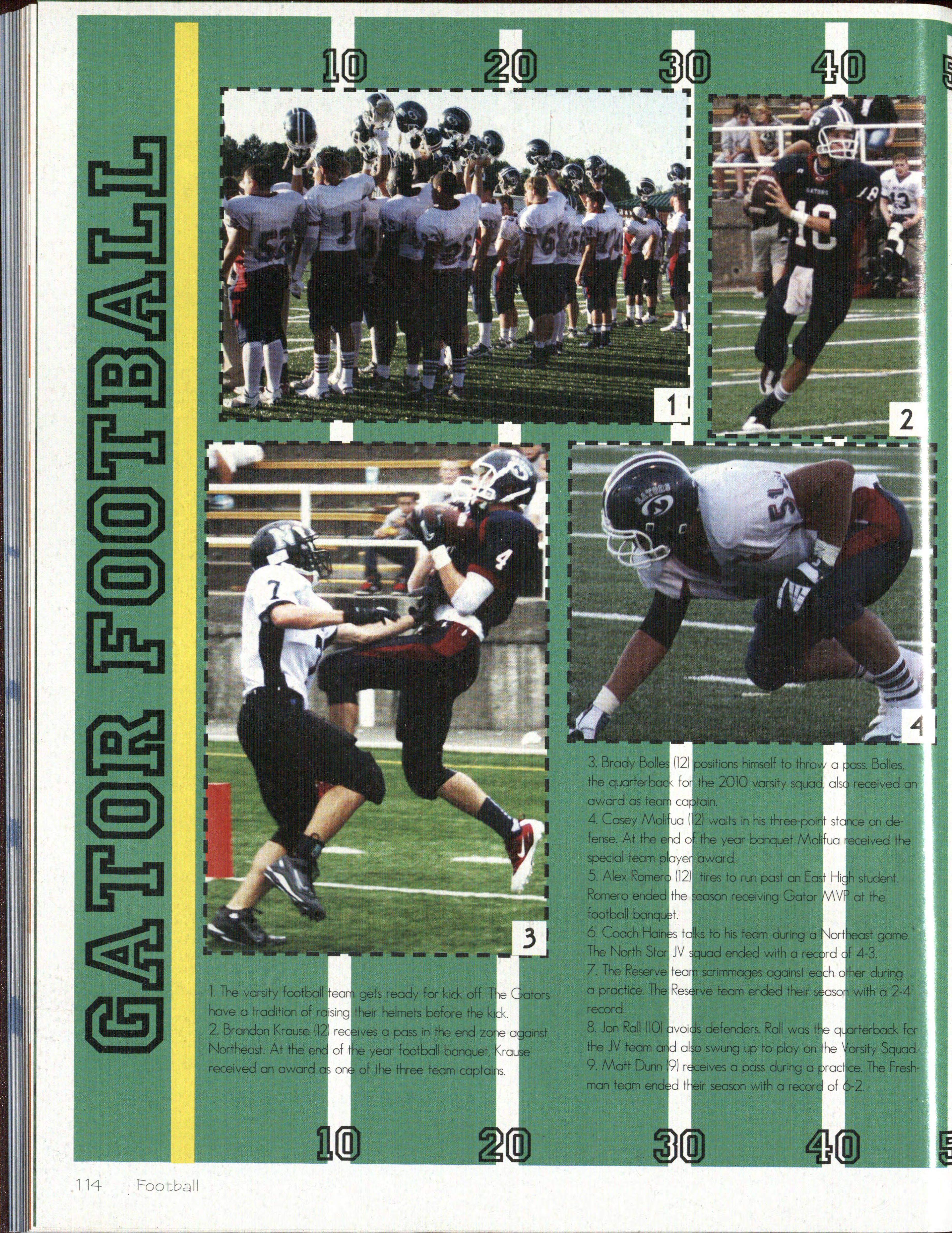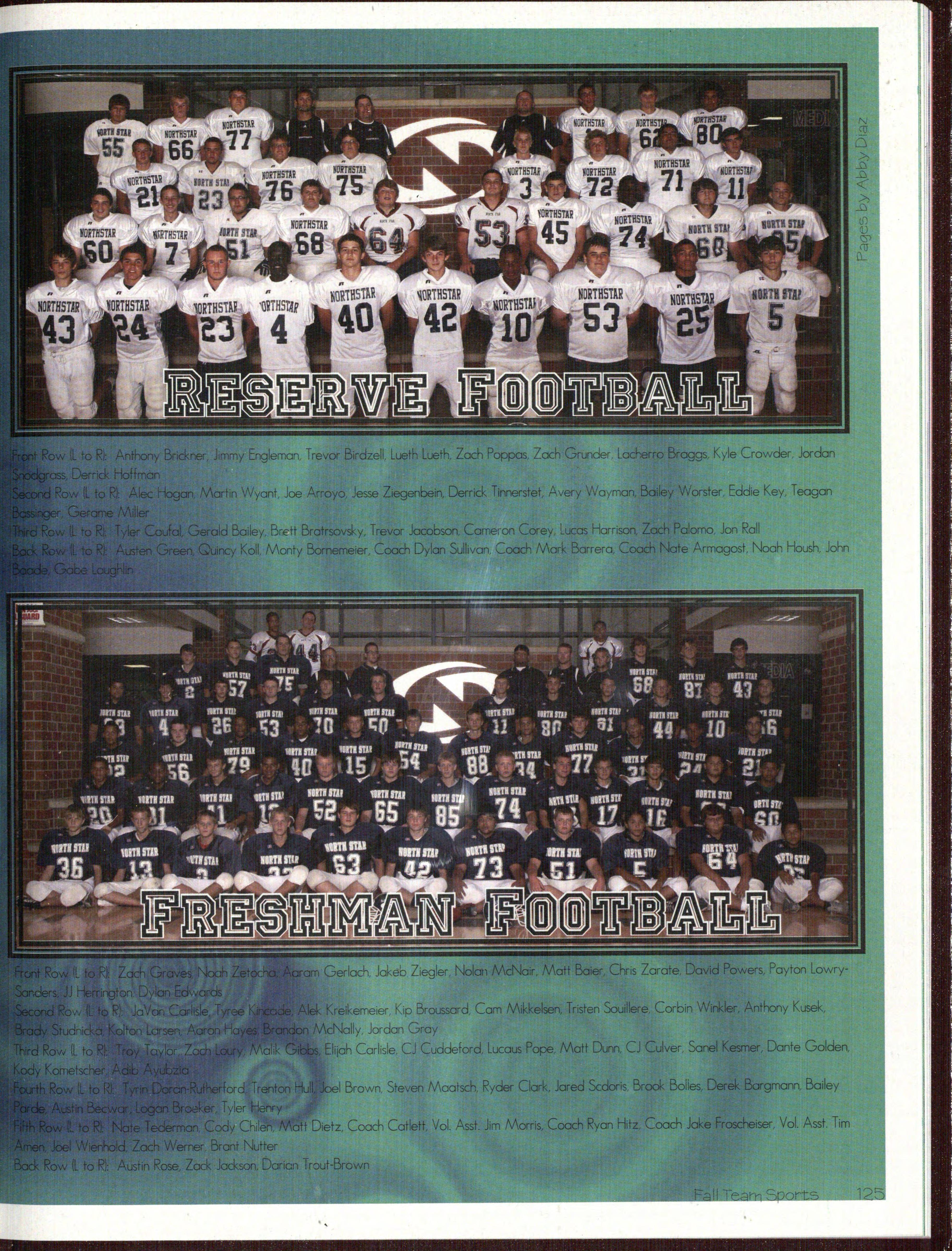 5. The varsity bo y s football team dive for the ball in the North Star v. Benson football game on September 9th. North Star w on by a lands li de