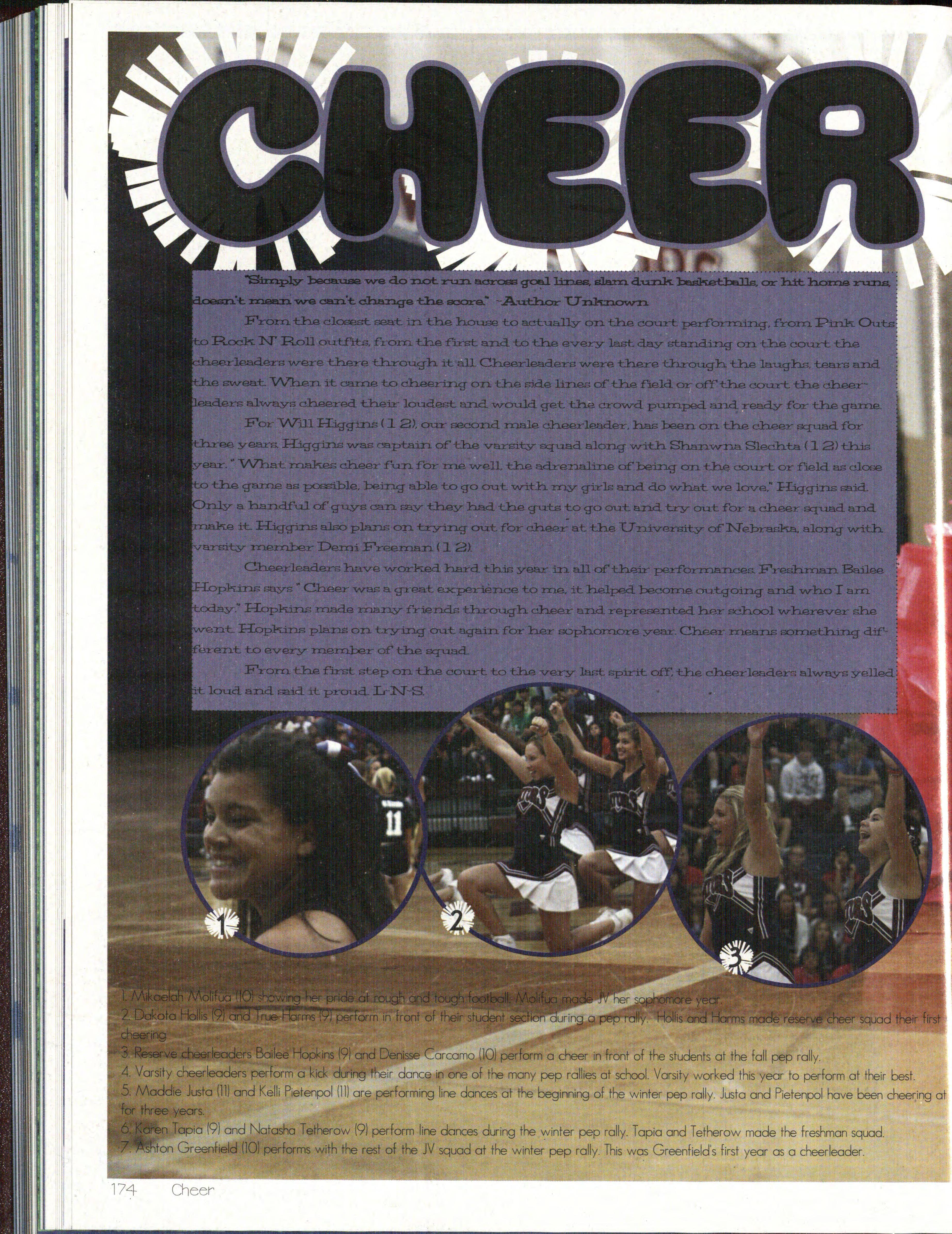 8. The reserve cheerleaders do a jump in their routine. Each cheerleading squ ad performed a dance at each of the pep rallies.