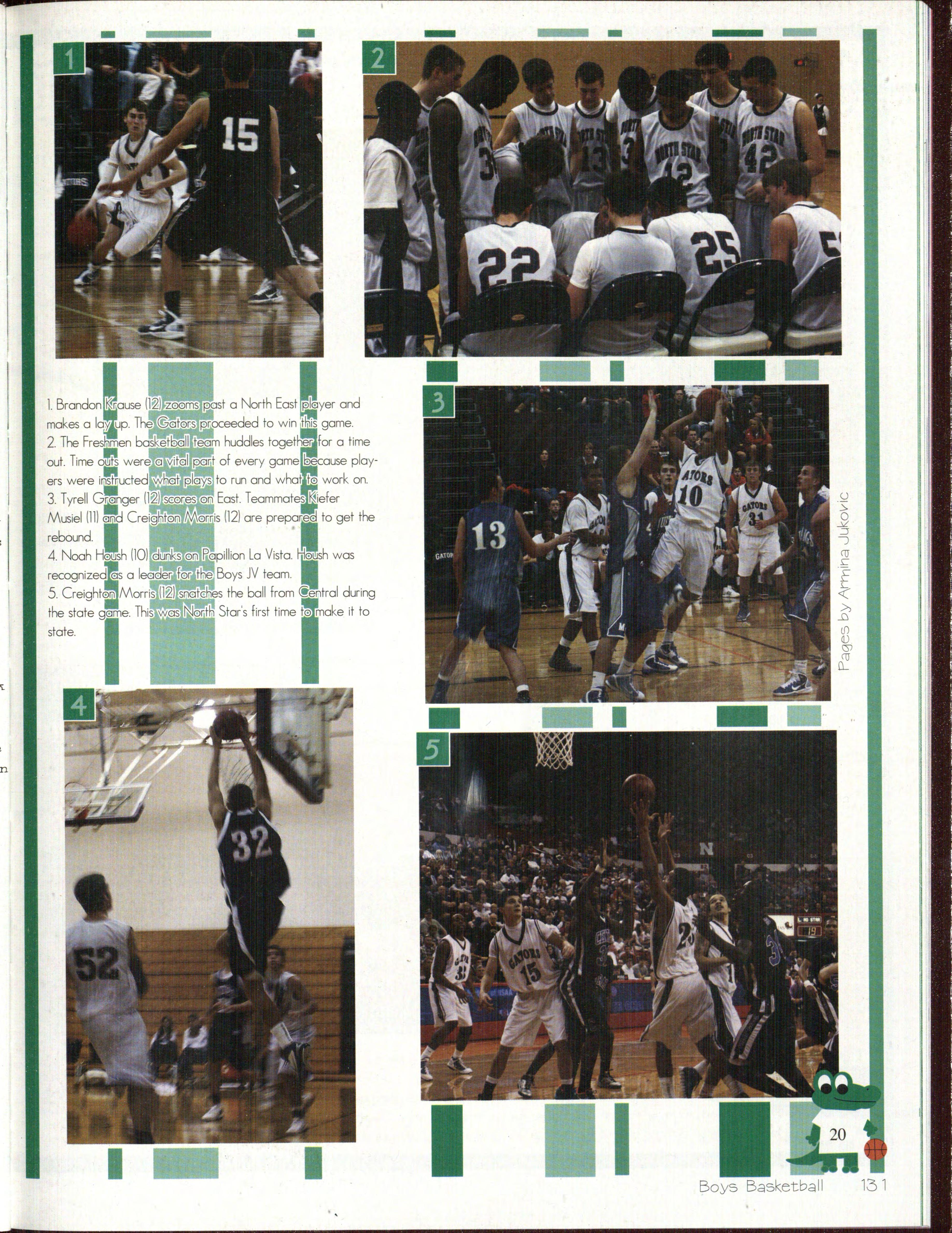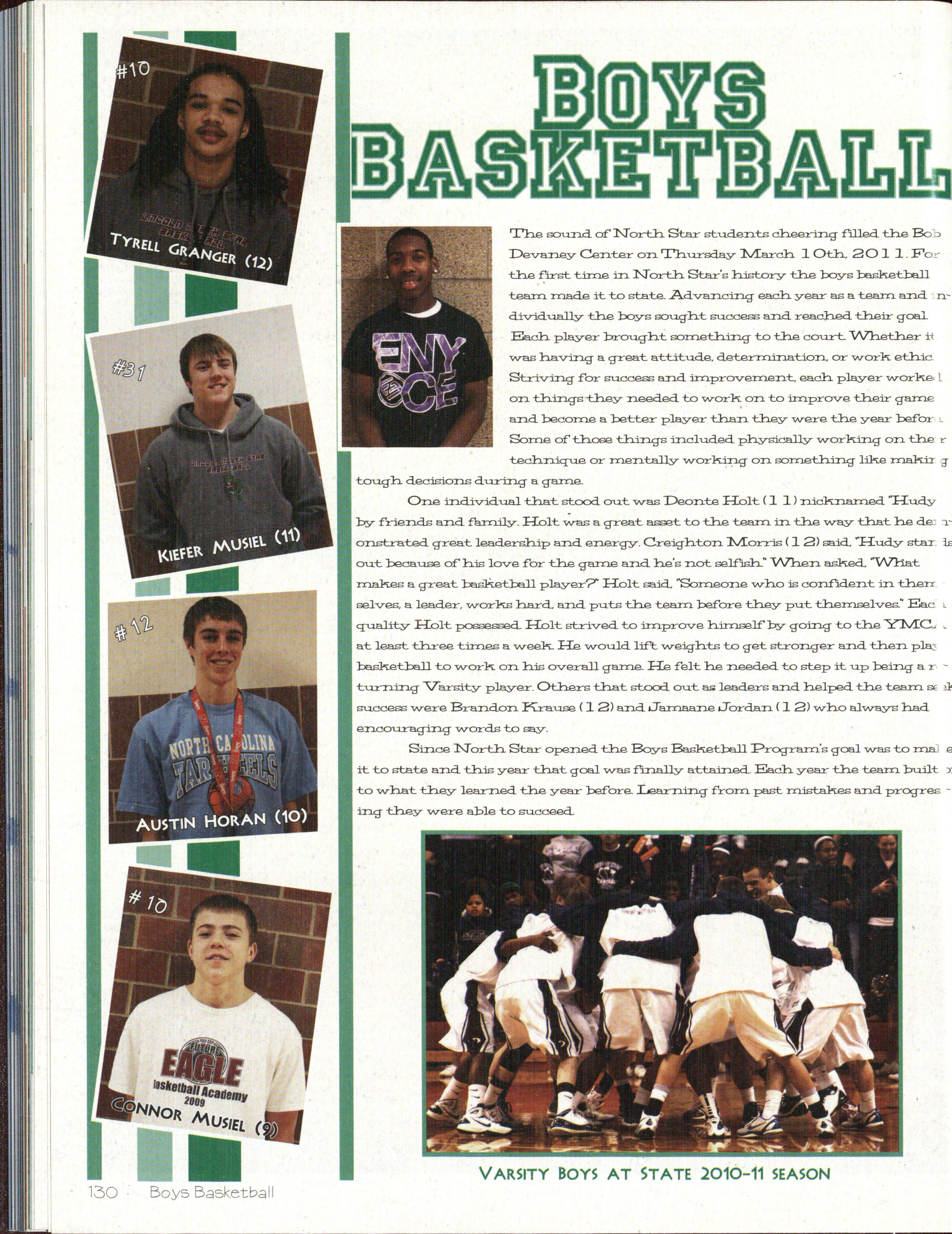 2 Jordan Ball (12) and Mitchell Hunt (12) cheer the boy 's varsity basketball team on at State. This w as the first y ear that North Star 's bo ys made it to the St ate Tournament
