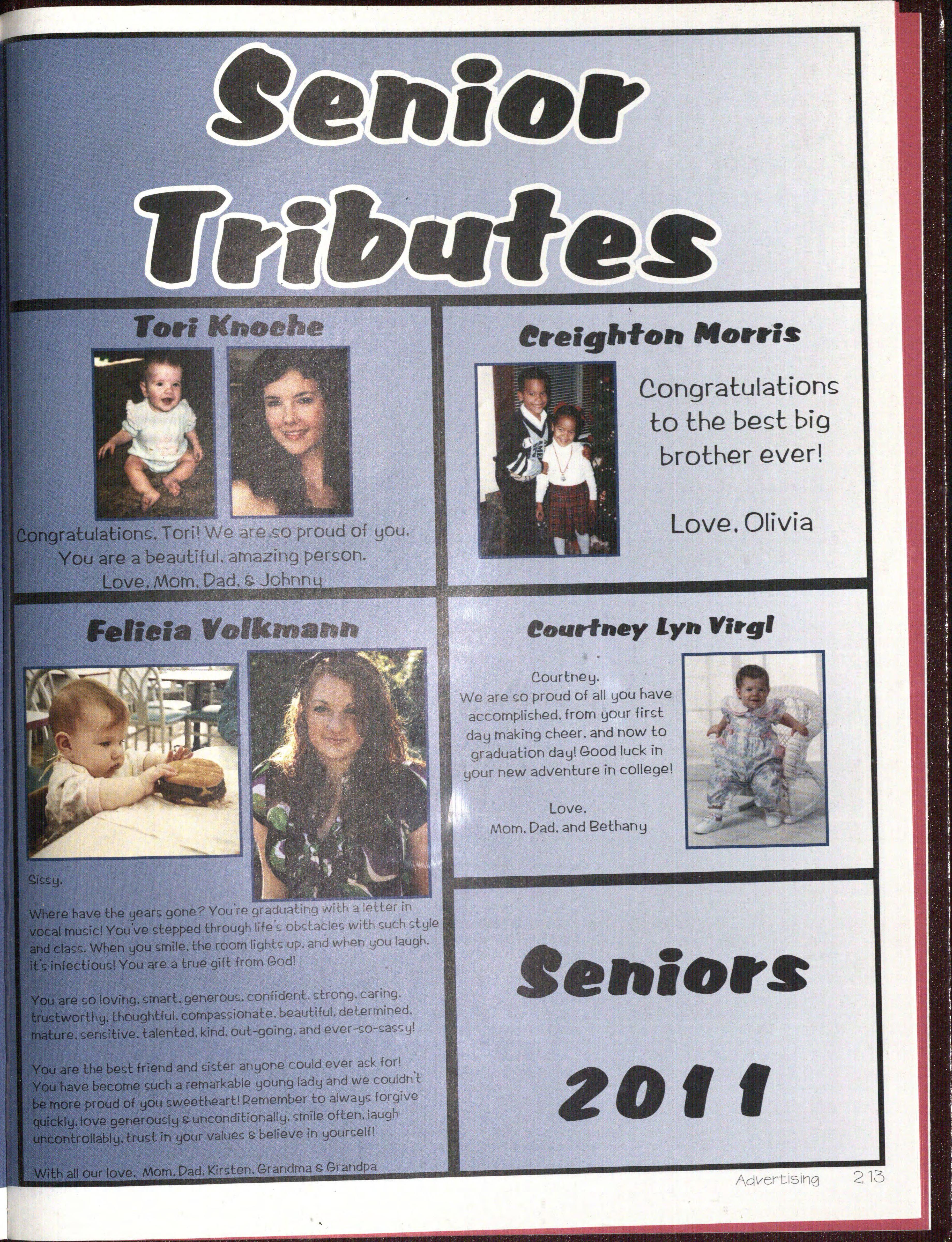ns. Tori! We are £:O proud of you. a beautiful. atnazing pers:on. v_e Morn. Dad. Johnn