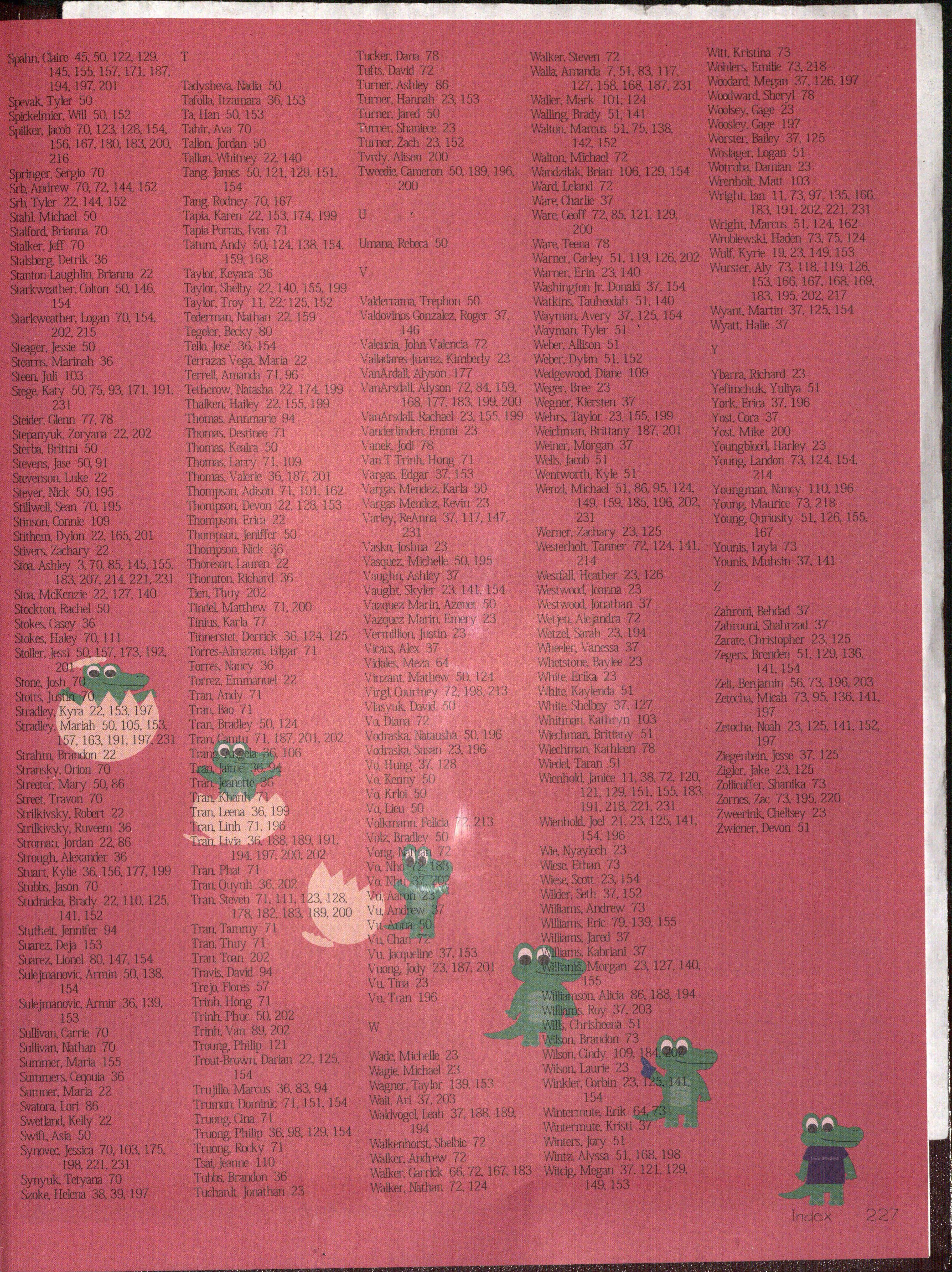Vazquez Marin Justin Vermillion Susan Vodraska Aaron Vu Tina Vu Jody Vuong Michelle Wade