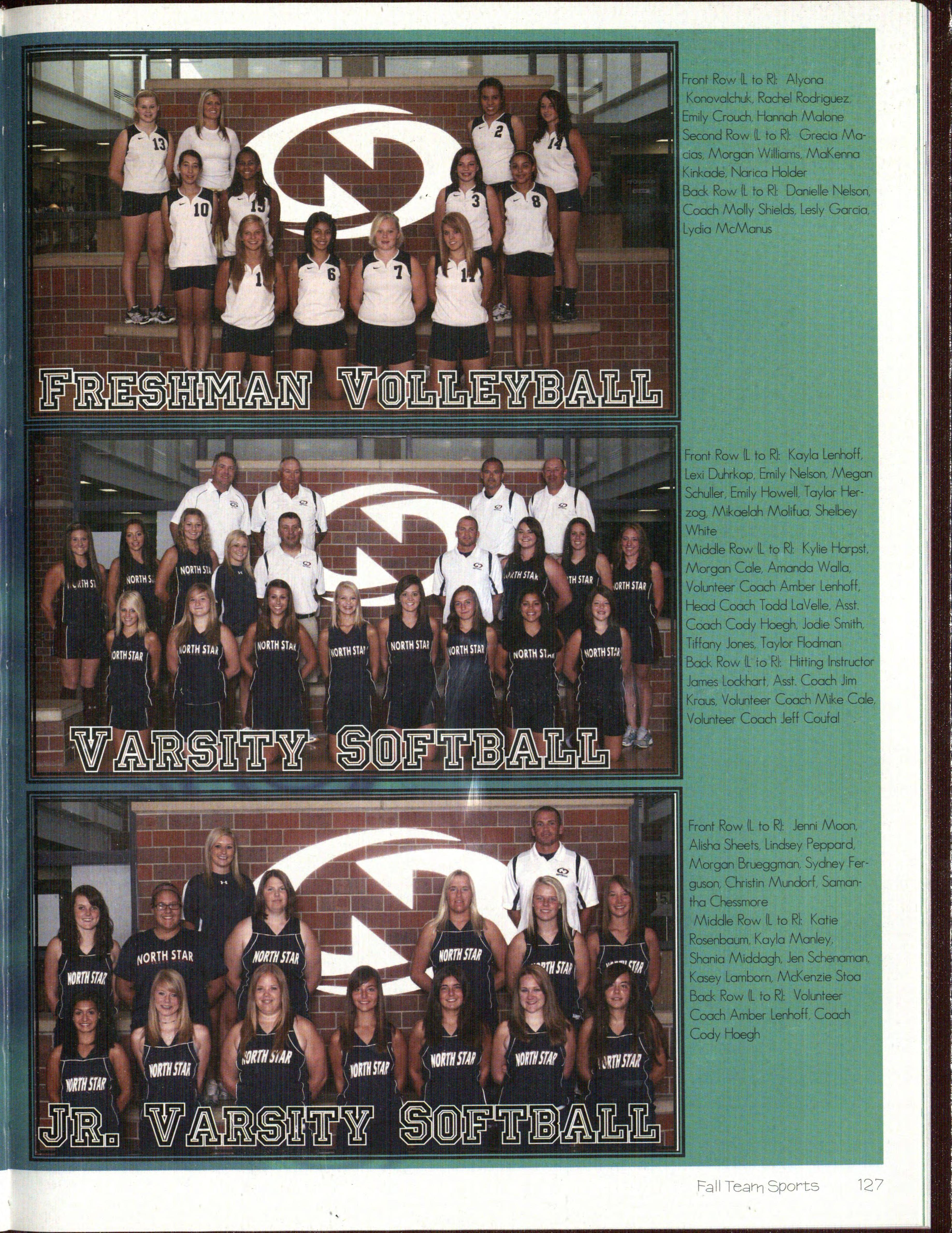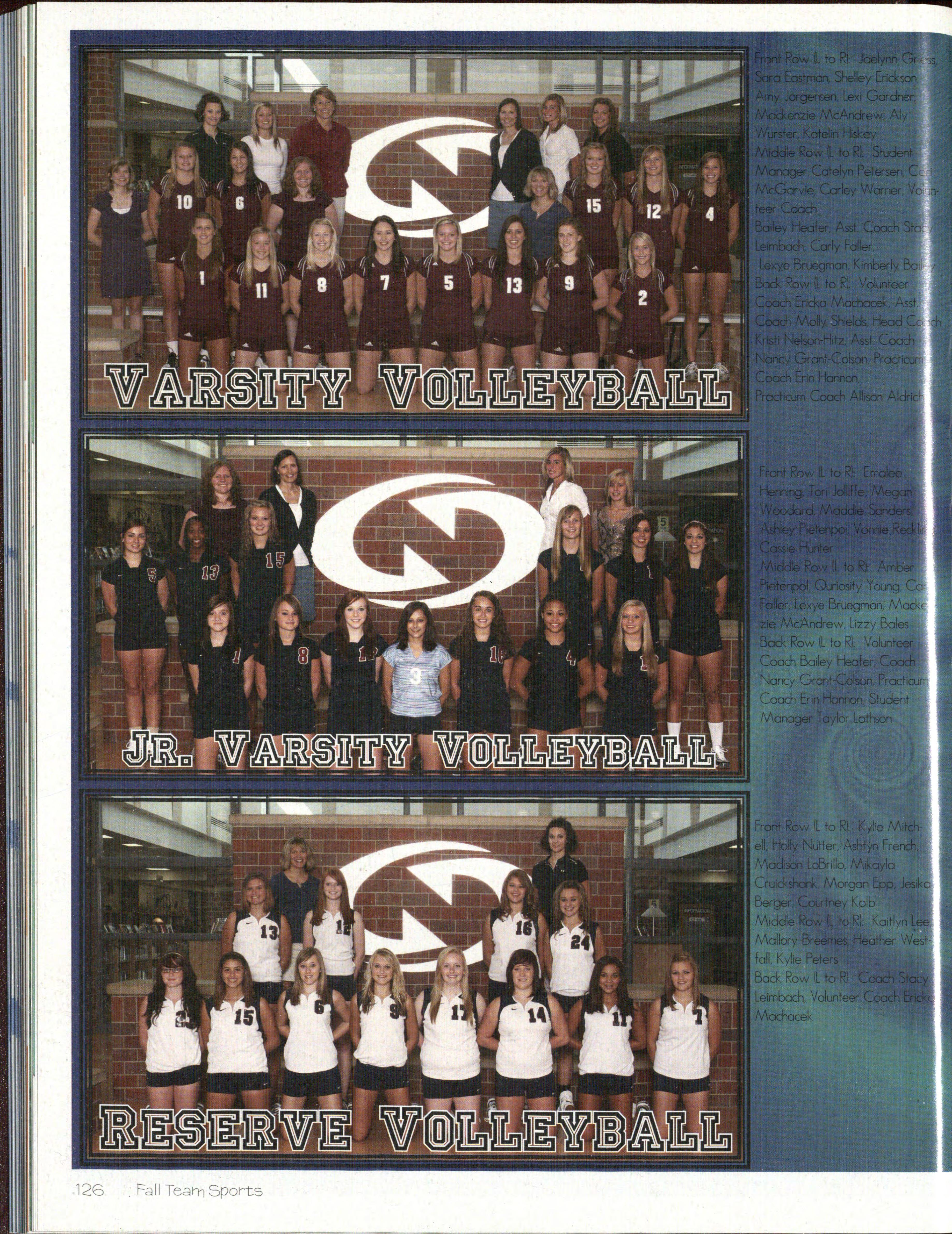 Bock Row. Renae Breemes (l2L Shelley Erickson (12), Alex1Ha ~P6ur~02l:. Kylie Stuart (]OJ, and Alyson Vanarsdall (12)