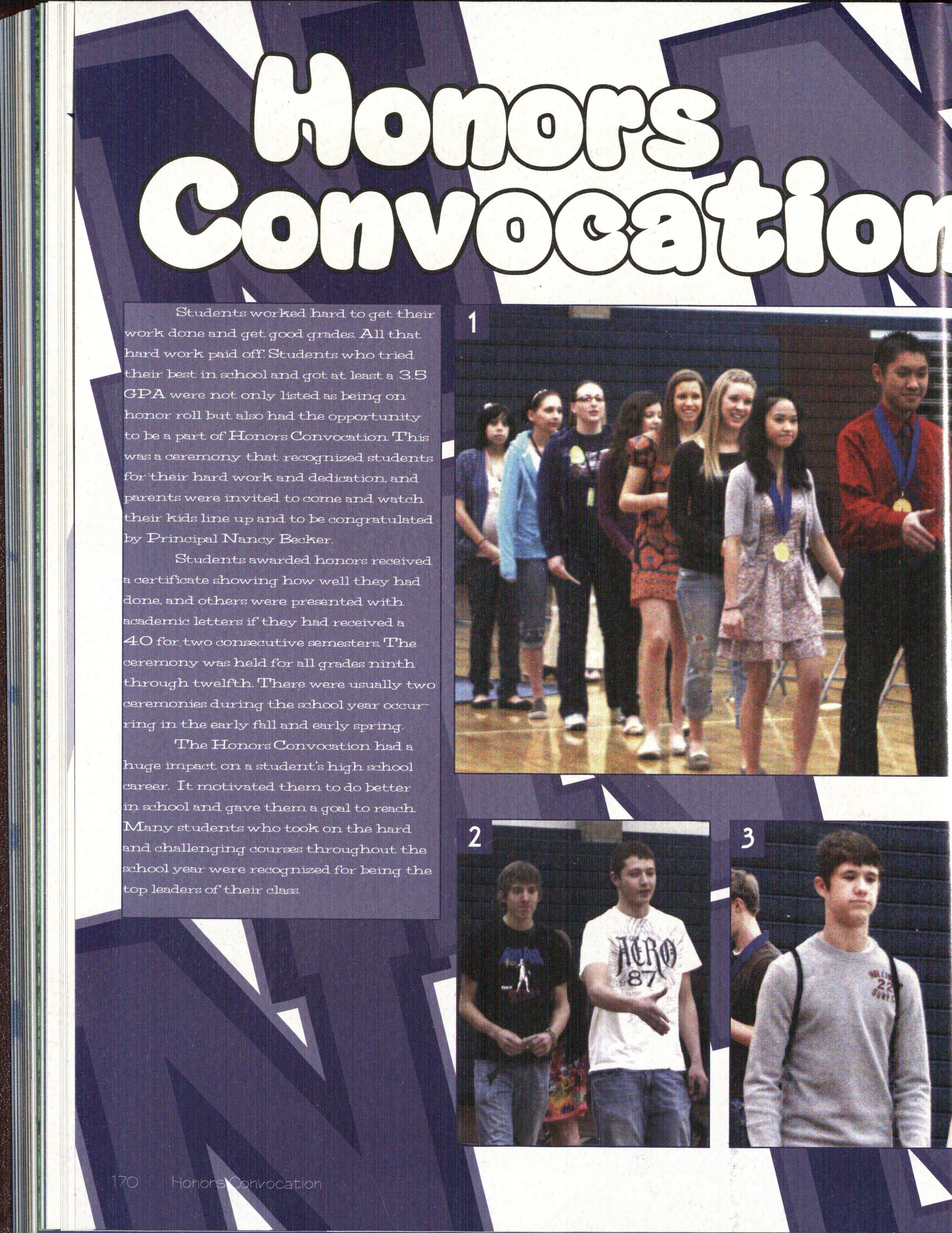 a s g ree te a in front of hi s class by loud noise makers and cheering Garrick Walk er (1 2) signs the official National 1-bnor Society member k Each ne w member signs the book at their induction.