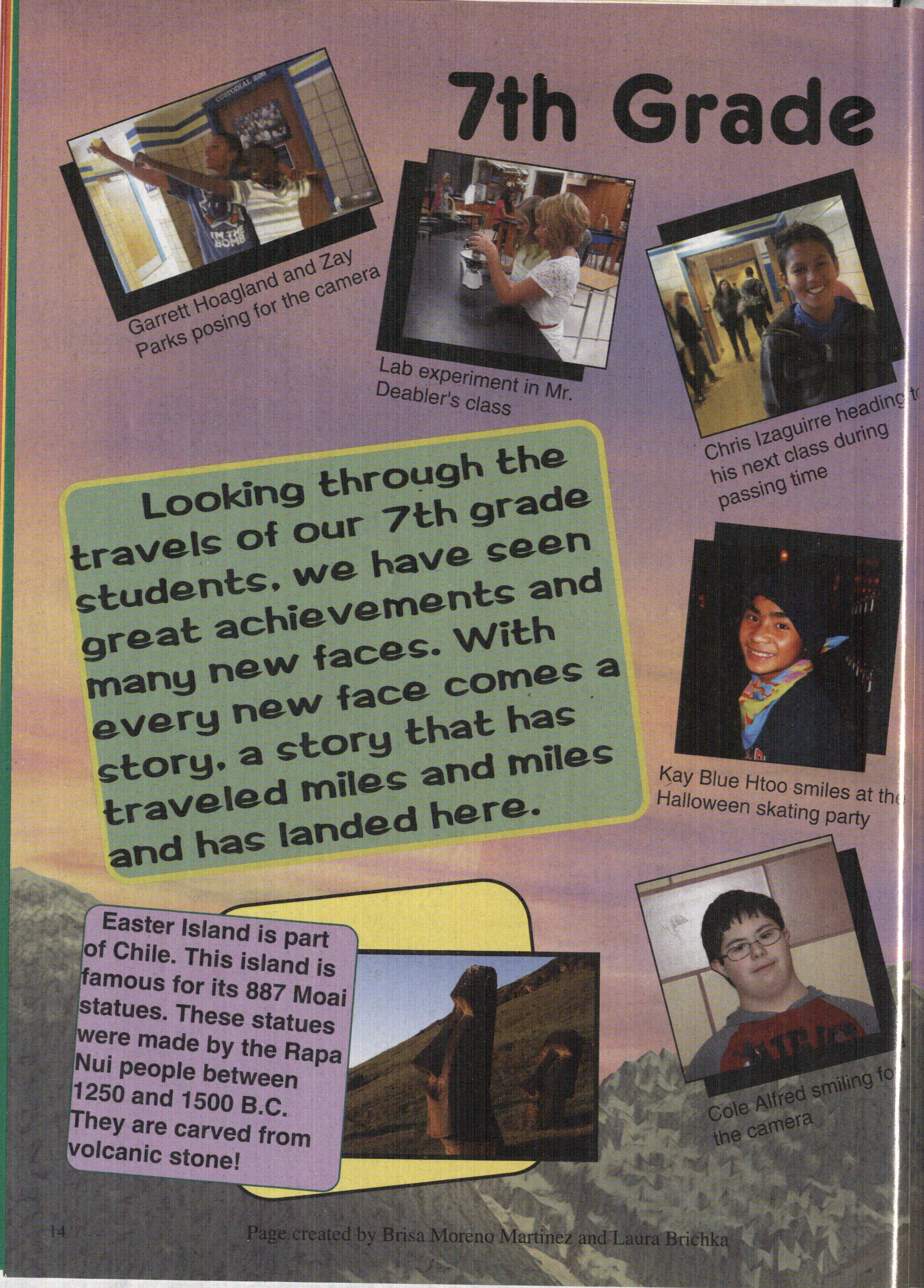 Lookin9 t:.hro~gh the travels of our 7th grade students. we have seen great achievernents and rnanY new faces- With e-very new face co~es a story. a story that has • traveled rnnes and rnnes and has \anded here-