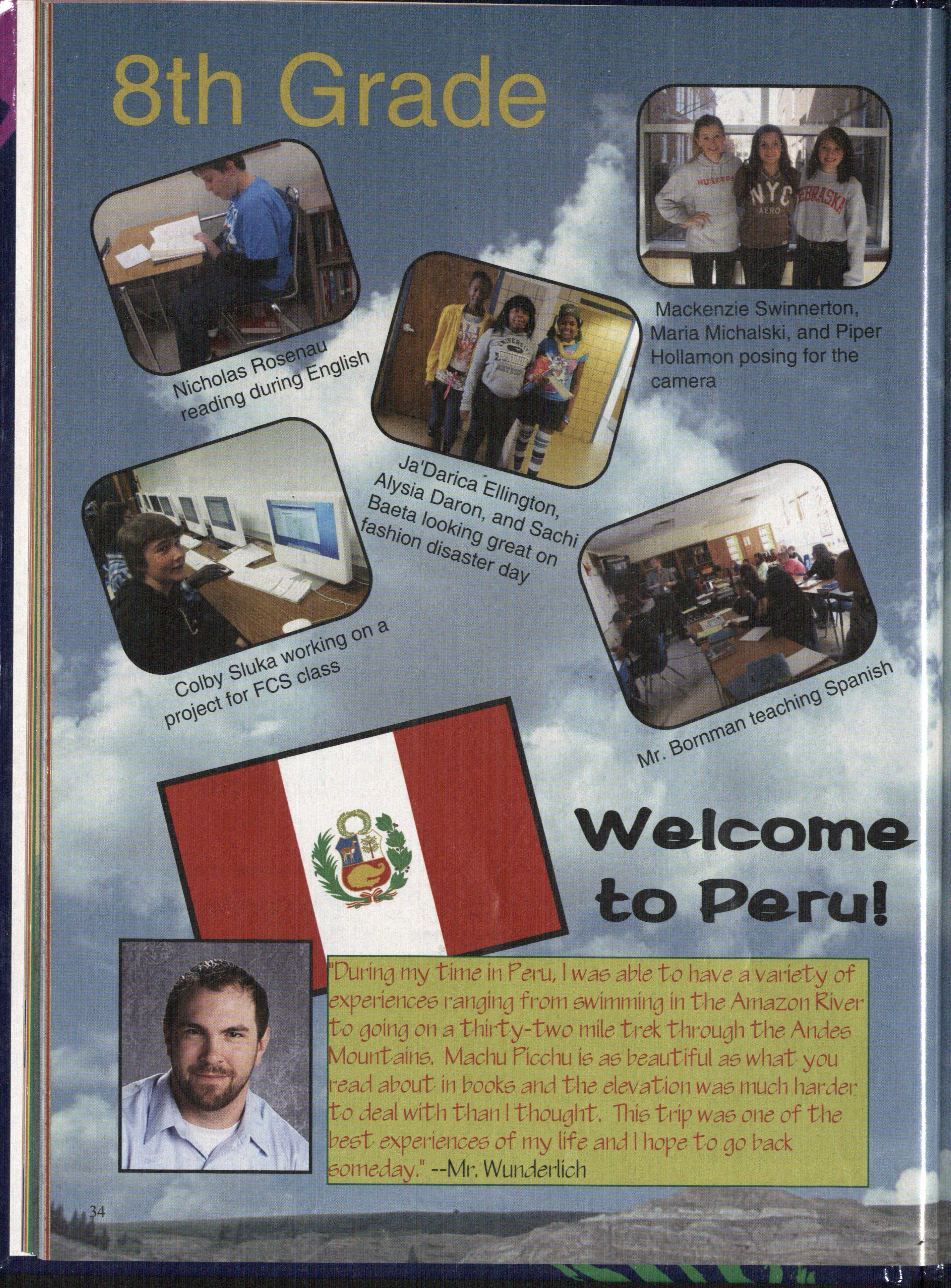 'During 111y titne in Peru, I was able to have a variety of xpede11ces rat1gi11g from swimmi11g in the A111azot1 River ·Ogoing 011 a thirty-two mile trek through the An~-ies out1tait1s. Machu Picchu is as beautiful as what you rea~, about in books a11d the elevatio11 was much harder o jeal with than I thought. This trip was 011e of the best experiences of my life a11d I hope to go back omeday." --Mr. Wu11dedich