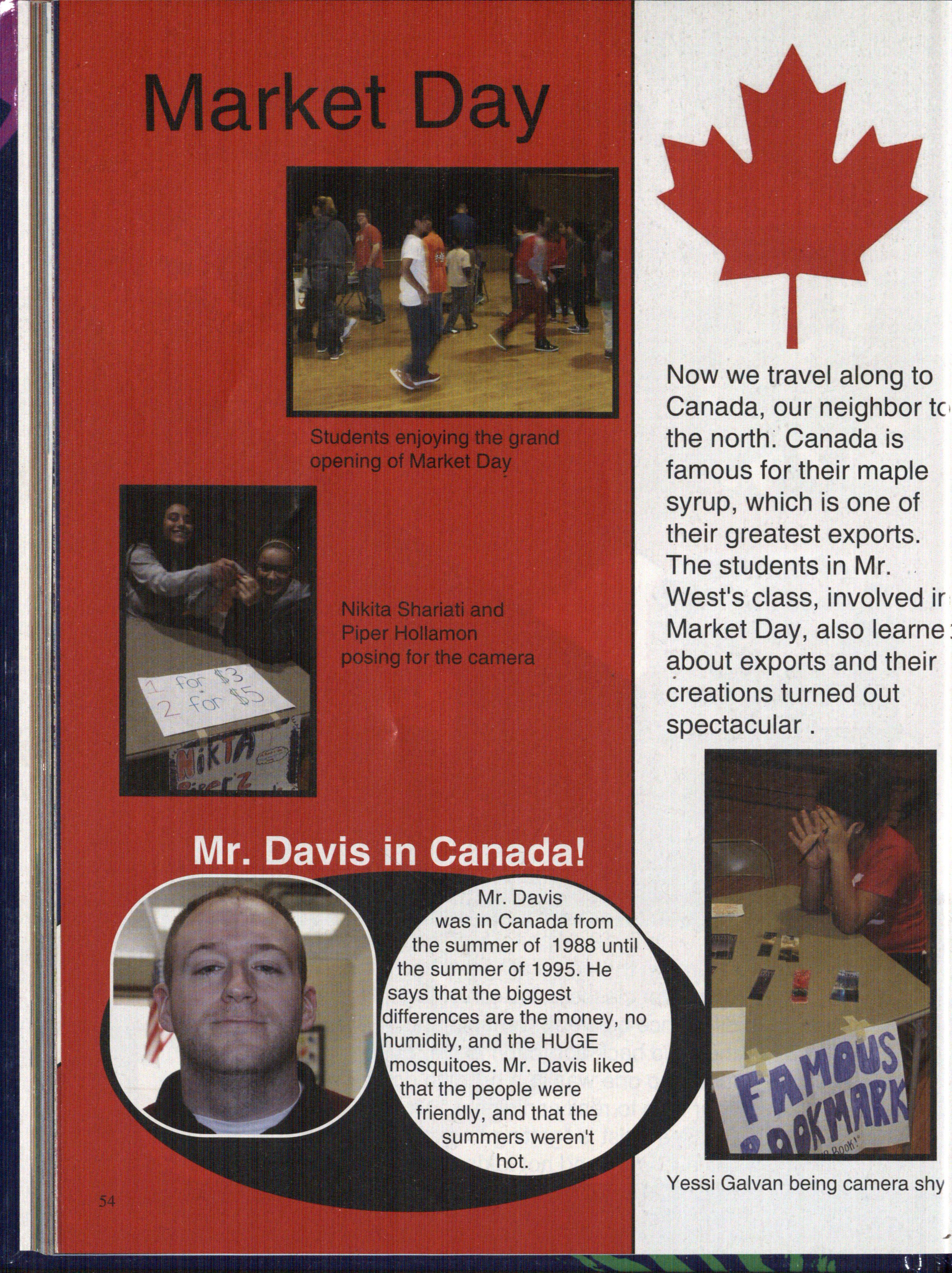 Now we travel along to Canada, our neighbor to the north~ Canada is famous for their maple syrup, which is one of their greatest exports. The students in Mr. . West's class, involved ir Market Day, also learne : ':1bout exports and their creations turned out spectacular .