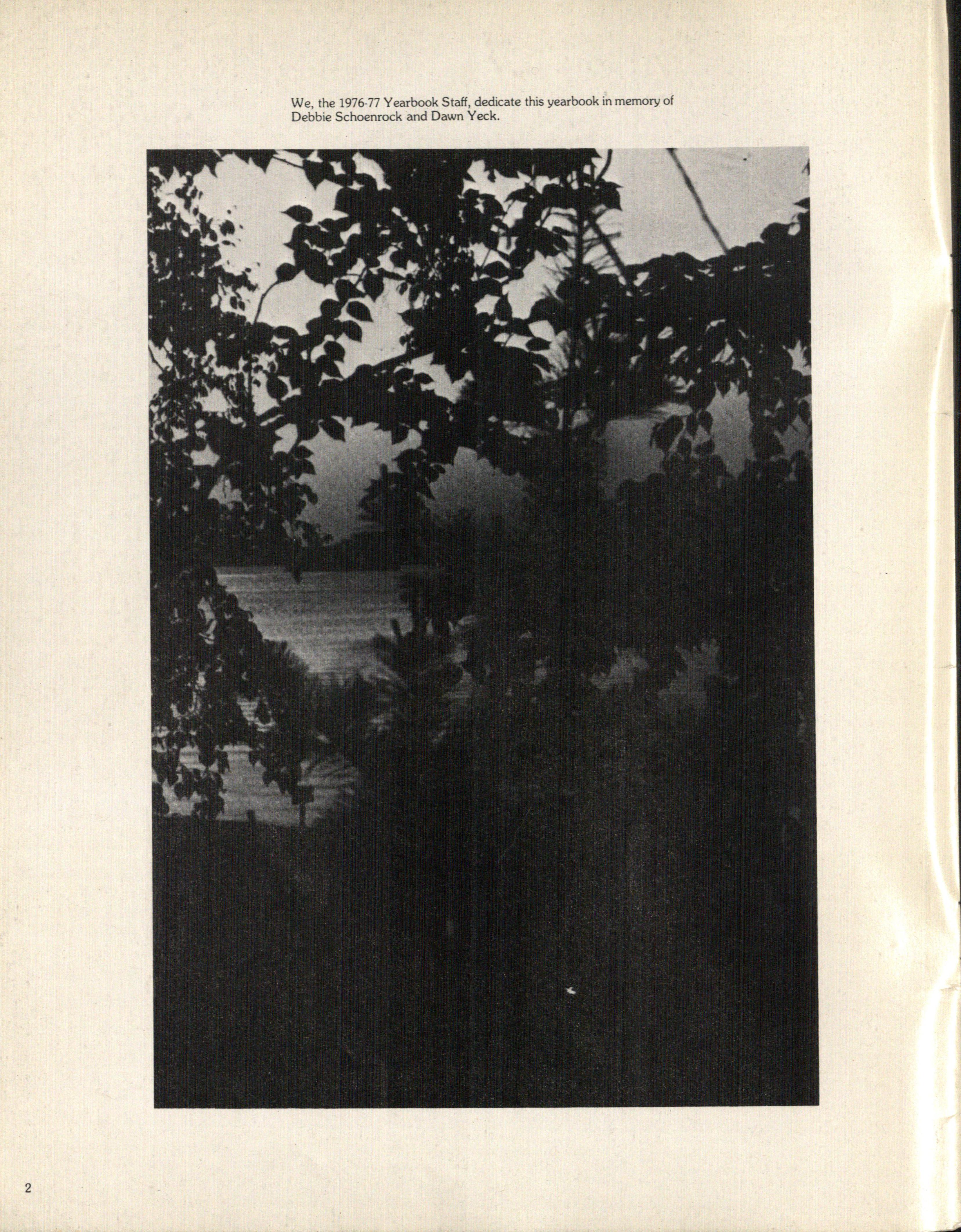 We , the 1976-77 Yearbook Staff , dedicate this yearbook in