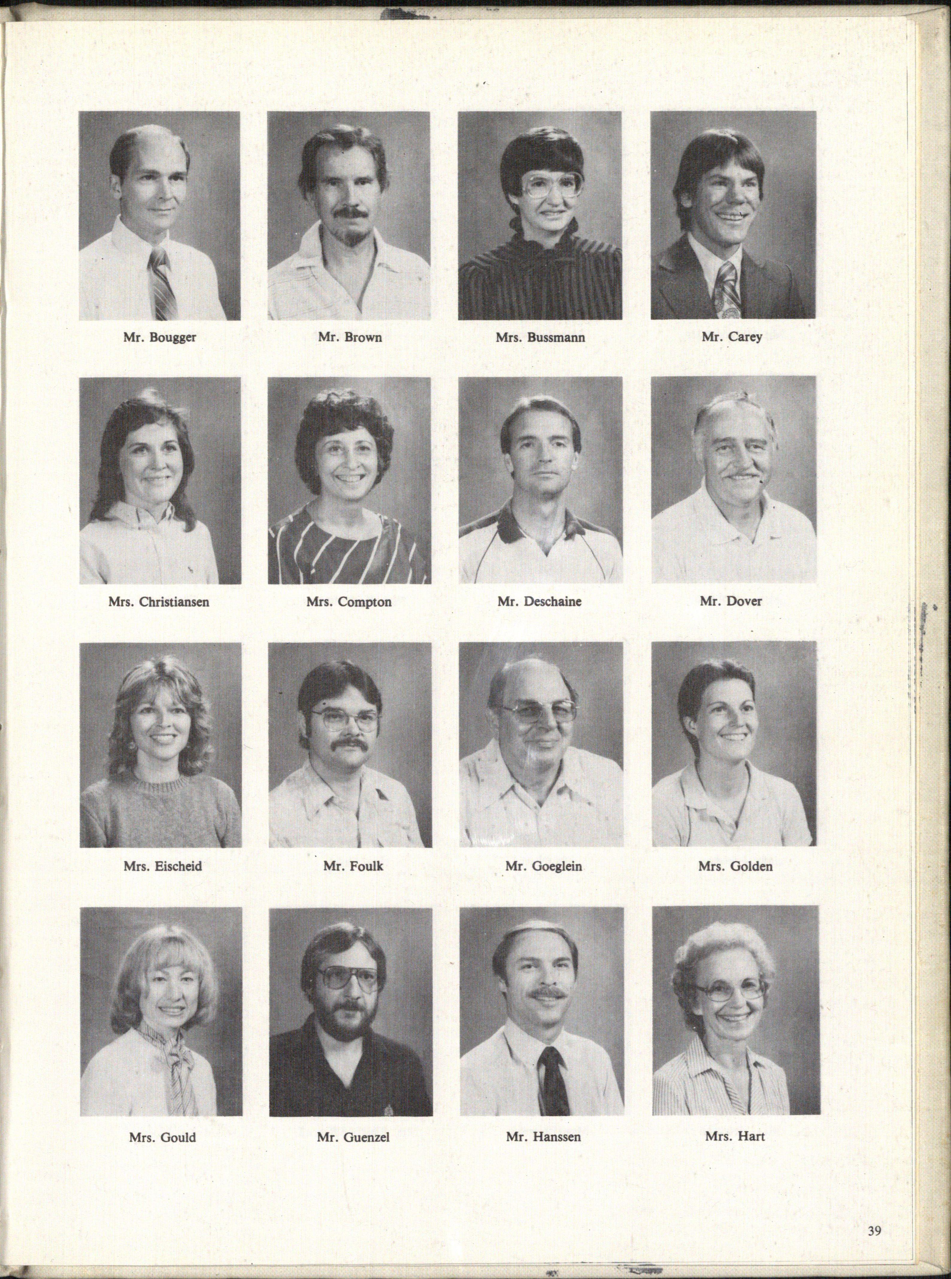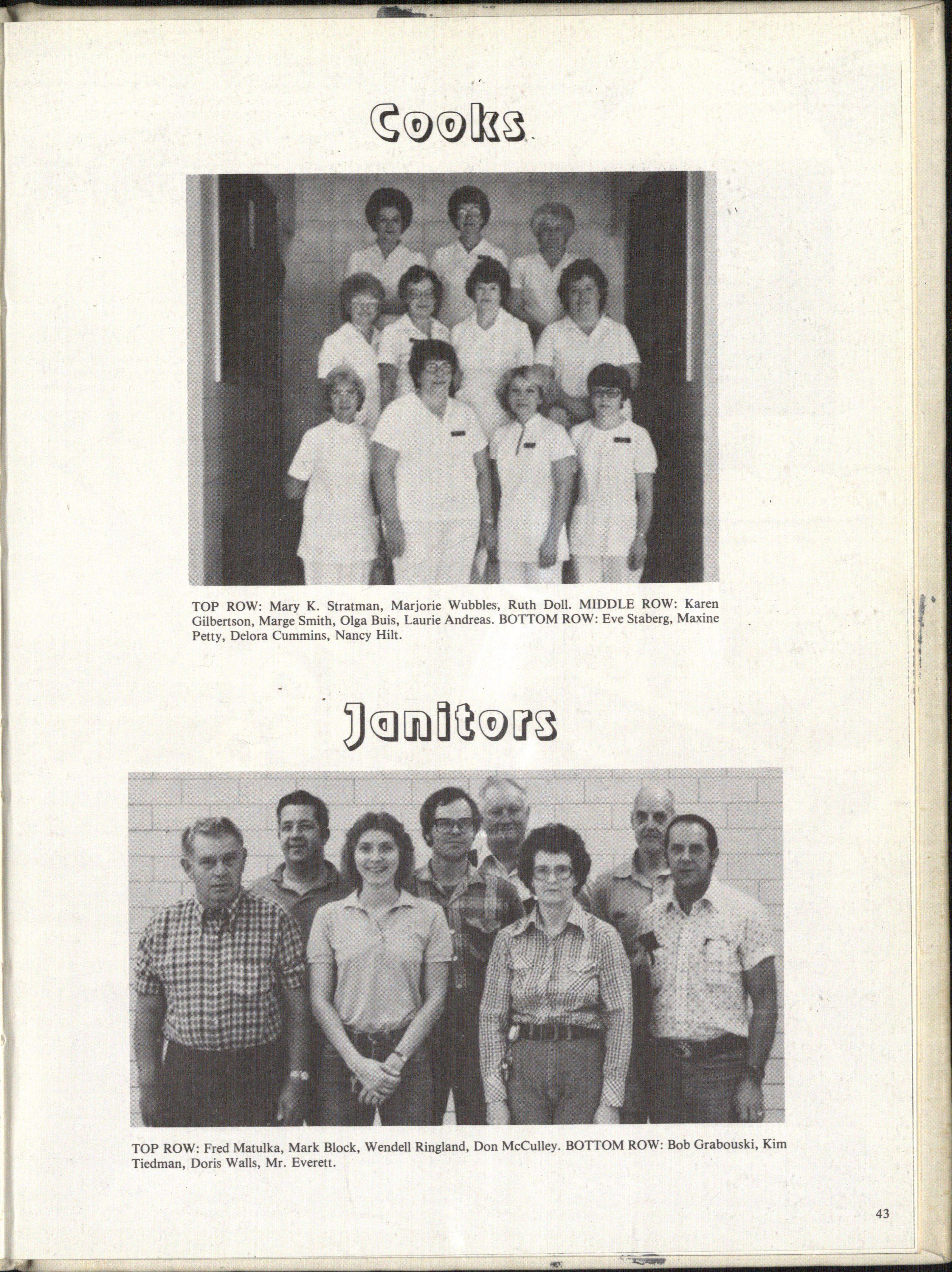 TOP ROW: Fred Matulka, Mark Block, Wendell Ringland, Don McCulley. BOTTOM ROW: Bob Grabouski, Kim Tiedman, Doris Walls, Mr. Everett.